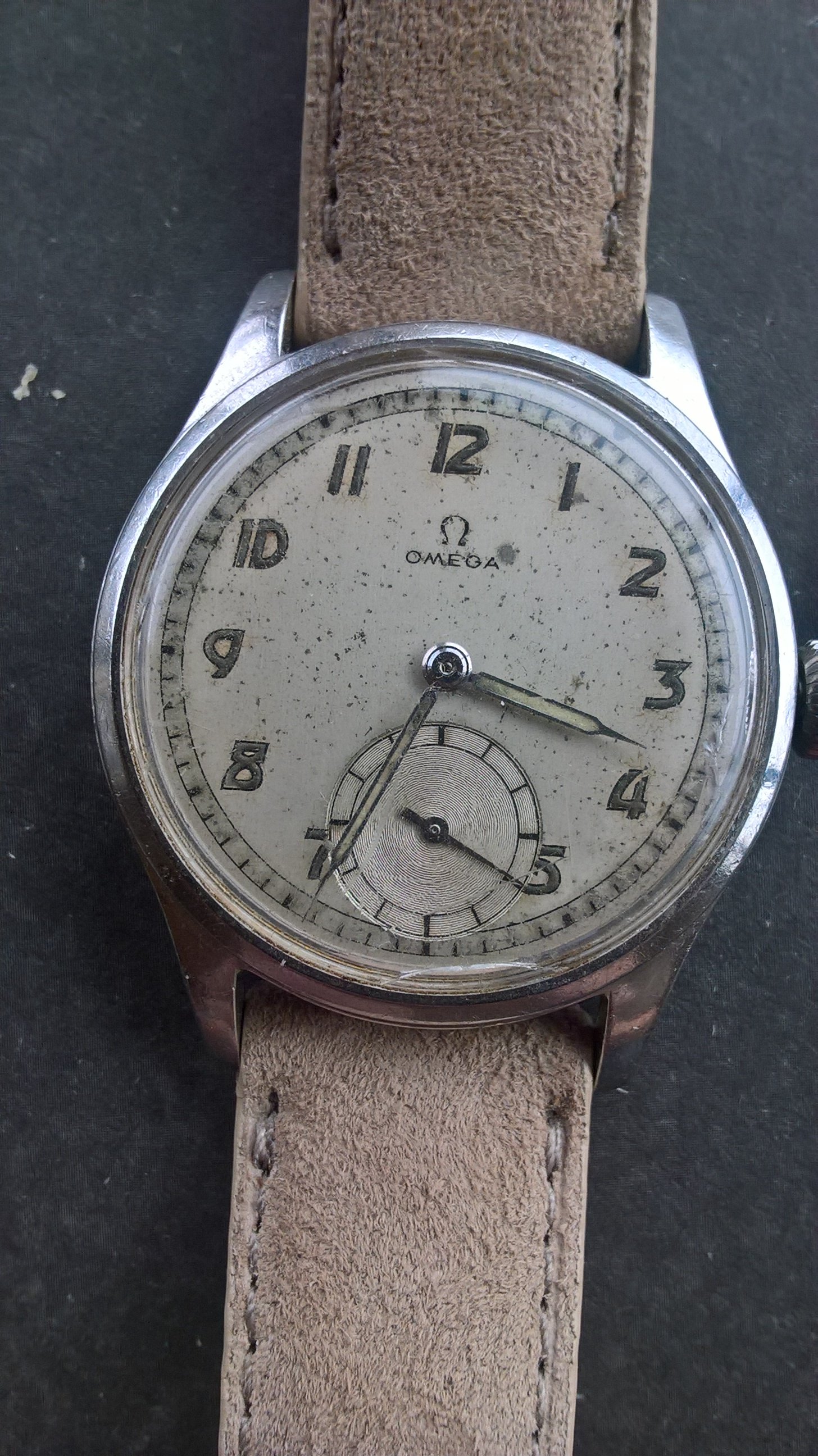 As you can see, the dial is somewhat patinated and the crystal is due for replacement.