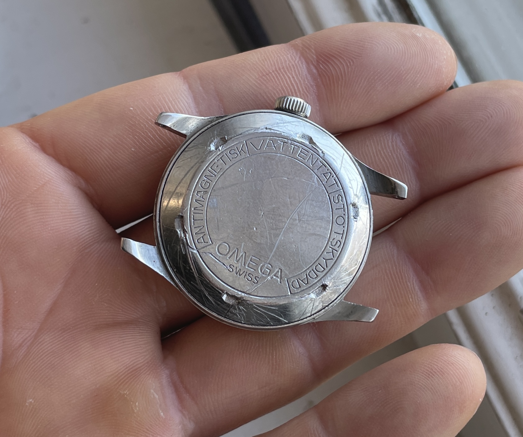 The case thick and well preserved with the original shape retained, IMO better than most Suveräns you will see that often are pretty heavily polished during its lifetime. But the caseback have had a fight with a not so friendly case- opener so it have some nasty scratches. Crown is unsigned as all Suverän are but has a slightly different profile than mo others so I'm guessing its a replacement.