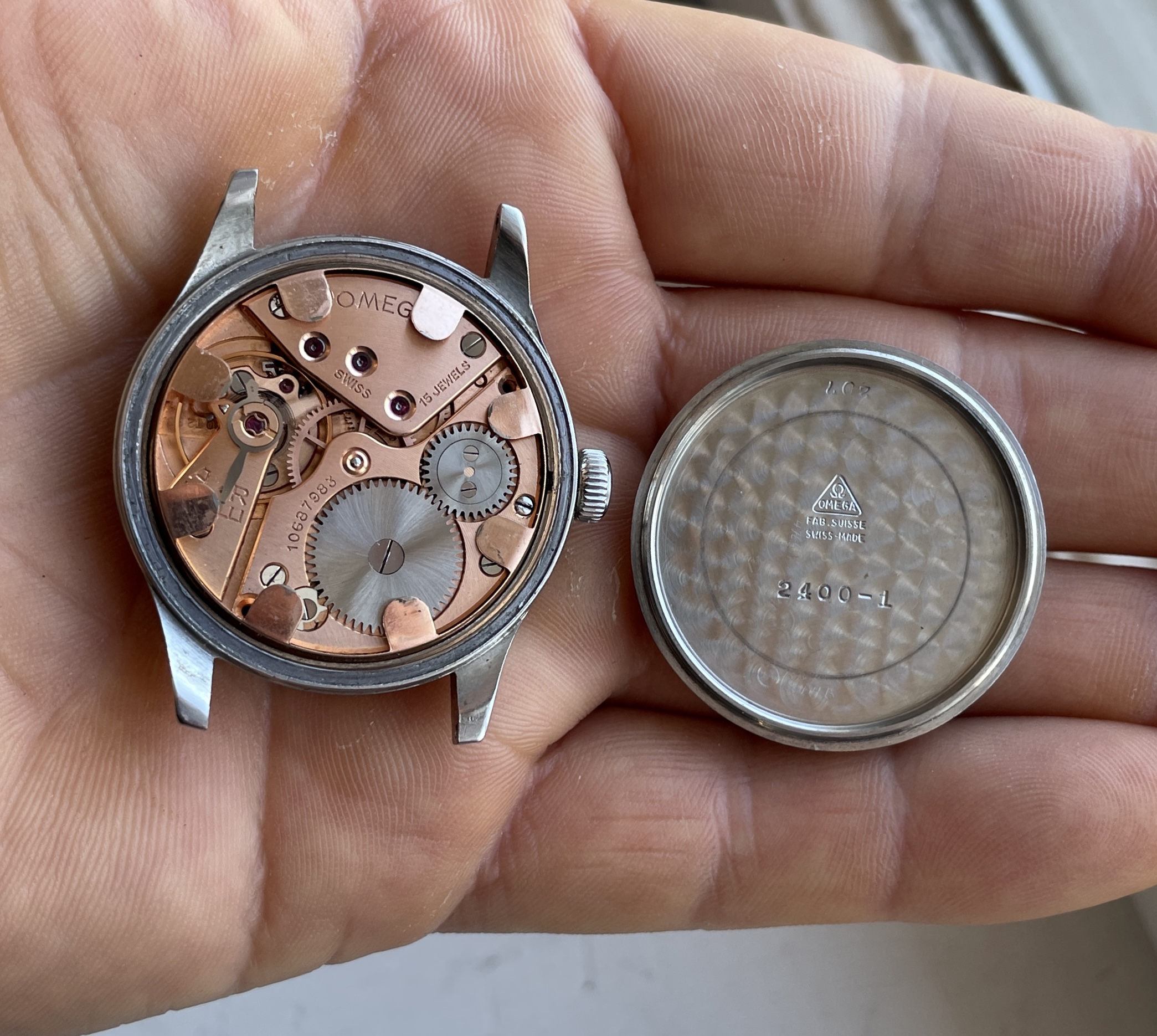 ·For sale is an Omega Suverän ref 2400-1 sold only to the Swedish market during ww2, its a well built robust 35mm large steel case which makes it quite big for its time. The caseback is signed as it should "antimagnetisk-vattentät-stötskyddad" in Swedish.