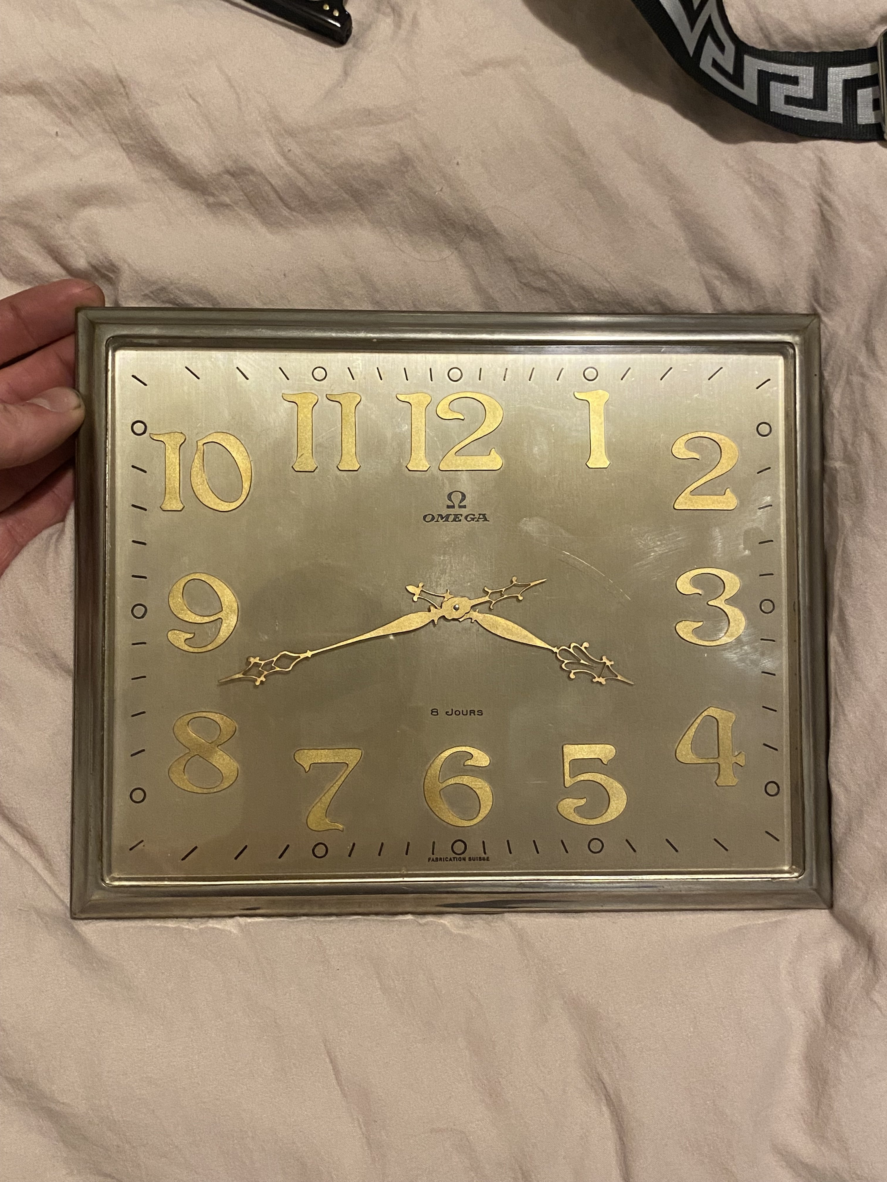 Many (thousands) of clocks like this were produced from 1927 until about 1930 - it was the style of the period. The clock shown was the largest offered (20 x 25 cm) and had the Omega reference 17.010. Other sizes offered ranged from 10.5 x 15 cm, 15 x 15 cm, 20 x 20 cm - with the smallest being 12 x 12 cm. There was a wide range of styles: variations of frame, dial, numbers and hands. As we see, this clock has gilded, raised numbers on a nickel dial - and the style is listed as ‘Cadran H’.