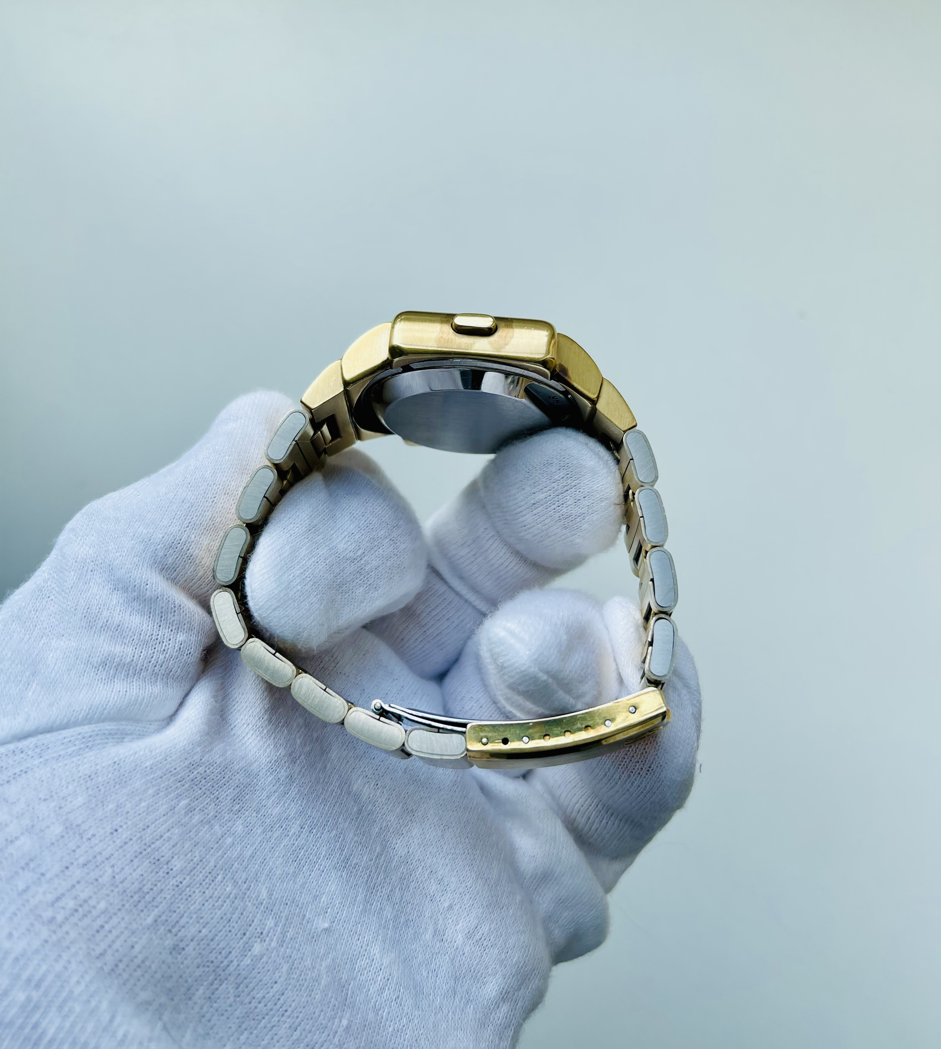 Case: gold-plated stainless steel, dimensions approx. 40 mm x 26 mm, height approx. 13.3 mm