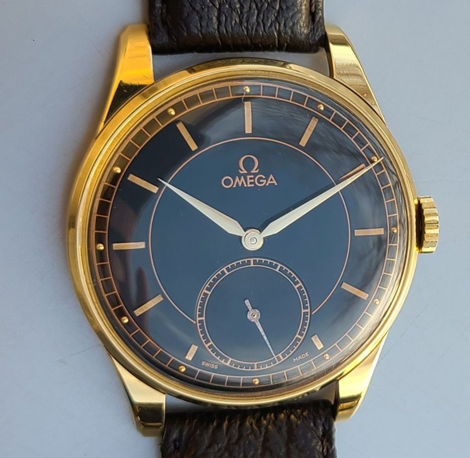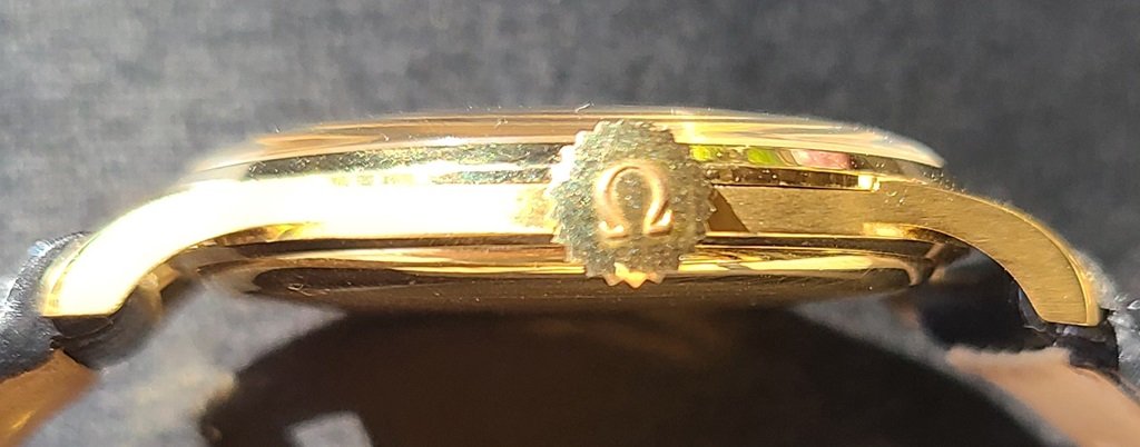 ·For sale is an amazing 18k yellow gold Omega Tresor in a 36mm wide case from about 1961. What is cool about this piece is that I swapped an OEM Omega 1894/1994 anniversary dial into this Omega 2896 "Tresor" in 18k YG case. These dials rarely come up for sale and they're worth between $300 - $500 IMO.
