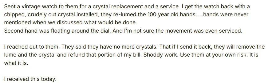 I guess you can always find a bad review online, maybe it's true or maybe it's not. But many people have used crystalfit. I don't think you need to send the movement and dial.