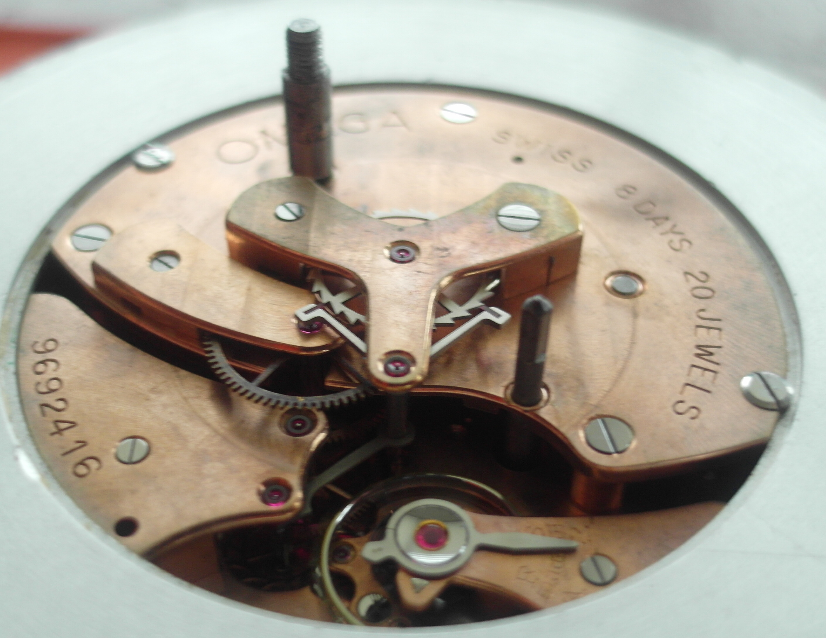 * About the hack mechanism: the back has 3 holes. Winding and setting levers are visible. The middle hole, that appears empty, houses the hacking, eccentric lever. The lever is missing here, but the hacking mechanism is accessible with a small screw driver through that hole in the middle. A tiny, anti clockwise turn and the hacking mechanism engages. Watch the center second and as soon as it stops to set the exact time, the watch is running and as soon as the time setting is correct to the second, release the mechanism in turning the screw driver back clockwise until is locks. Never engage the stopping eccentric screw longer or with force, because the stopping mechanism works with a very fine, spring loaded steel blade , that should put too much pressure onto the second escape mechanism for the jumping second. Easy to do , once you did it . And not necessary often, only to synchronize the second hand to a master time keeper.*