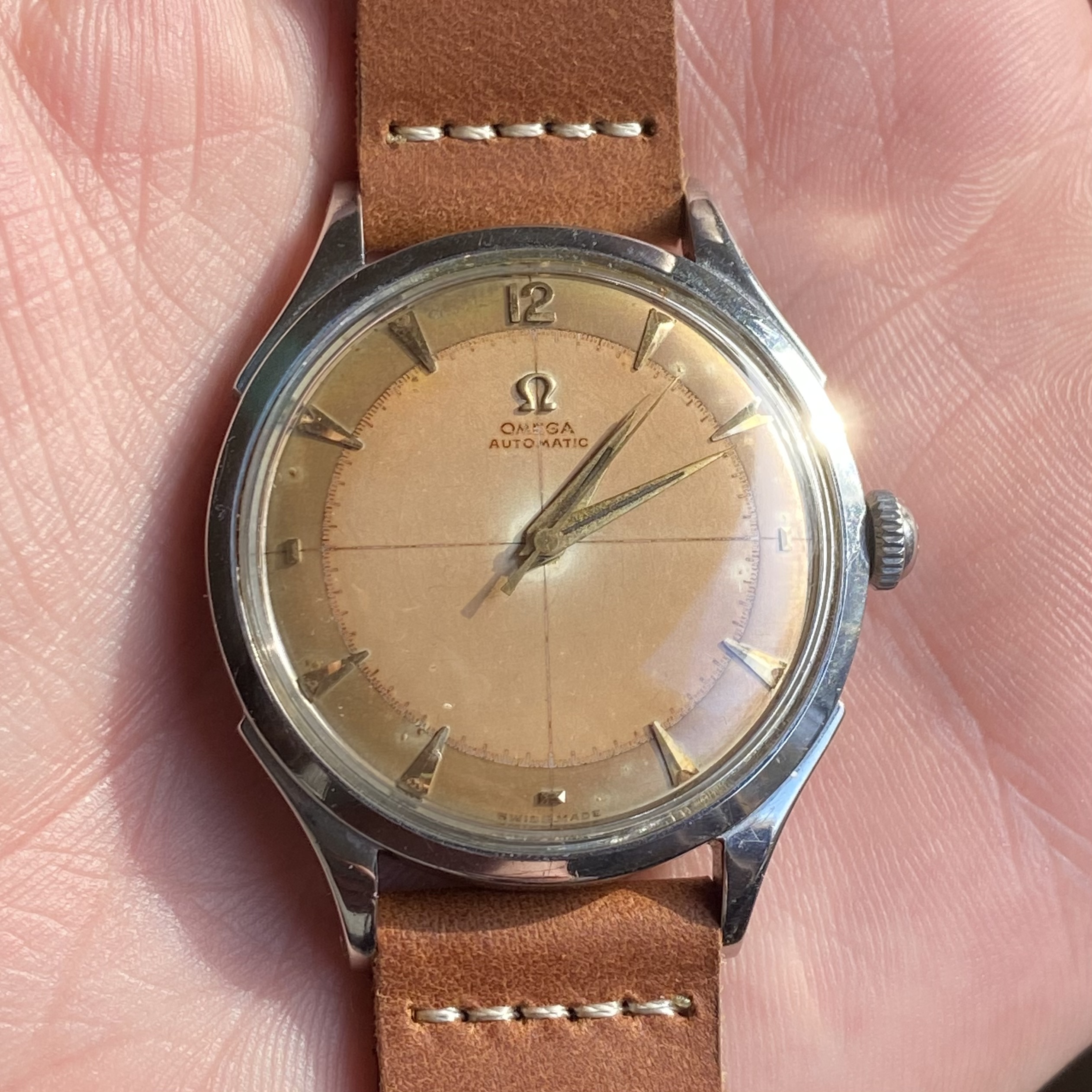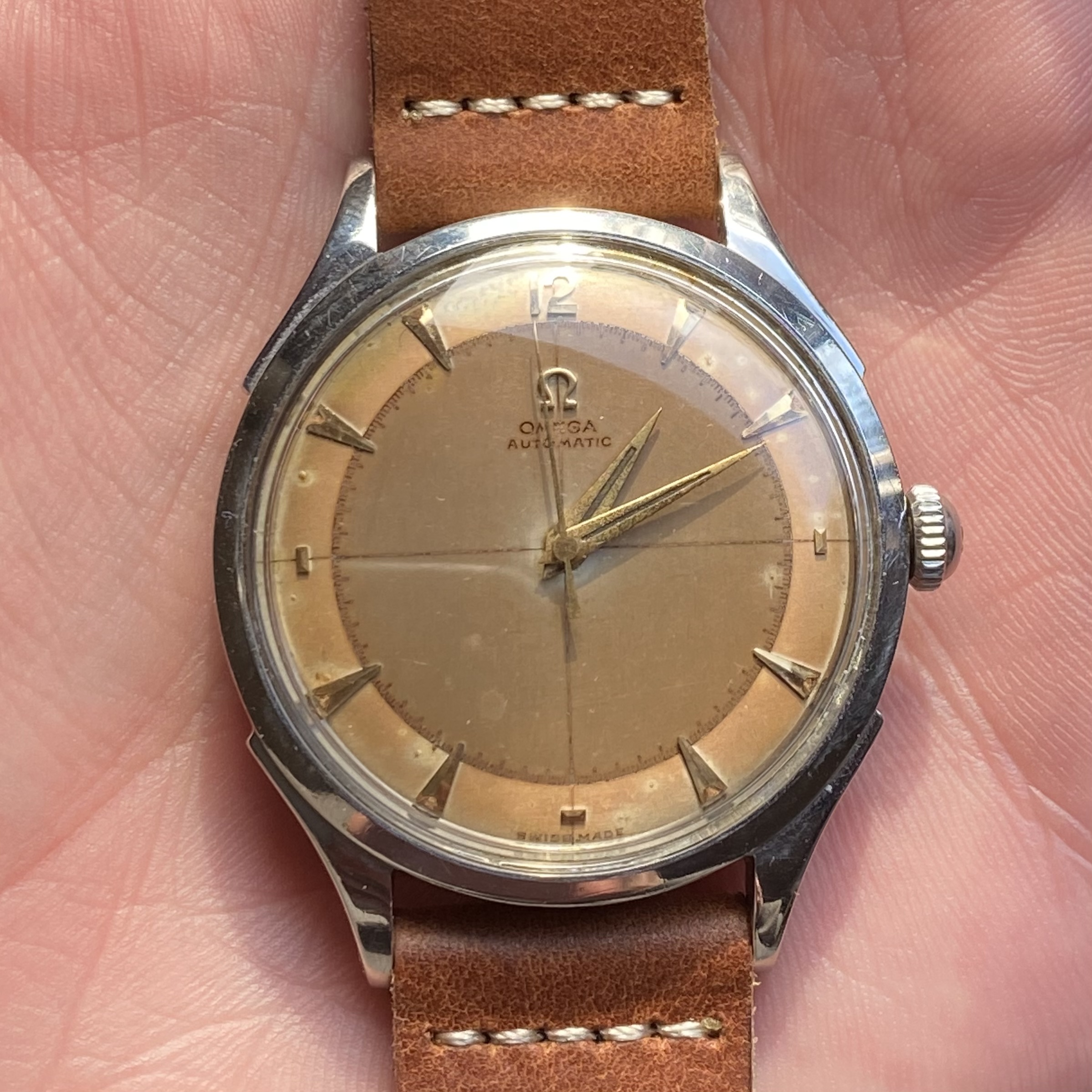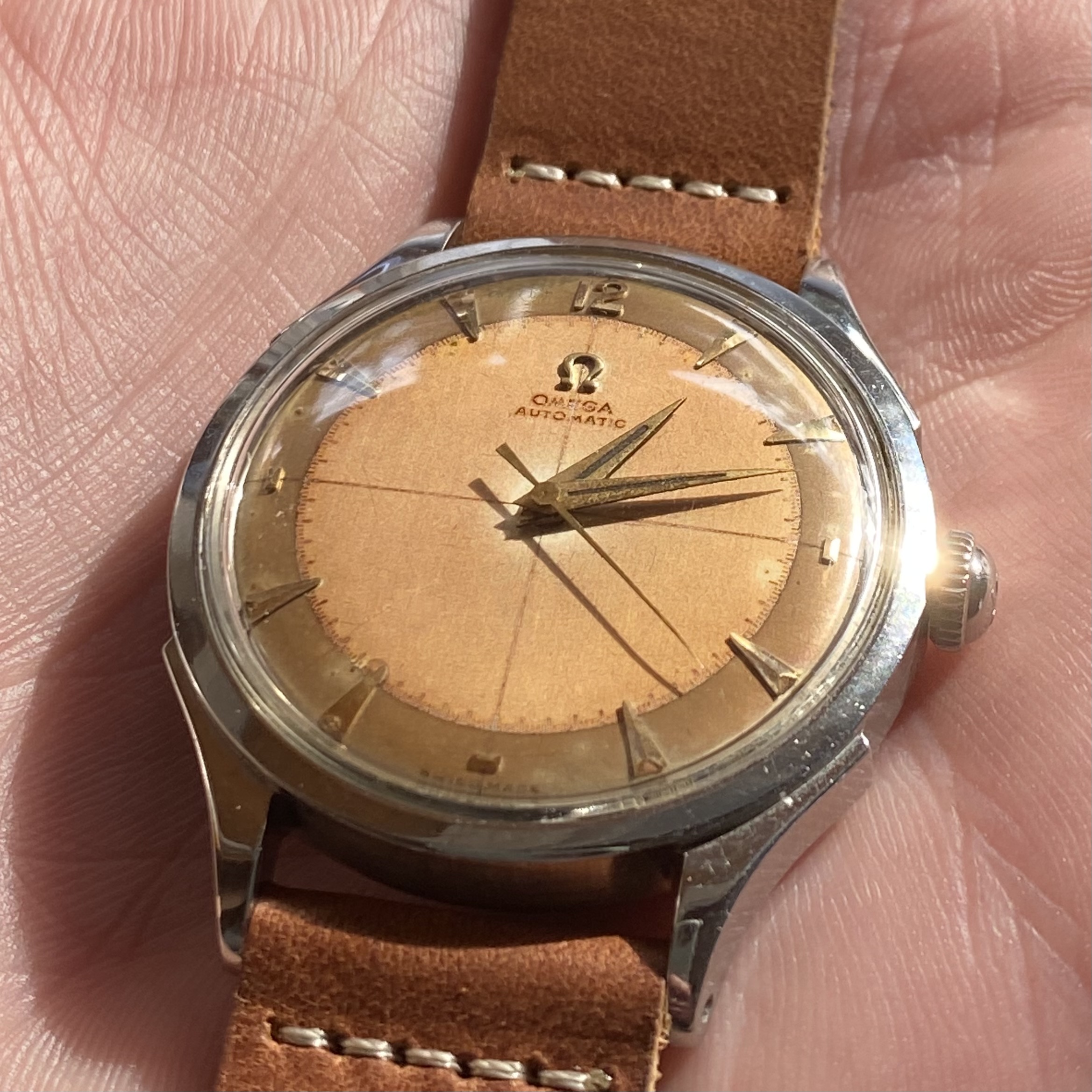 Posts 5,636 Likes 5,811 SkunkPrince ·Jan 7, 2021 Plausible! One of the few times the dial actually matches the catalog picture in the Omega database.... https://www.omegawatches.com/en-us/watch-omega-other-omega-ck-2637 As you can see the crown is likely not correct.