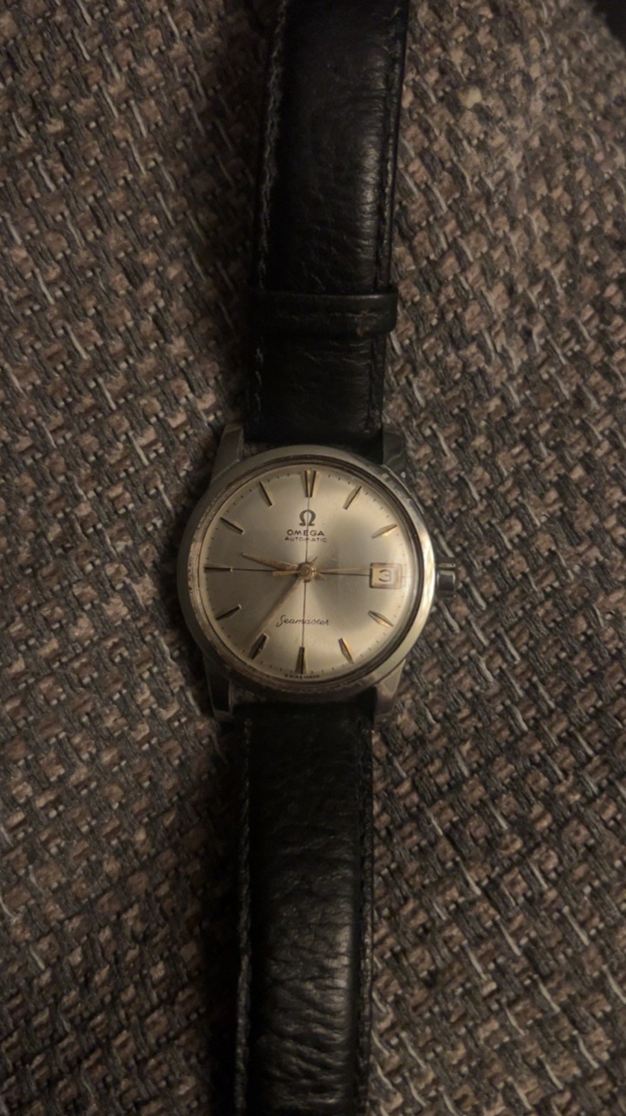 My grandad left me this watch and I’m just wondering if anyone could tell me if they think it’s real and if so what year it is and any other information they might have on this particular watch. I can’t seem to find anything on google for a seamaster that has like a split dial face like this,