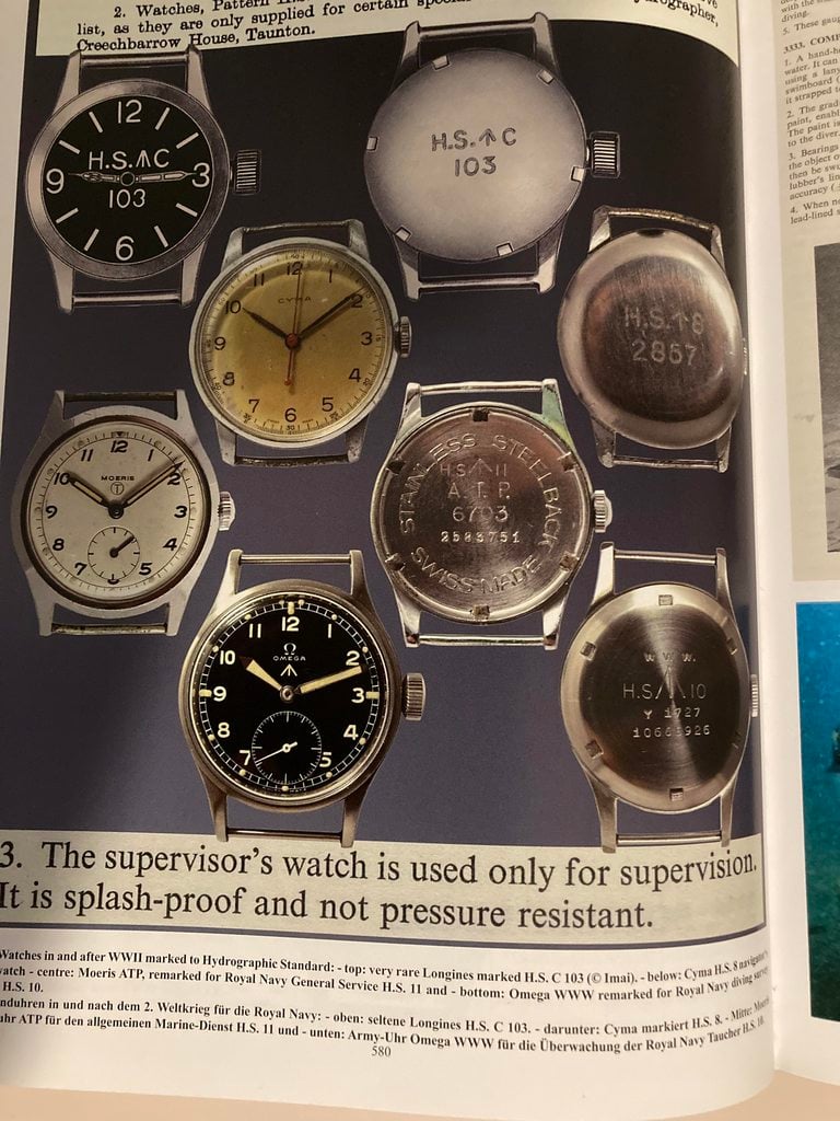 “What doesn't make sense is the Omega WWW remarked HS 10 watch, it certainly isn't a divers watch in the true sense ... They would have been perfectly suitable for the dive supervisor's role by meeting the 'splash-proof' requirement mentioned in B.R. 2806.