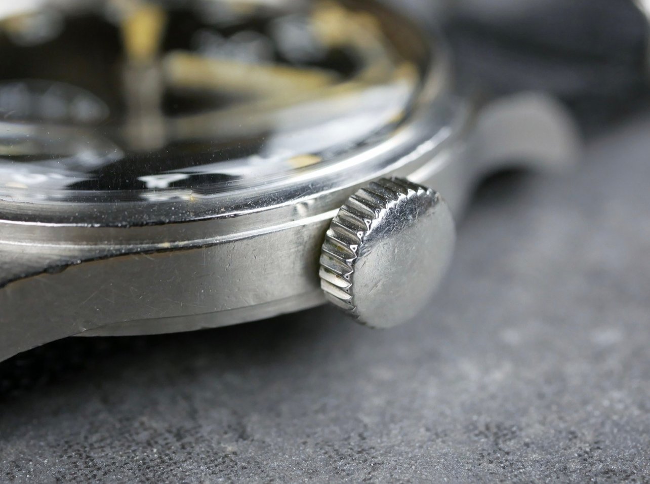 However, the Omega for sale is considerably rarer and special still due to it having been subsequently re-issued to the Royal Navy for the Diving Survey, most likely for use as a Dive Supervisors wristwatch. This is indicated by the additional markings of H.S 10 on the reverse of the case back. “H.S.10” refers to the Royal Navy stores reference for a “Divers Wristwatch”.