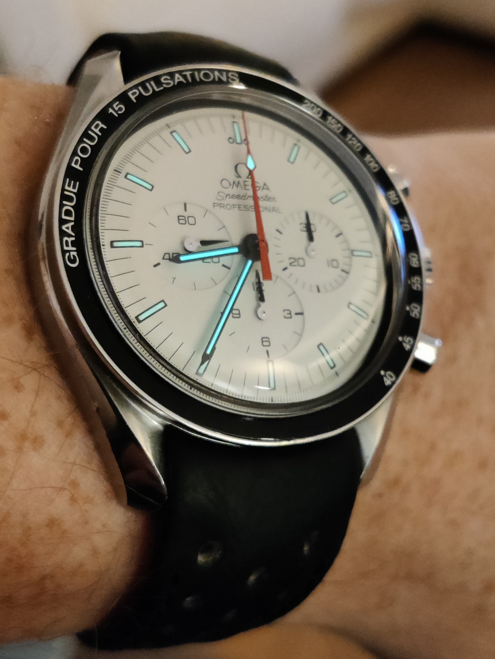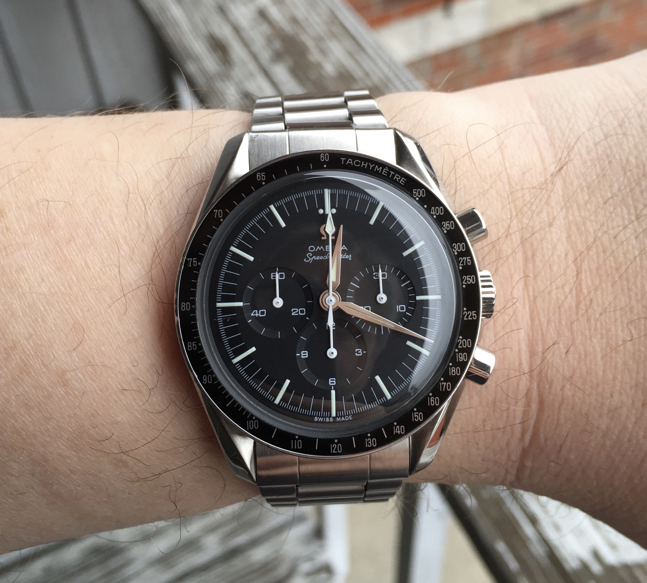 Here’s a 1171 bracelet I did years ago, high-polishing the outer links because I think it goes better with the watch. On the 300 below, I find the center links way too flashy, so I’m contemplating reversing the original finish, by putting the brushed finish in the center, and polishing the outer links. That would make it closer to the original layout on the flat-links. Anyone else?