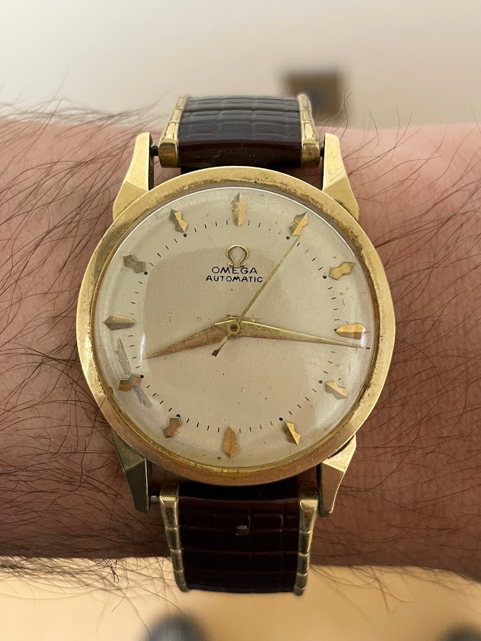 The dial appears to have been refinished, the hands replaced, the crown is missing but the case looks very well preserved. Such a nice gesture and amazing gift. I don't know anything more about it other than the background story but I plan on opening the case back when I get home today to learn more. I think I might start a new watchbox and put all of the watches I received as gifts from patients from over the years.