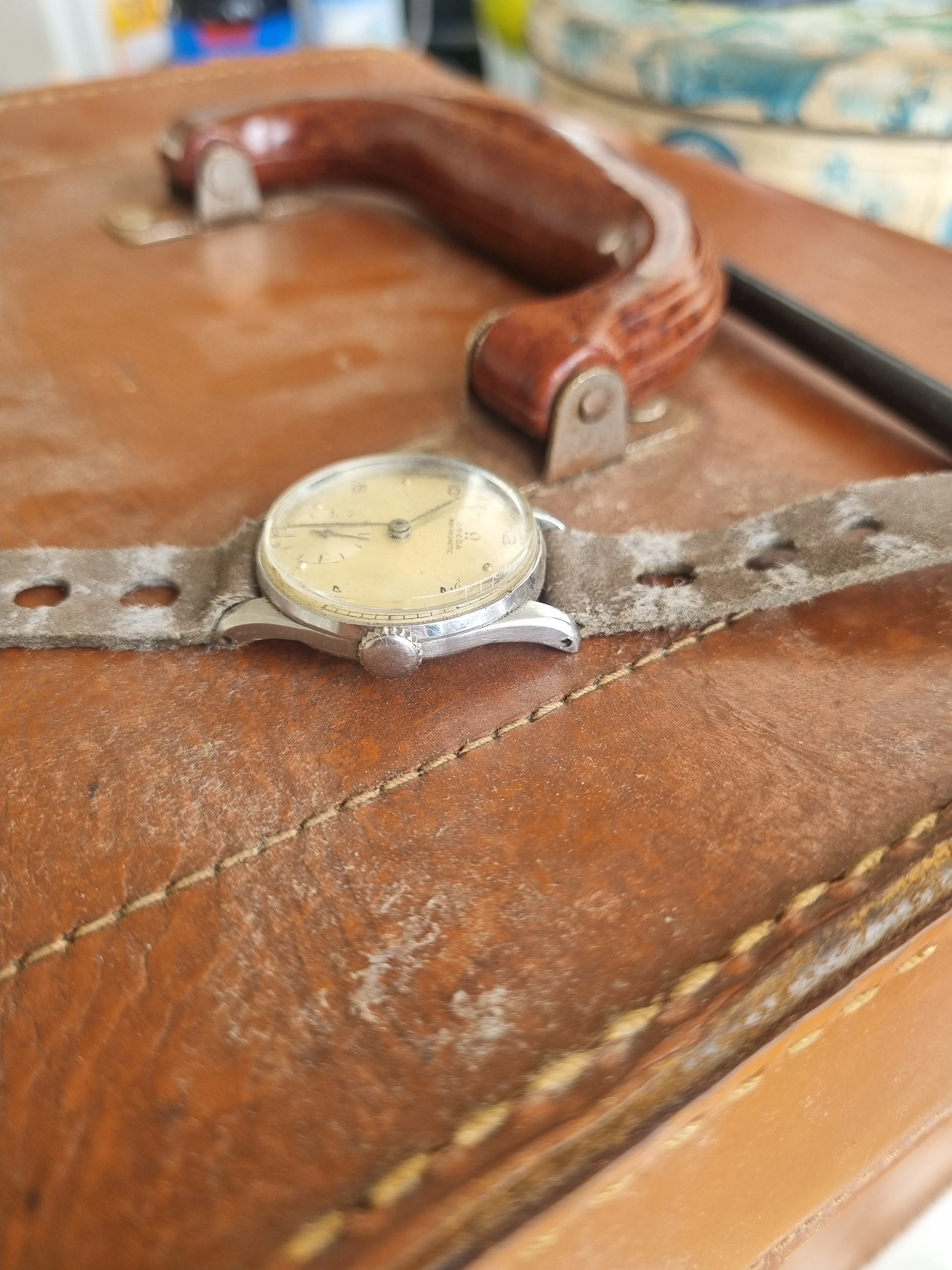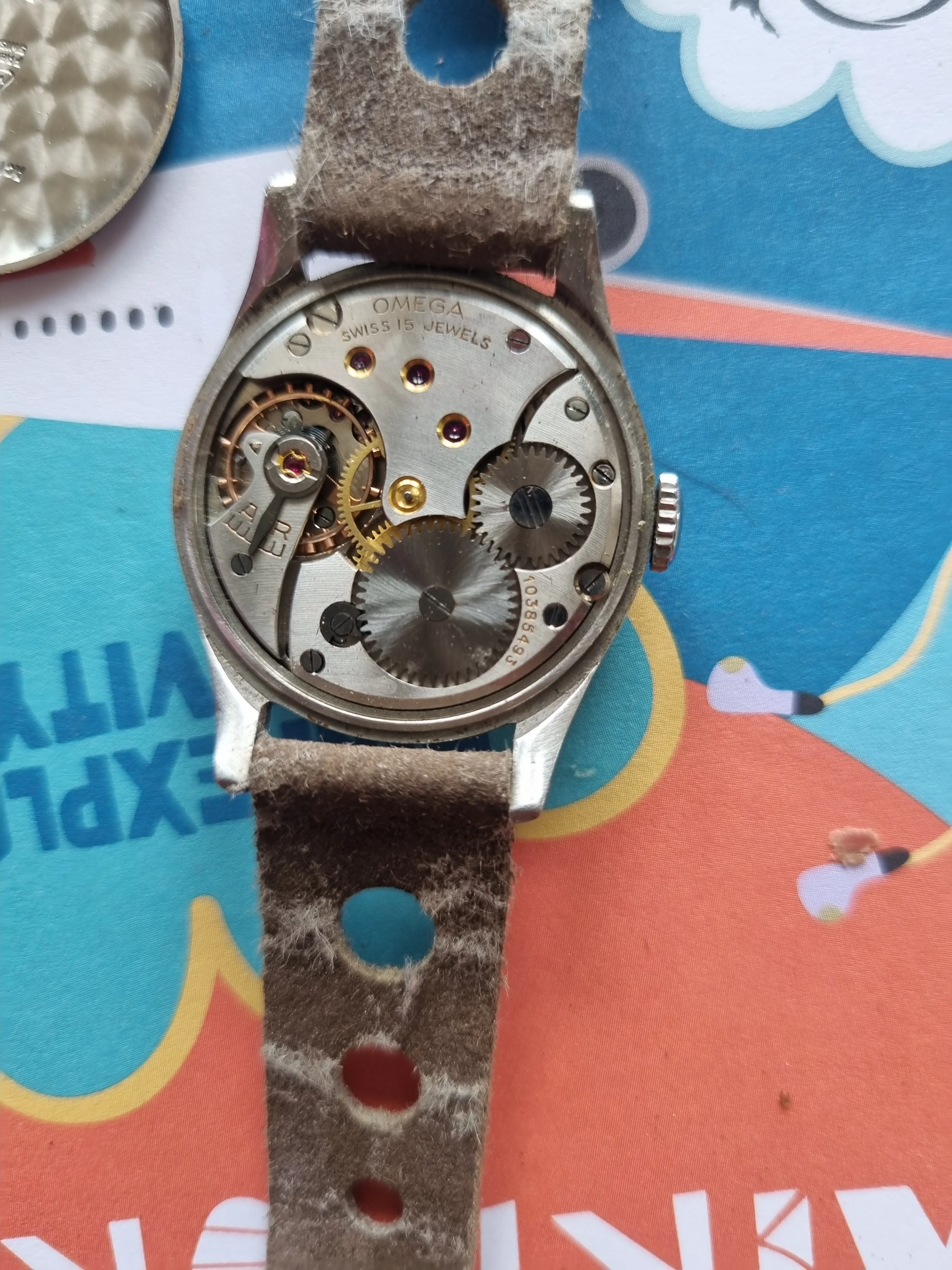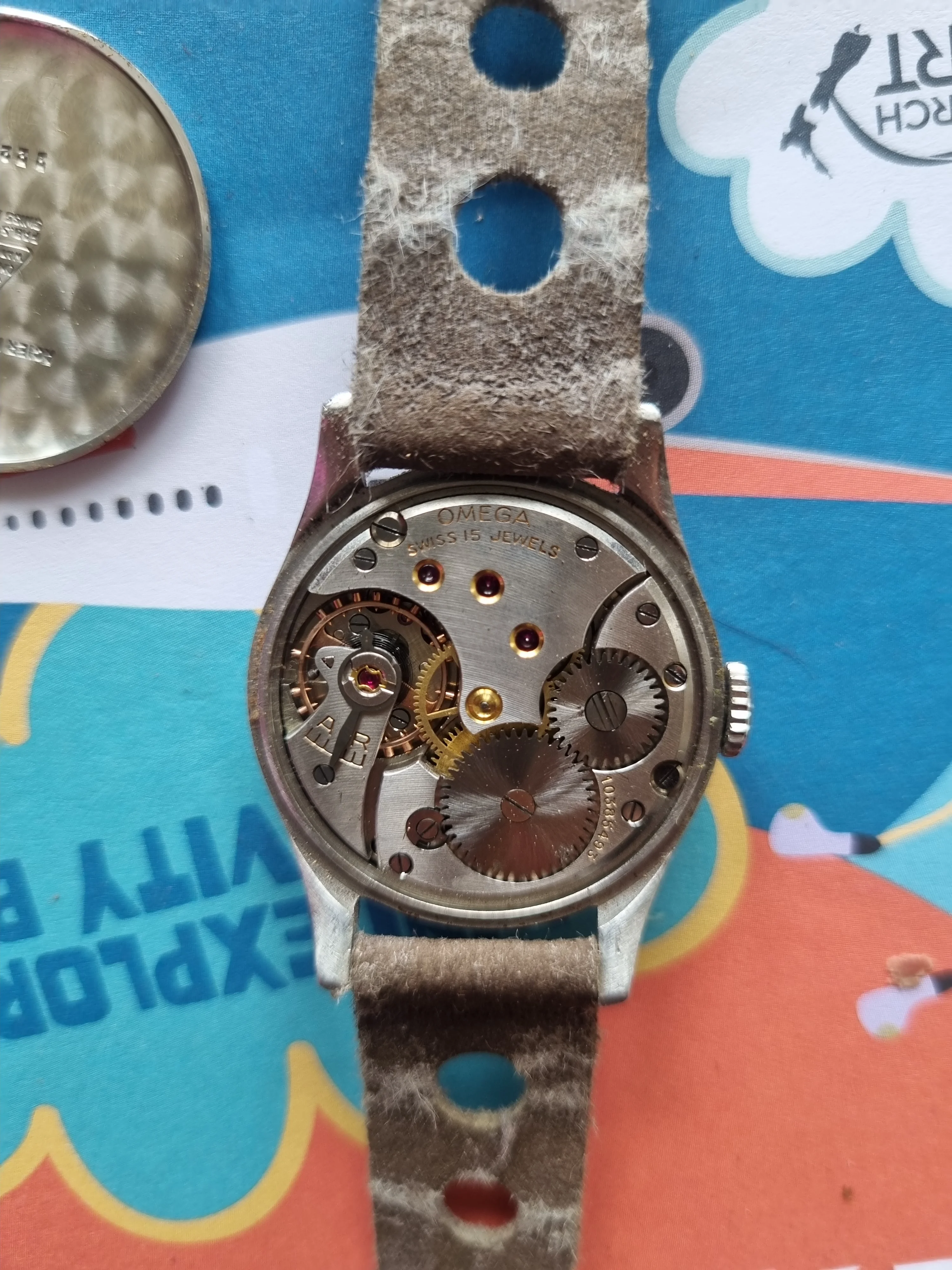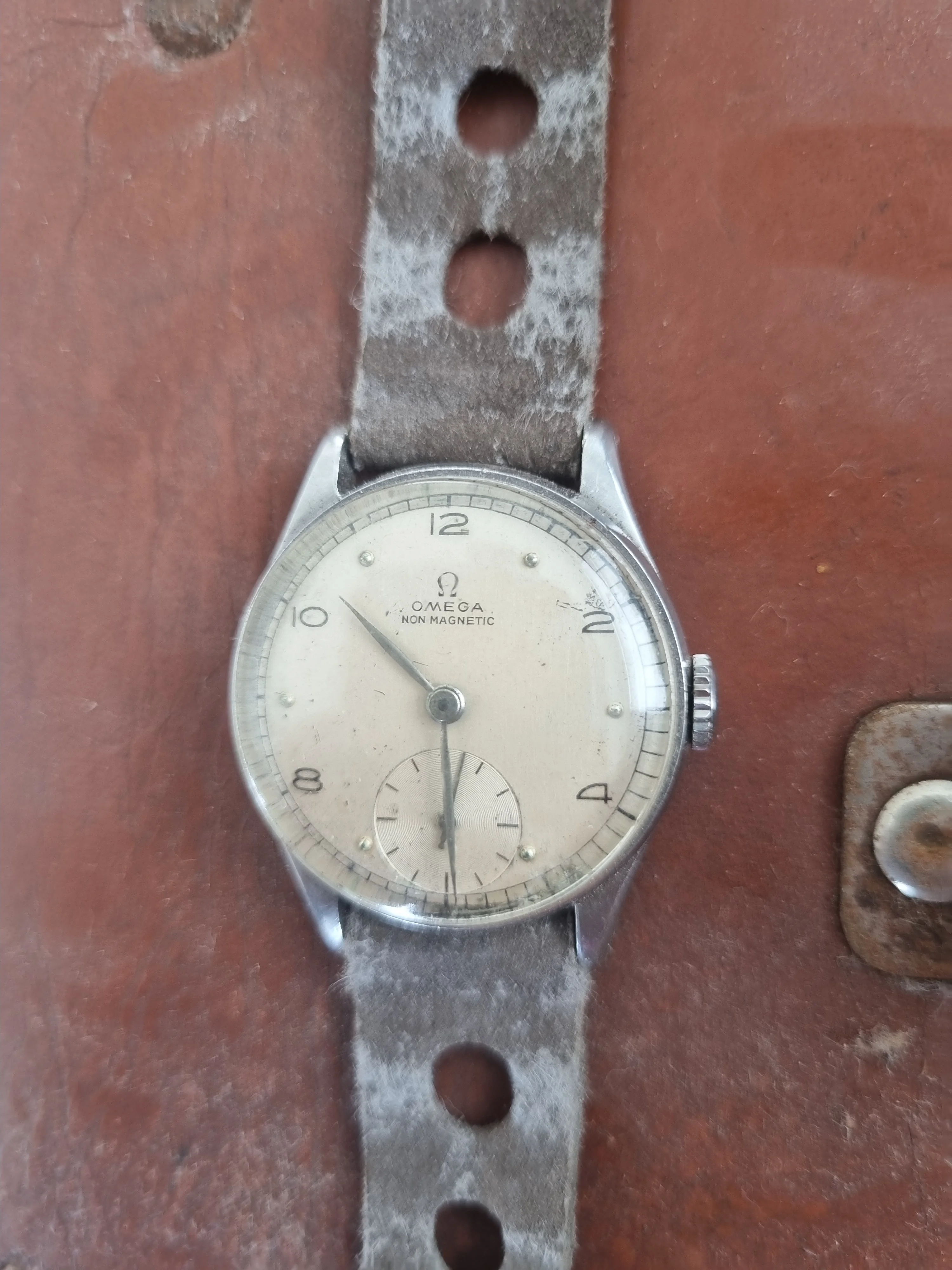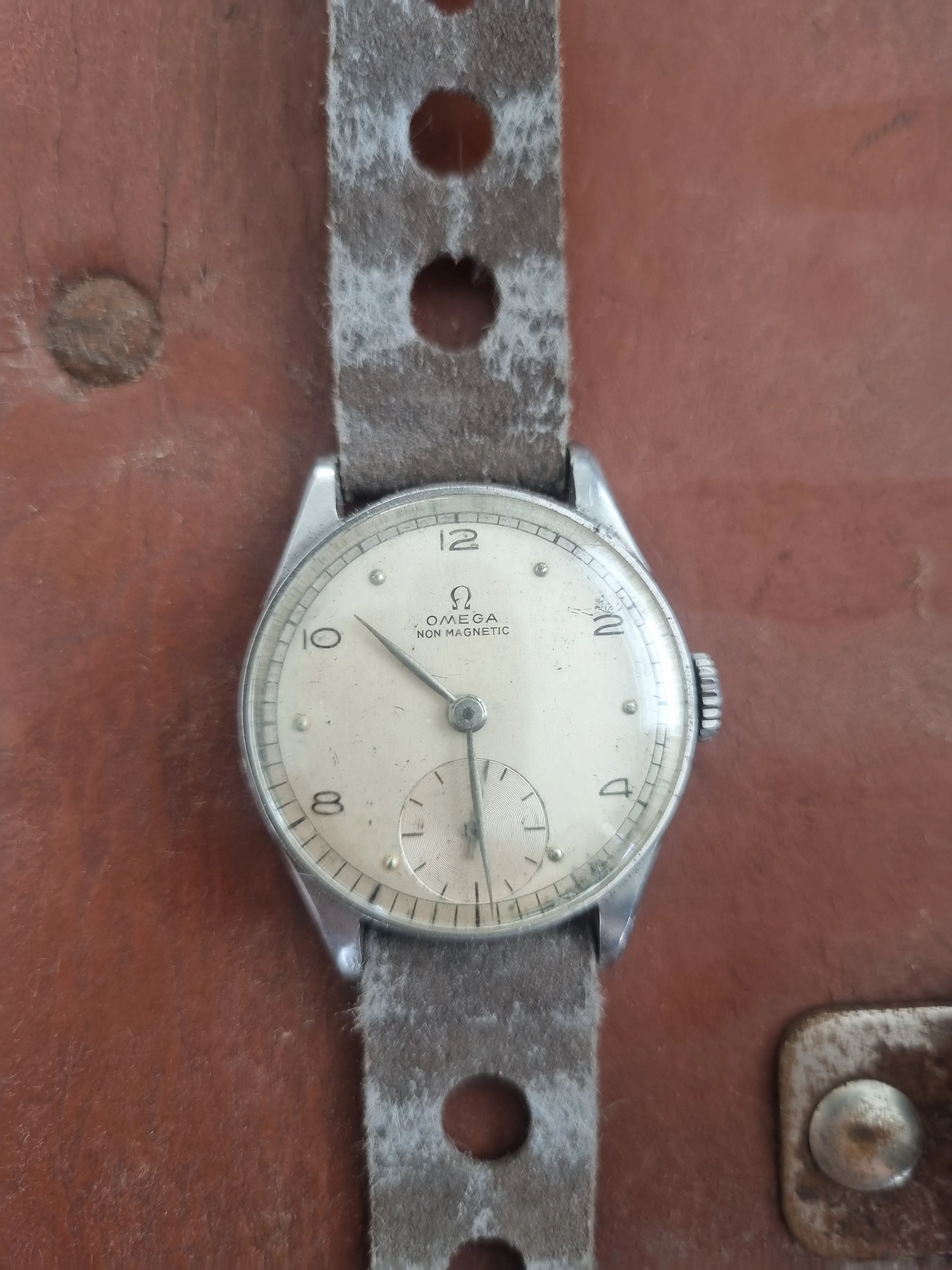 At the risk of being informed otherwise, it looks to me like a genuine, well cared for original from perhaps the mid to late 1940s. Your Omega is equipped with shock protection (Incabloc balance jewels). We often see this model of Omega movement not so equipped. The case was never, is not now, nor will it ever be water resistant. Competently and thoroughly serviced, and treated respectfully, this watch could give very good service, and be a pleasure for a long time. Ditch that strap, however.