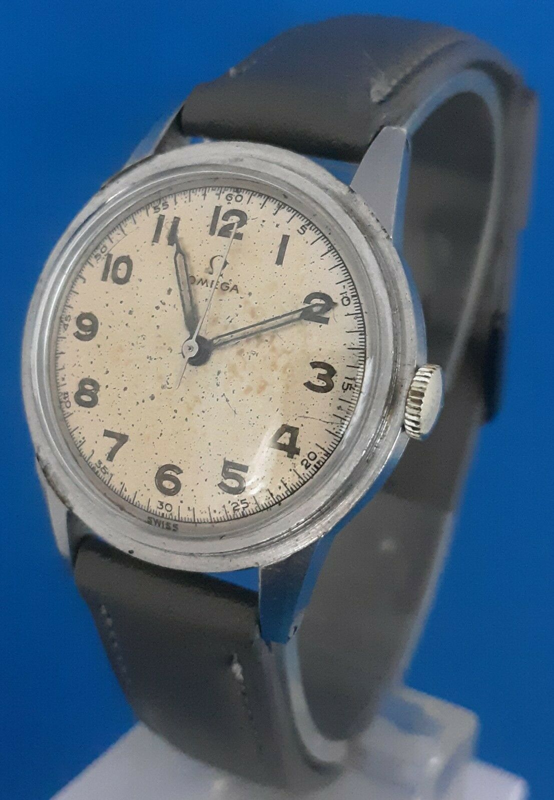 I'm not sure what model it is. My guess is 2300. But I'm just not sure. I noticed that most Omega WWII watches have sectors on the dial. (Sectors - I think that's the right term?). However, mine instead has little seconds markings along the edge. This is what makes me wonder.