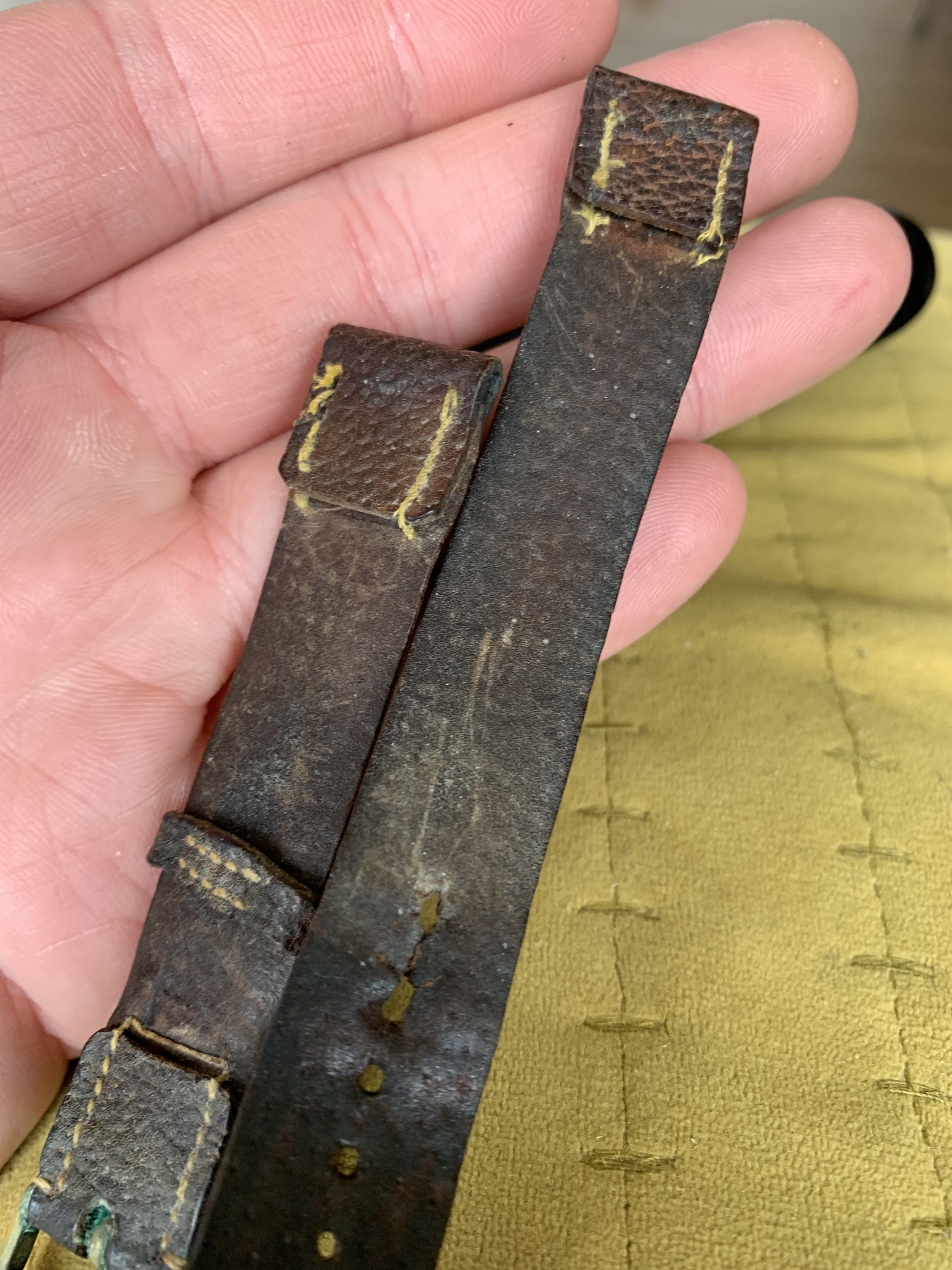 I thought those were generally issued with one-piece canvas straps. Certainly looks like an old strap, though.