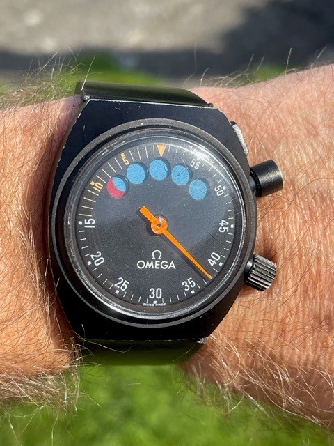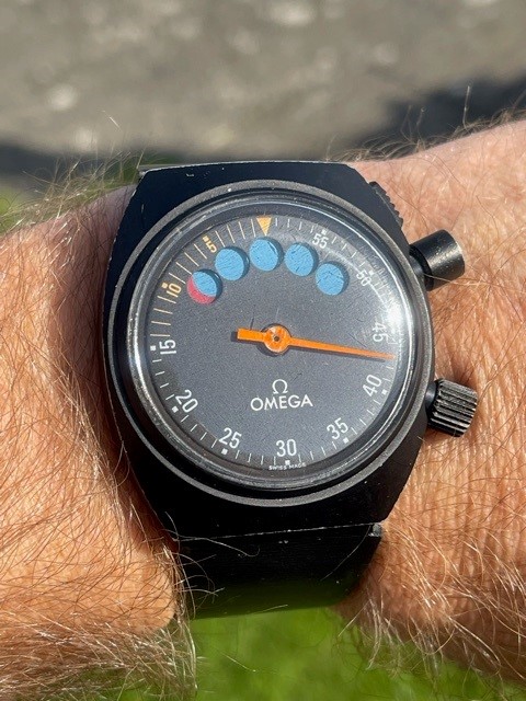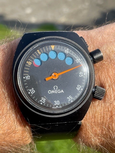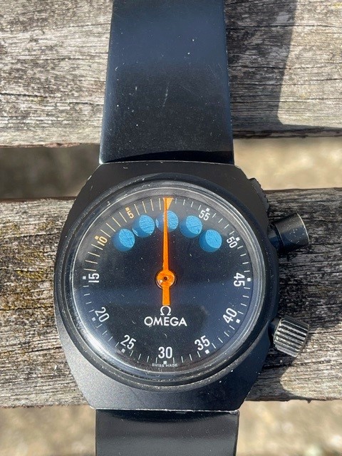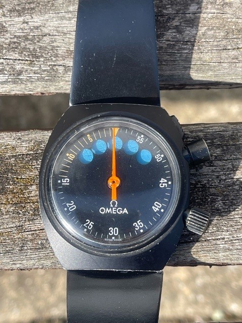 Up for sale is an Omega yachting timer from approx. 1980. Reference number is 10030 on the case and the calibre is a lemania based 7280 movement that is used on similar Lemania and Tag Heuer watches. The watch size is 44mm wide.