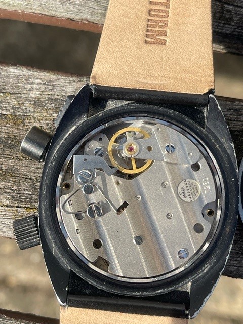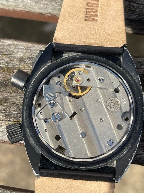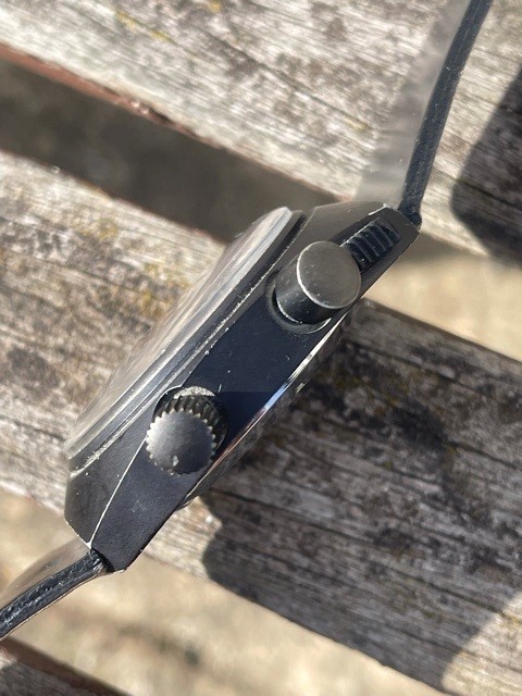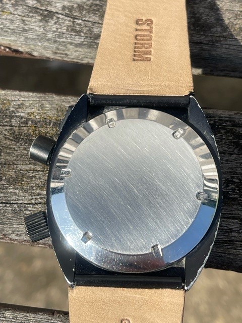 The watch is working well, although I have no service history. No papers or box. All functions work and the timer function is working correctly. As can be seen the watch has been well used, with some damage to the case between the lugs. The strap is a replacement Storm strap.