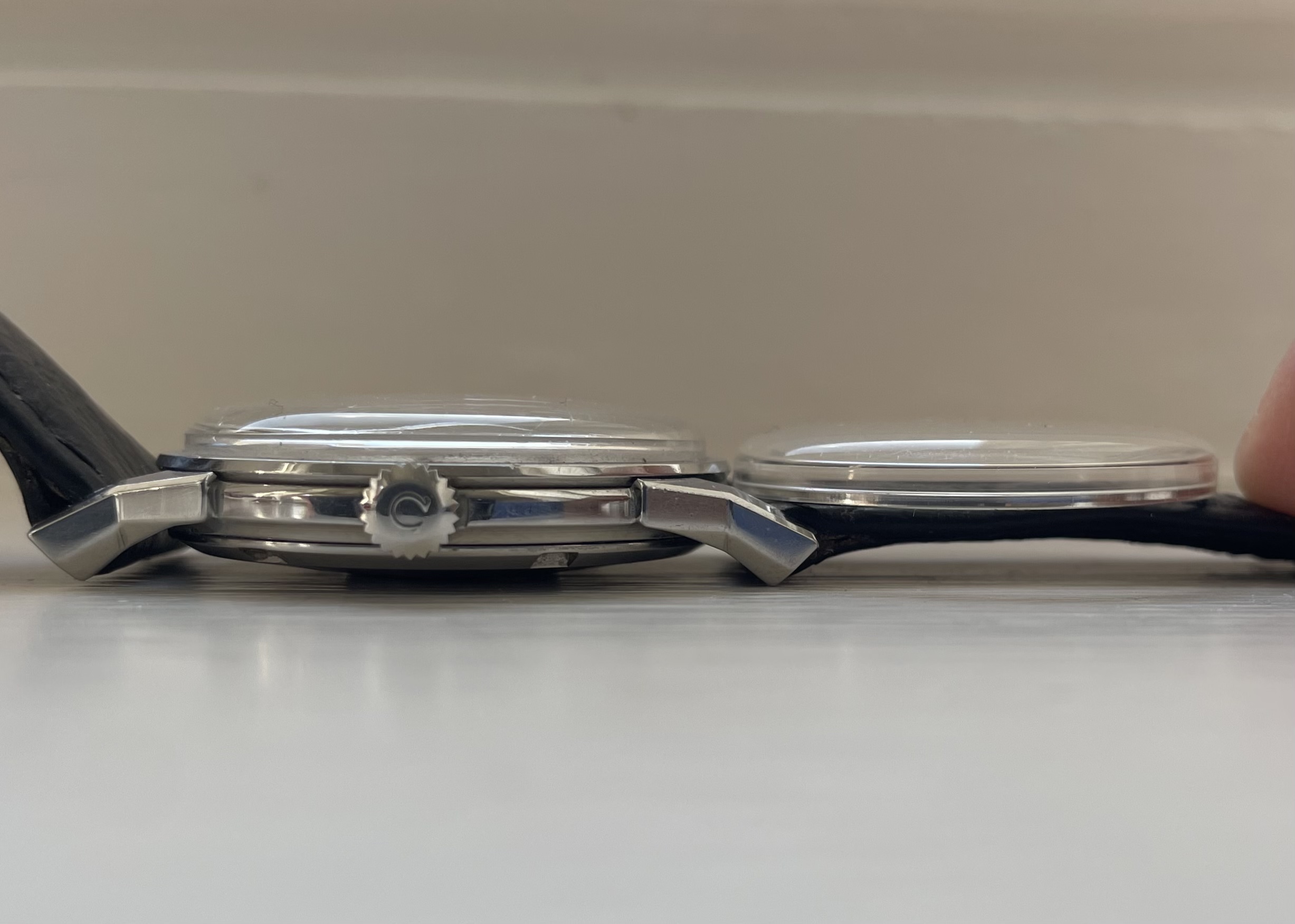 Omega crystals have a tension ring, some of them, designed to hold them in place and provide enhanced water resistance. Some of our fellow forum members call that tension ring a "rehaut" even though they are VERY WRONG to do so.