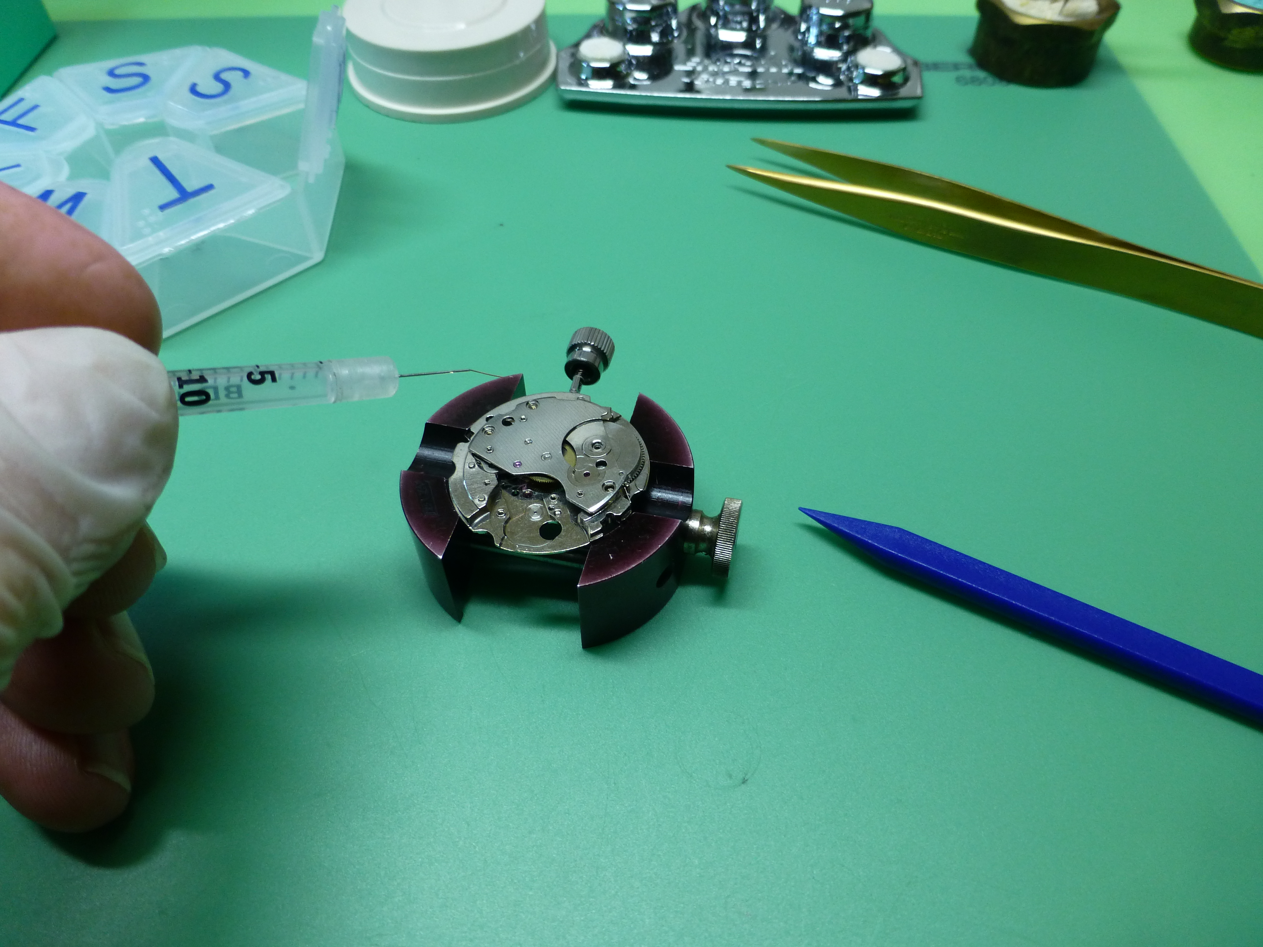 These Seikos tend to have amplitude that sucks, so anything you can do to get it up will help get you better results in the end. Another area where I see issues on barrels is the top surface of the hole that the arbor goes through in the drum. Ham fisted watchmakers who don't use barrel arbor holders, or are just clumsy with them, can chew up the top surface of the hole when inserting the barrel arbor, and this is another cause of amplitude loss. Sometimes this damage can be cleaned up so the surface is flat again, and then you just have to check the barrel arbor end shake.