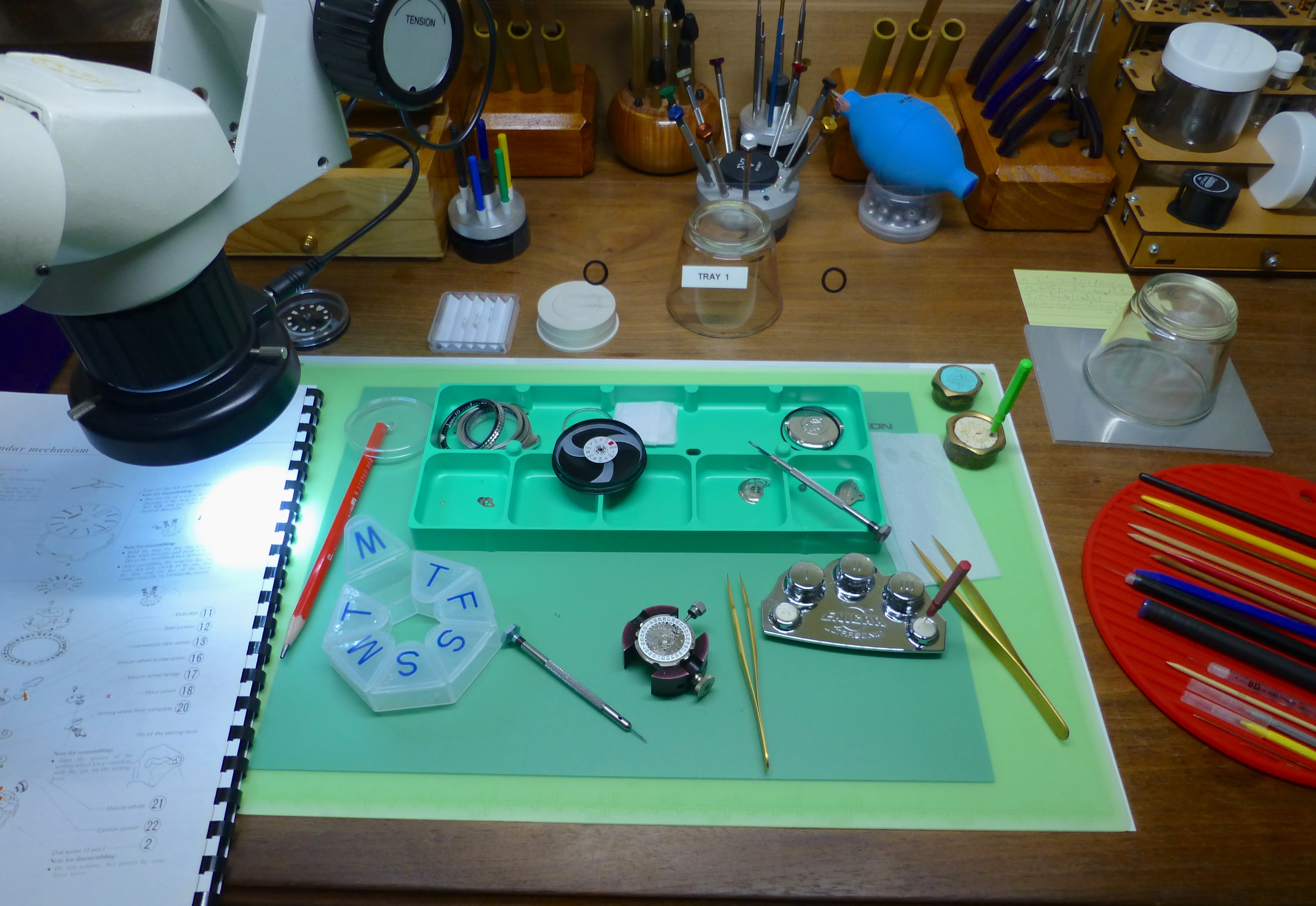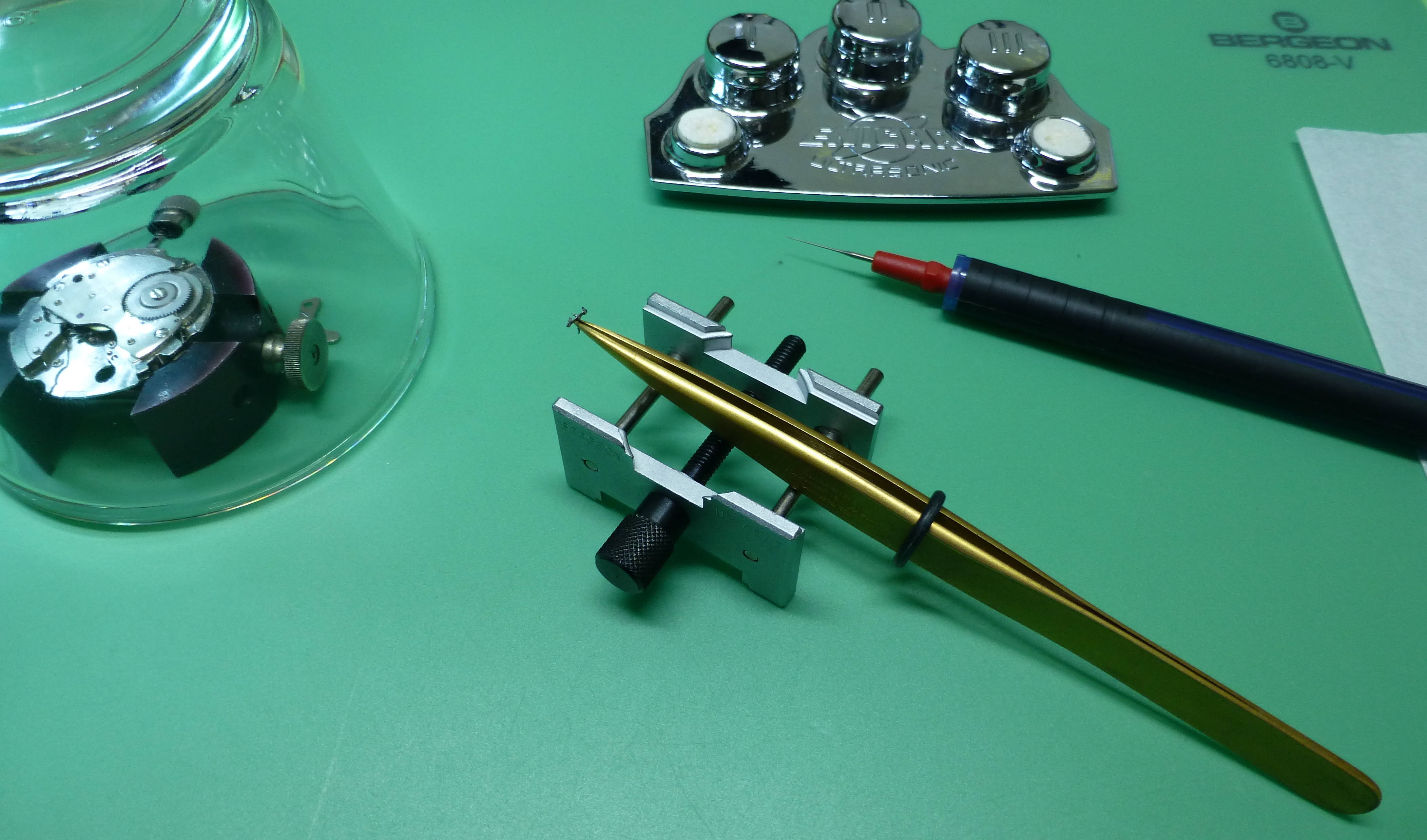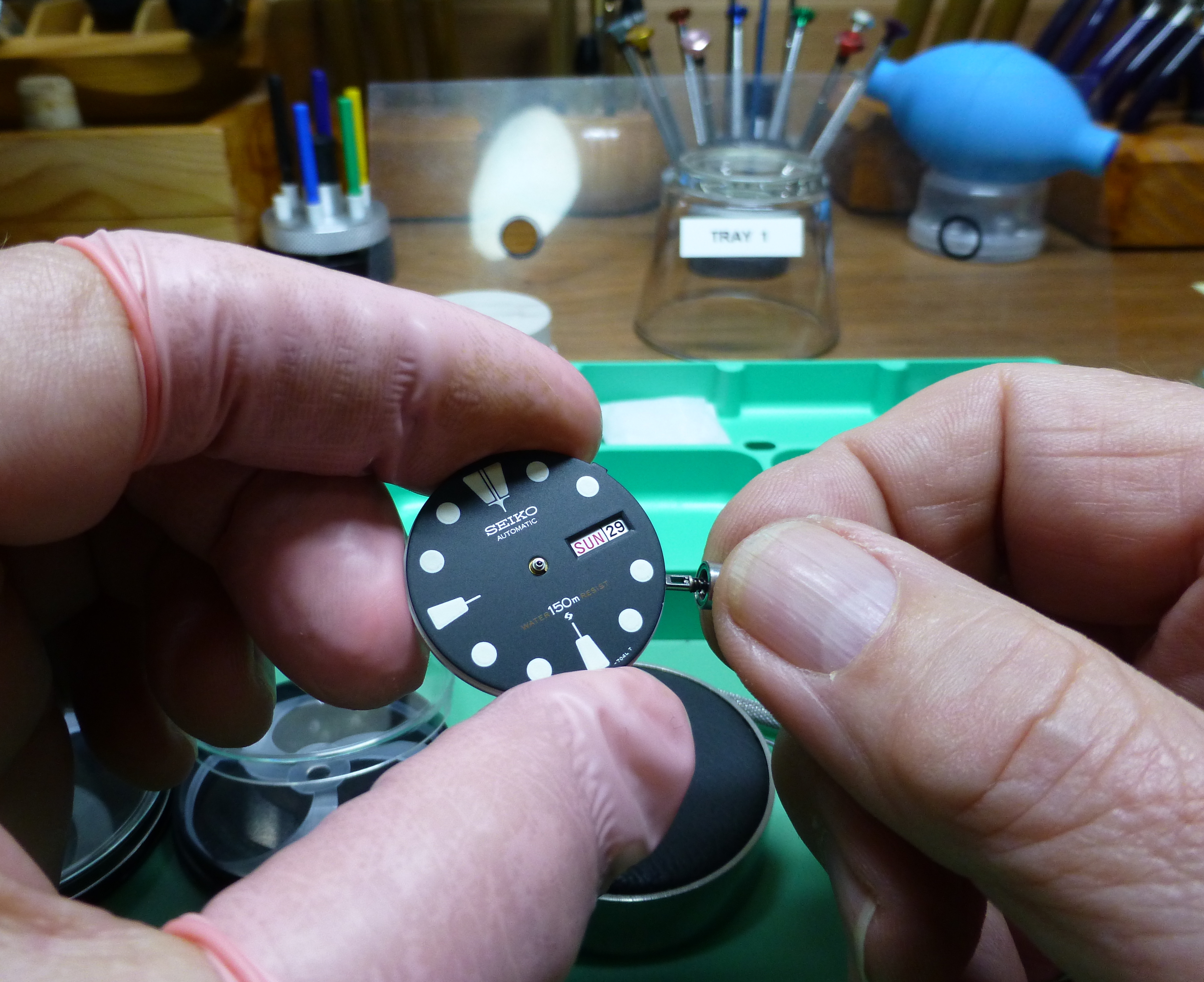 Not sure who was the first with a one direction bezel, does anyone know? I do know the old Doxa 300T's had a one direction bezel, and they were made in 1969 I believe. In the past I've made new click springs for them, like on this one several years ago - it's just a wire spring and the one for this watch was missing, but I knew what it looked like, so out came the wire: