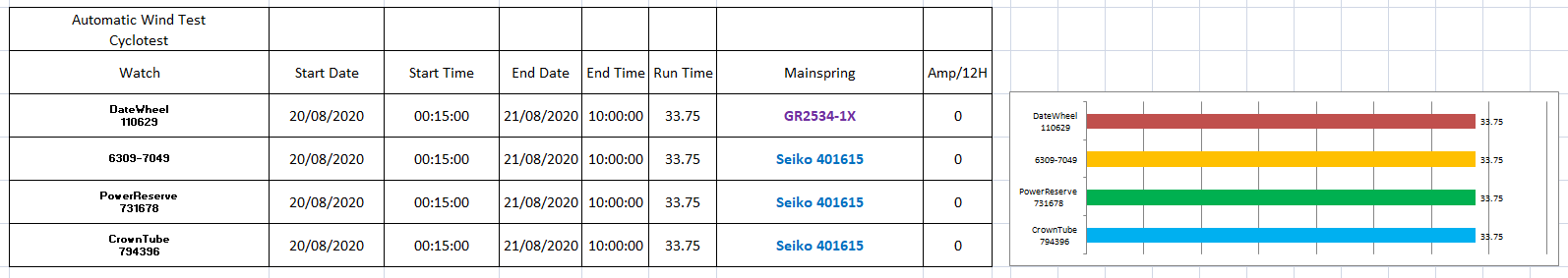 I currently have four 6309s on a power reserve test. All have been serviced and jewelled (barrel arbor jewels) and put on my new Cyclotester to wind them (rather than my dodgy watch winder box).