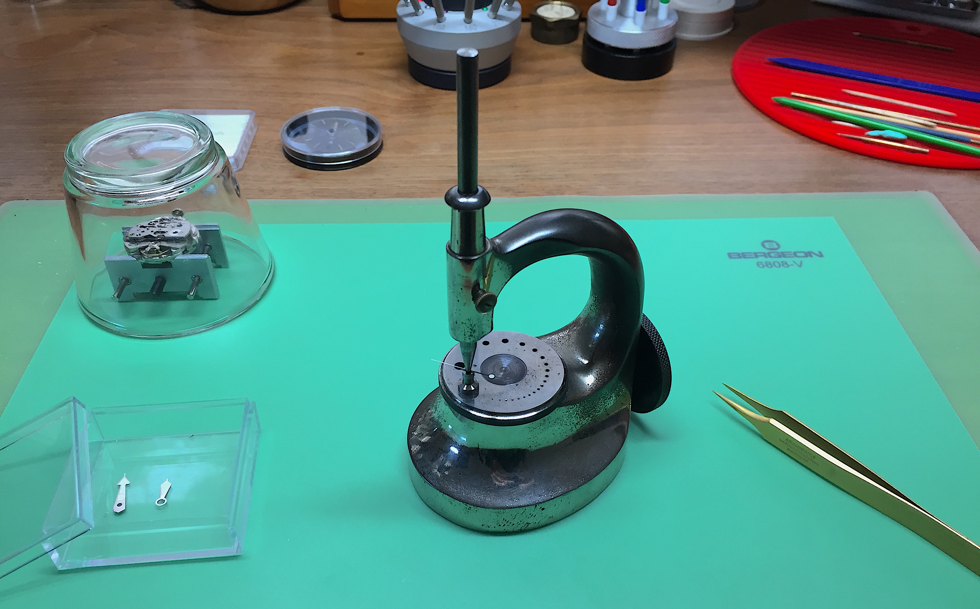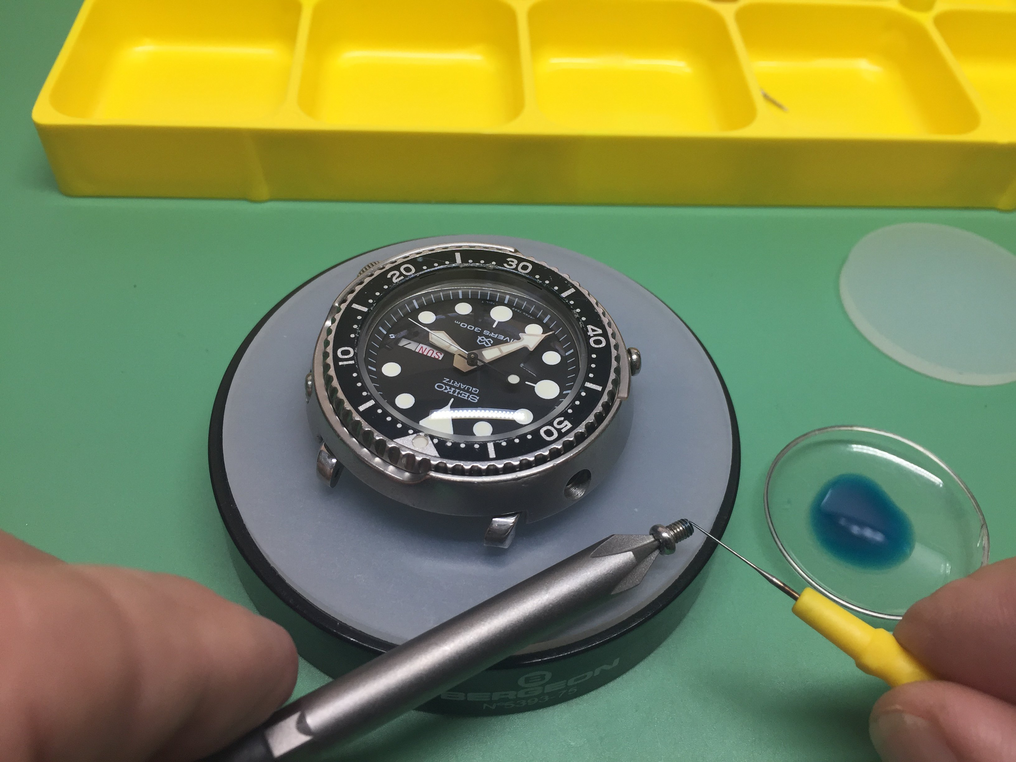 The movement was cased and the bezel pressed on.