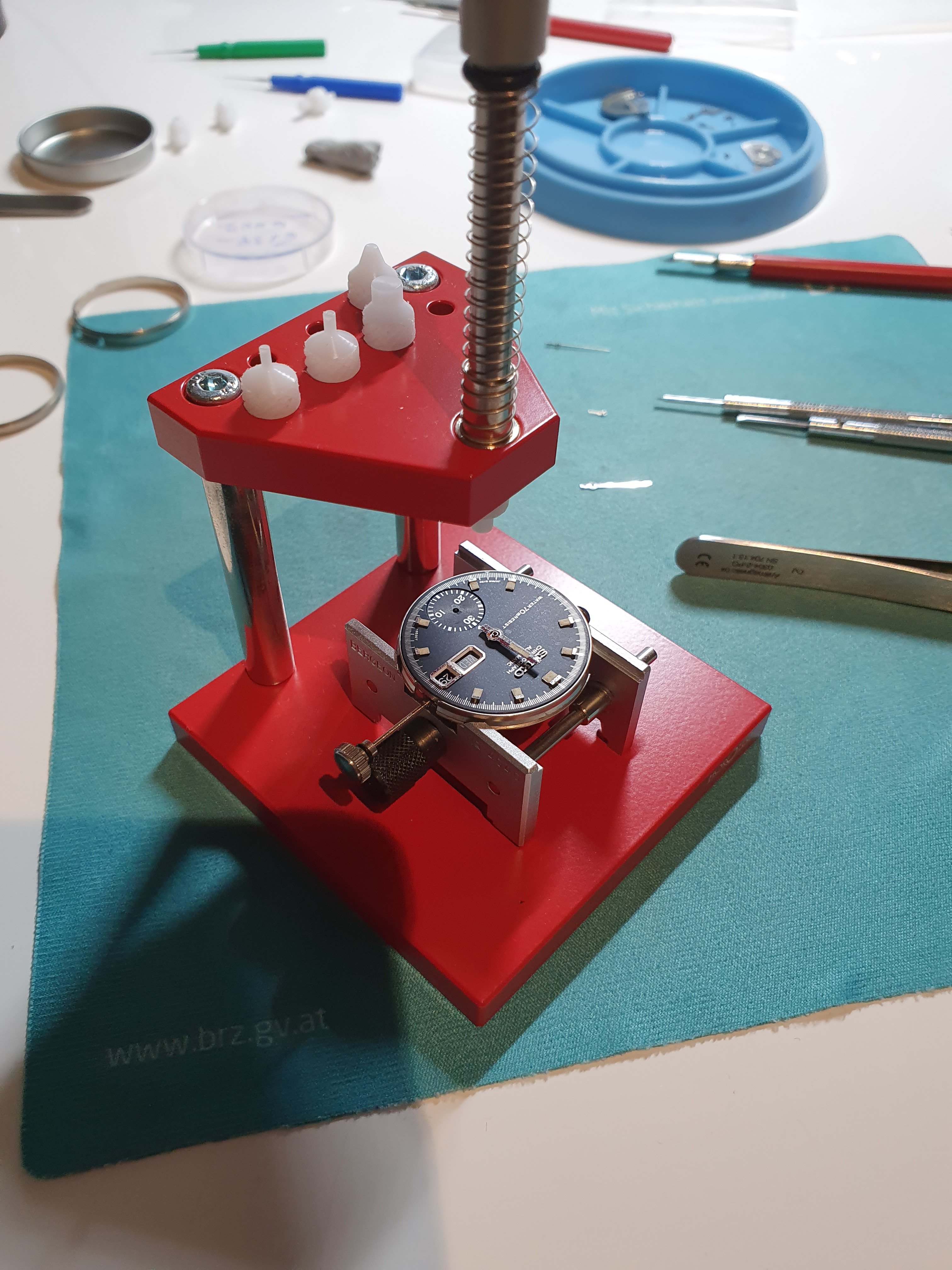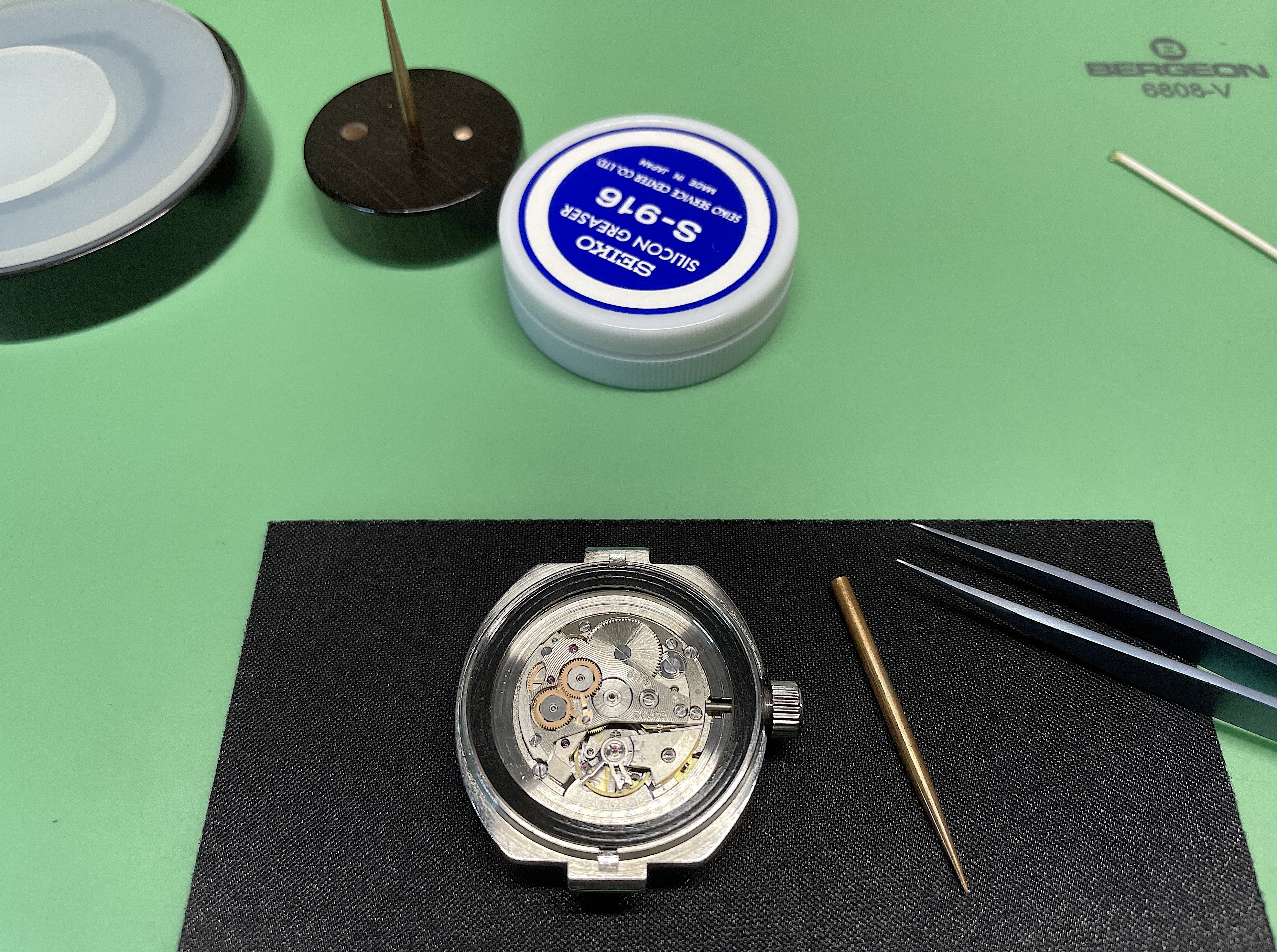 After taking an “as received” photo, I removed the bracelet, took more photos and then went about opening the case.