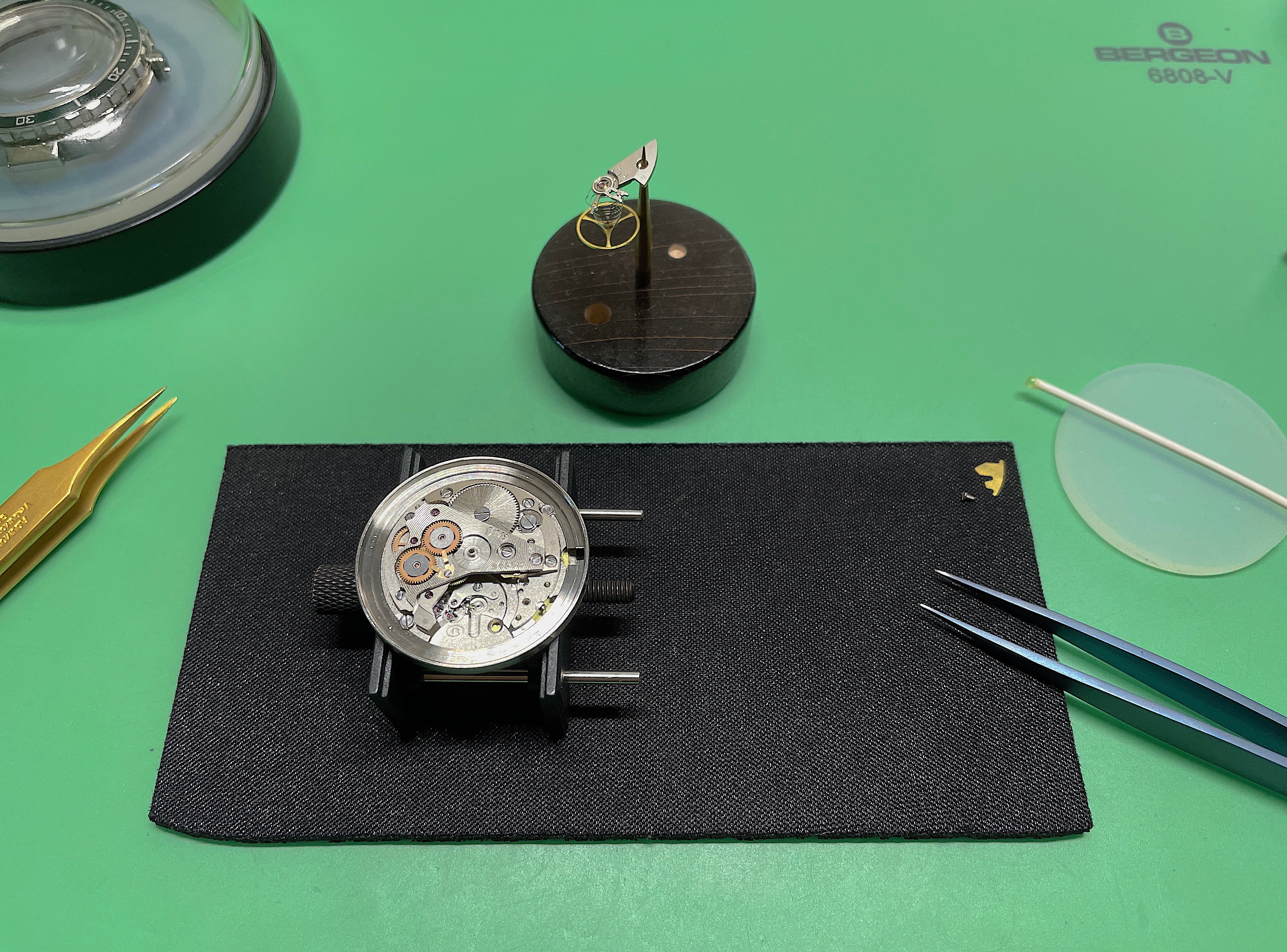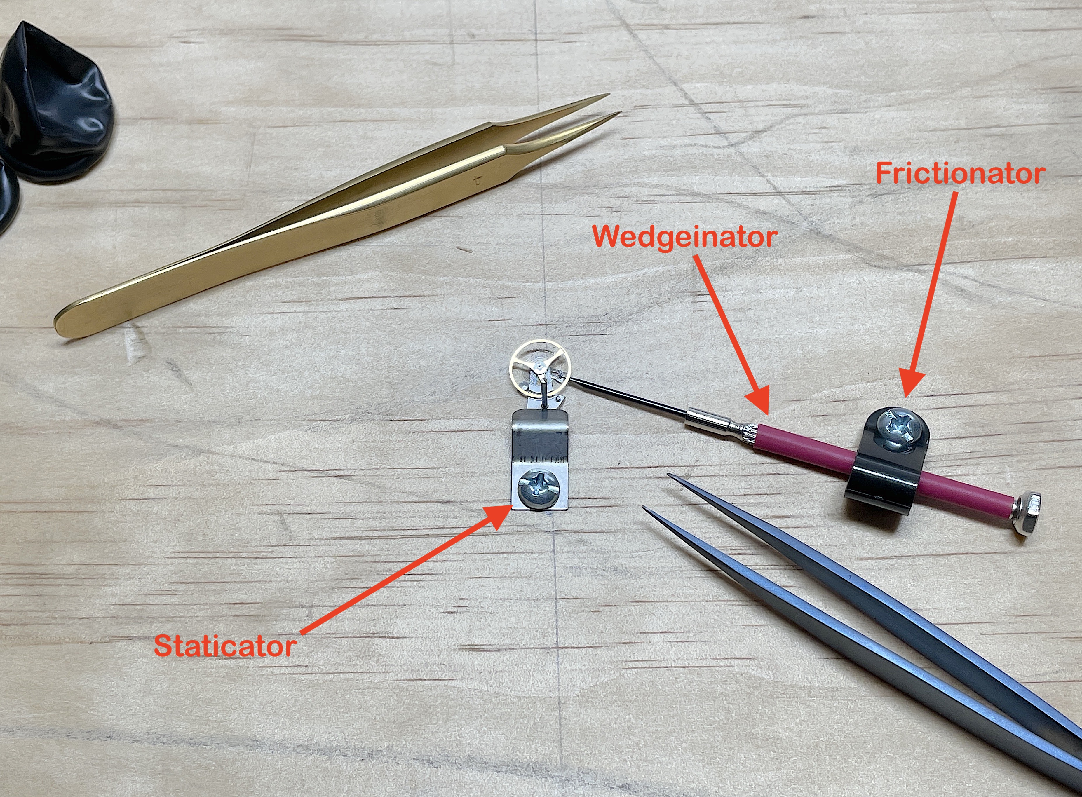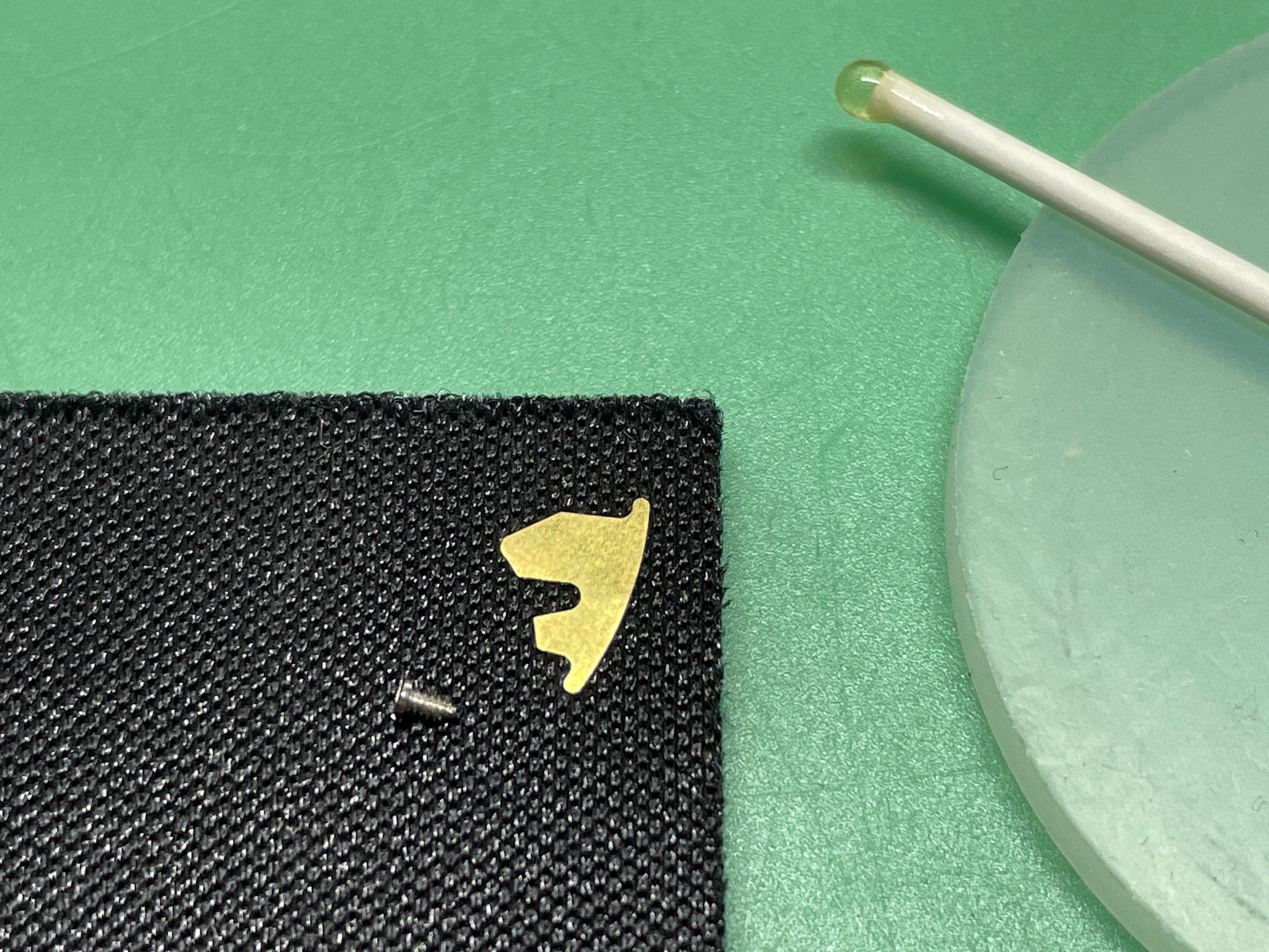 It seemed to be a simple fix, just re-attach the sud to the carrier. However! Those cunning Russkies had a special way of holding the stud in the carrier. Not content with the tried and true method of holding the stud in the carrier by a simple screw used in millions of watches, or even the ETACHRON style system used by many others, this stud is held in a split carrier, so to insert the stud, it’s necessary to (1) open the “jaws” of the carrier and (2) insert the stud into the carrier.