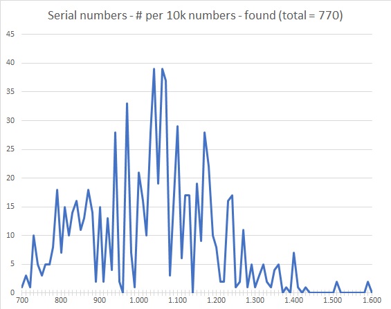 For me one of the more intruiging things about UG is the above and the fact that there hardly any hard numbers about the production of certain references. As some of you know I collected a database with references, serials and movement numbers (and only if these 3 are known). Based on this info it may be possible (or not) ot draw some conclusions. For this thread I used reference 22279 because this is - I think - a reference with a relatively high production and a relatively high number of survivors.