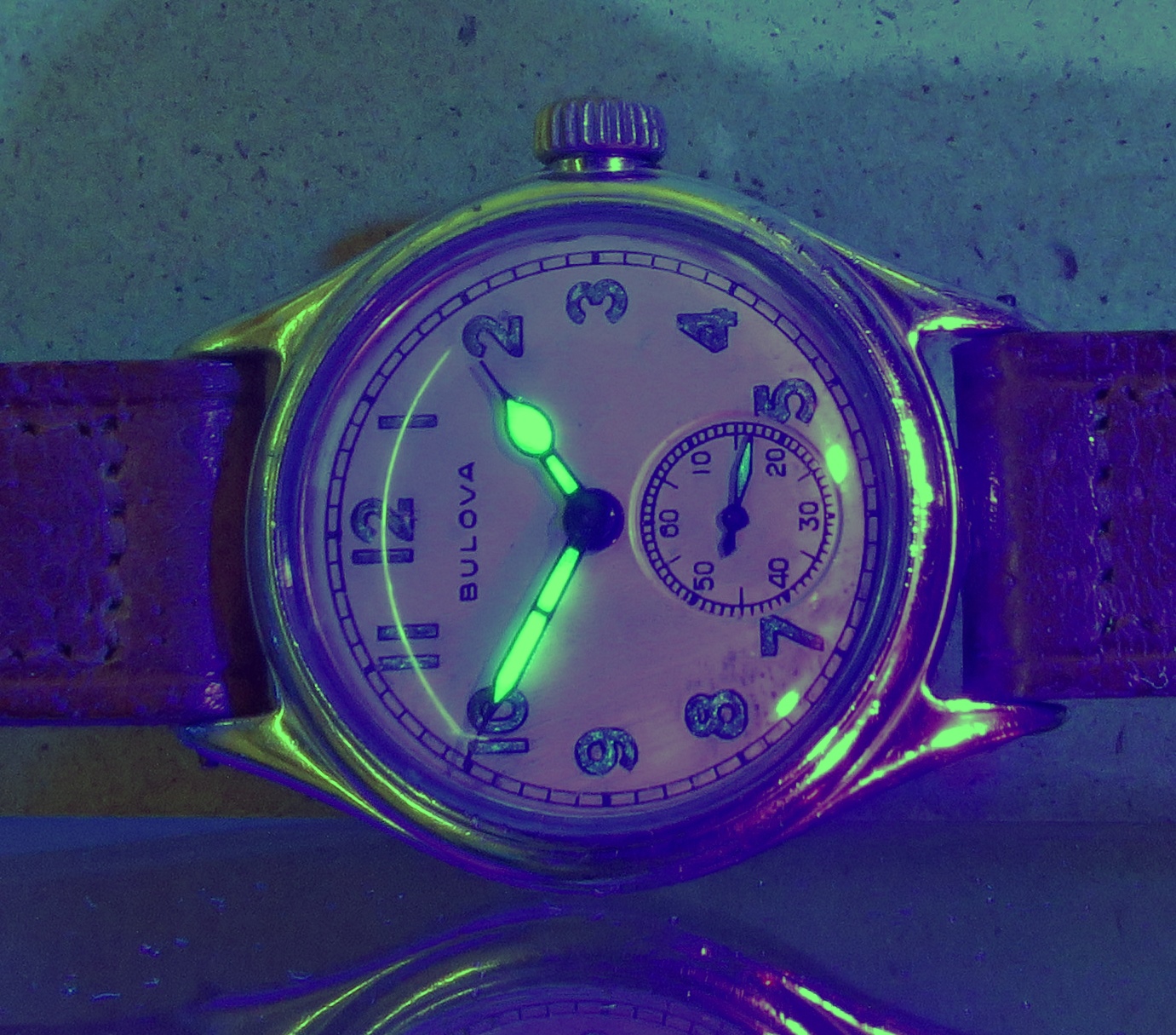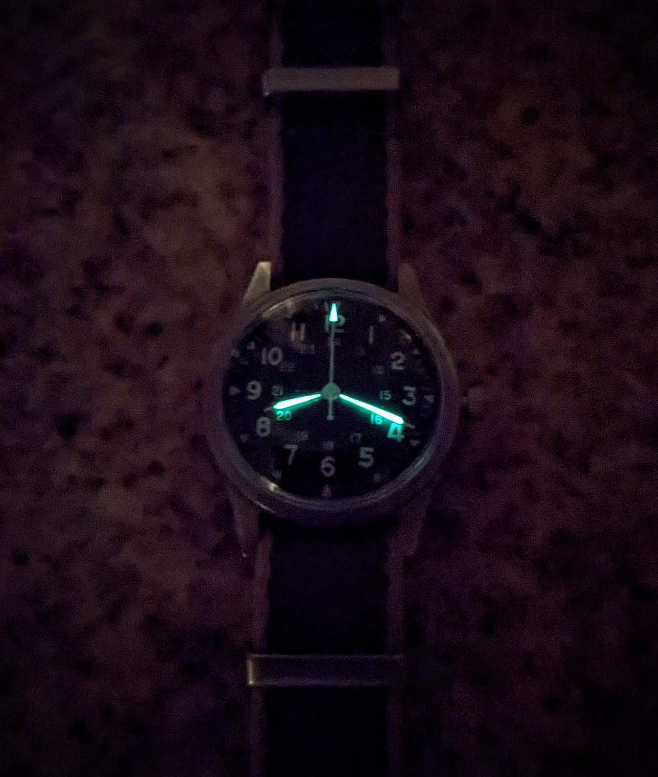 From the factory, the hands were lumed but the dial was not, but then at some point in its past the watch had lume added to the dial. See this a lot in this vintage of service watch, & looks like a pretty amateur application in this example, 6 gets a double helping & 5 gets nothing...
