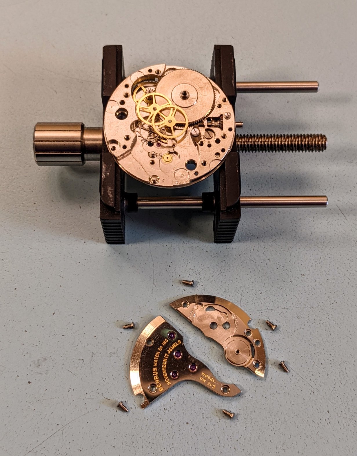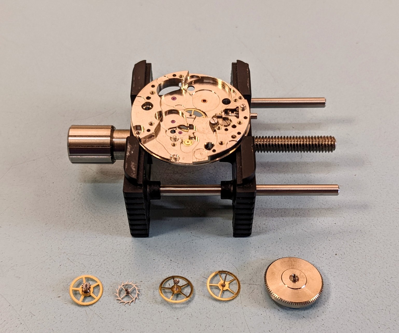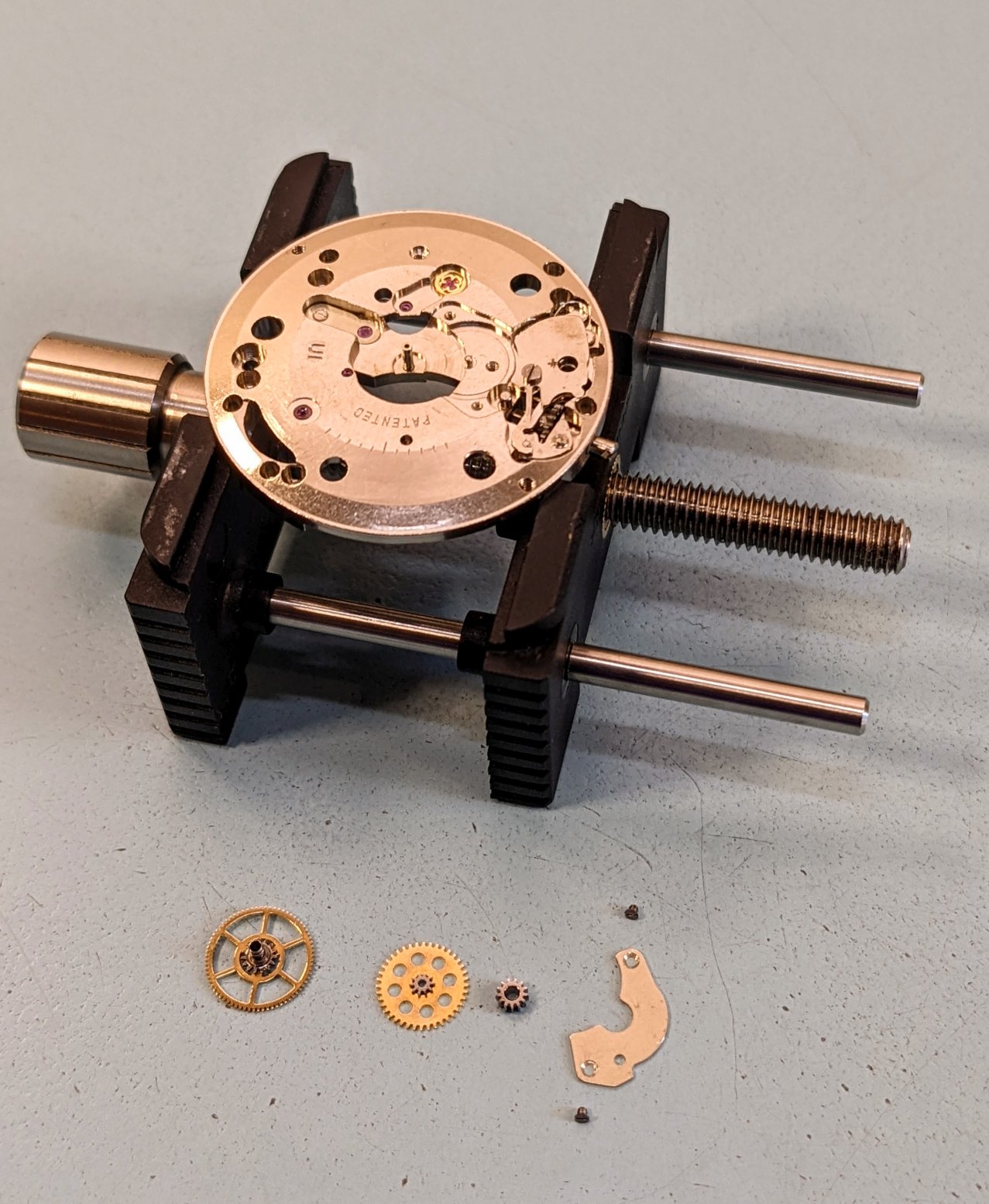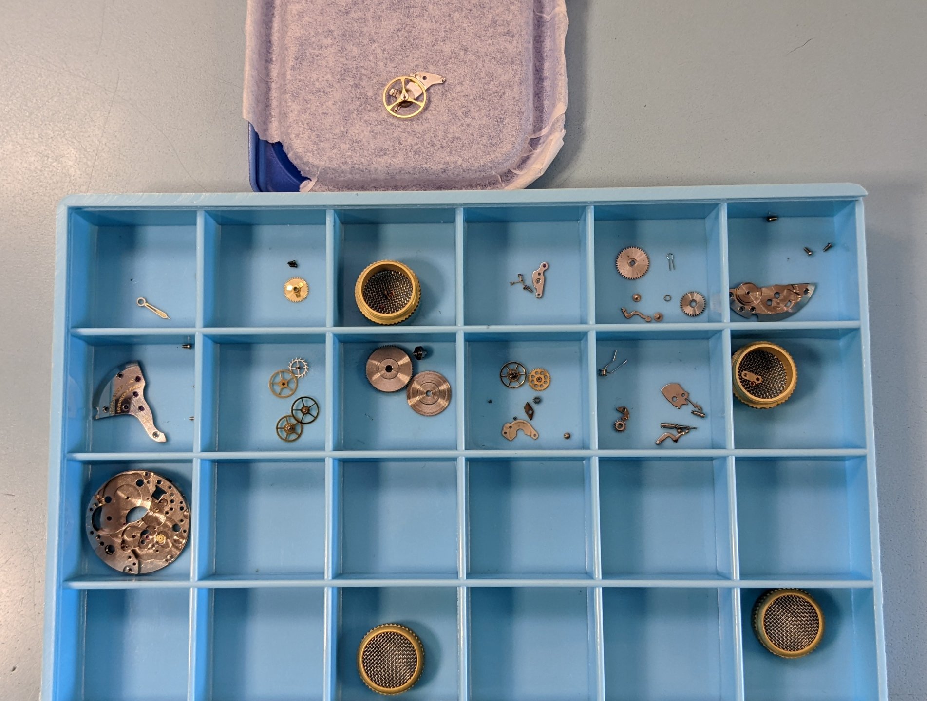 Fundamentally it's a pretty basic watch, 3 hands, hacking, & that's it. Doesn't fill up very many cubbies in the parts tray. Off to the cleaner.