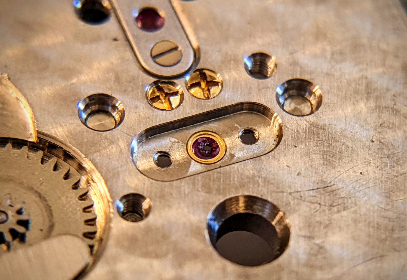 But first, lets see if we can find the broken off end of the pivot down among the lower balance jewel assembly.