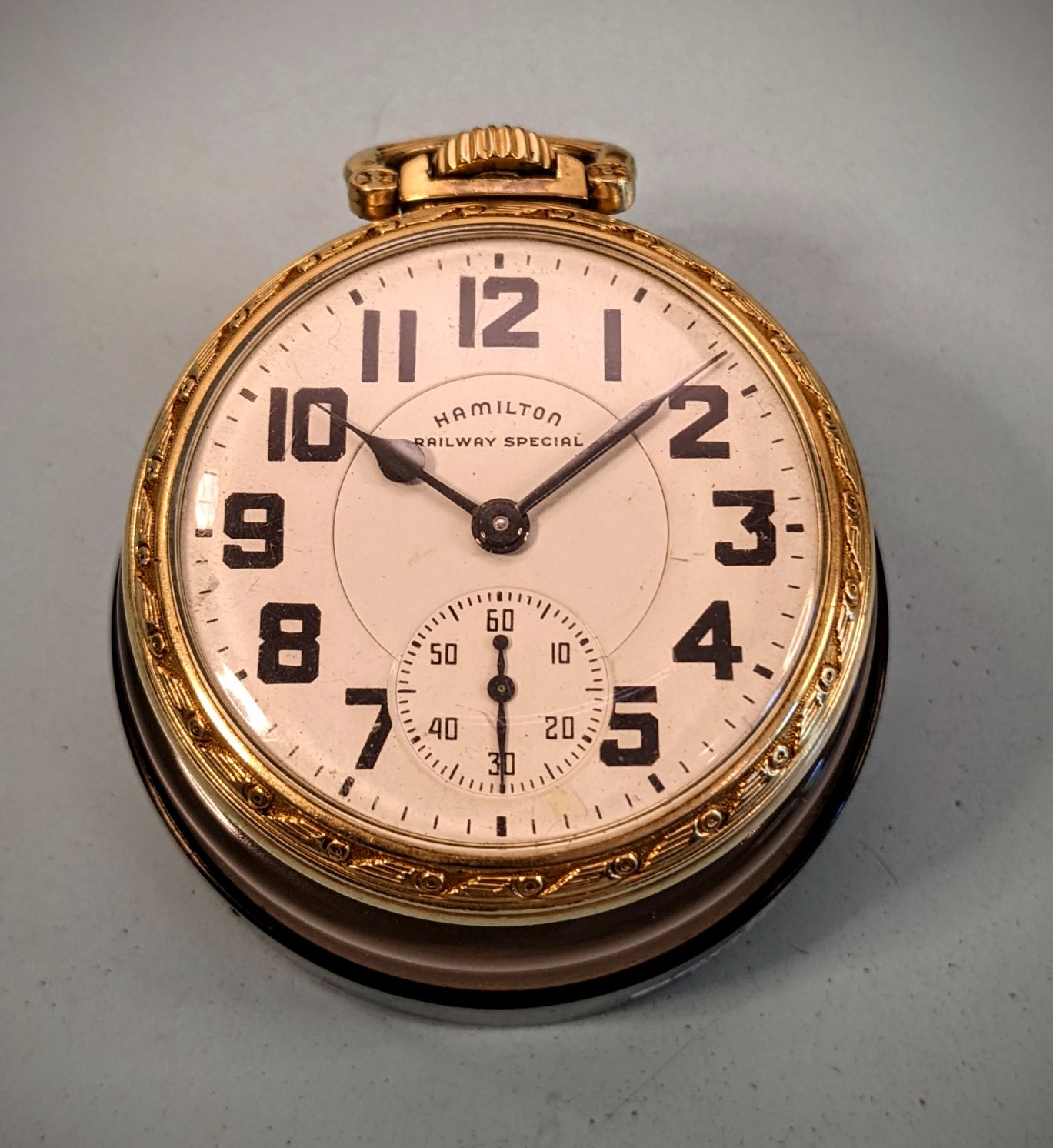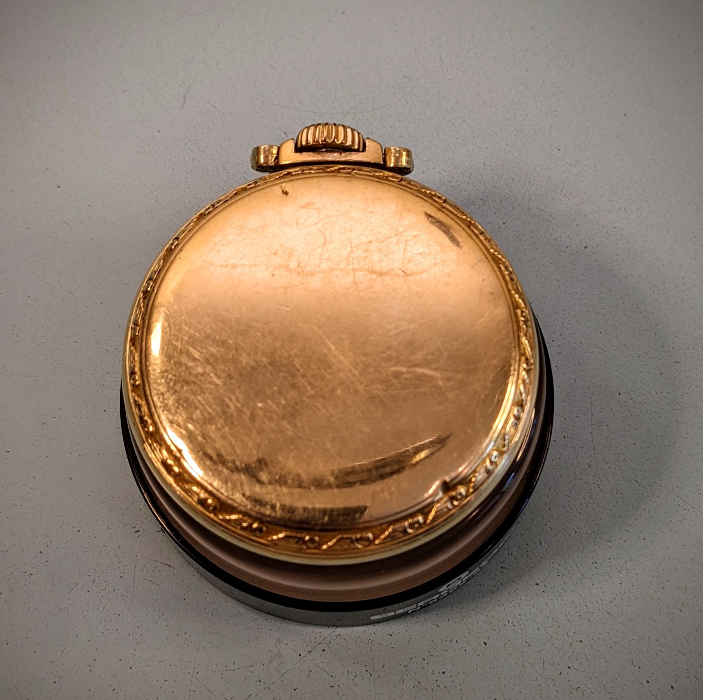 Looks complete, but balance wheel is wobbly, so broken balance staff.