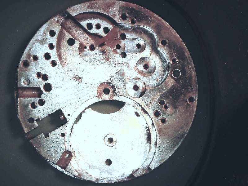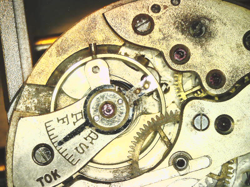 The camera also exaggerates the discoloration, making it look like red rust when to the eye it is dull gray and hardly noticeable. The only way to truly fix this would be to polish the plating off the movement and re plate it. Much more work than it is worth. The watch does have a history, even if that history was 40 or 50 years in a rusty tin can. (I probably have owned it at least 25 years in that state.)