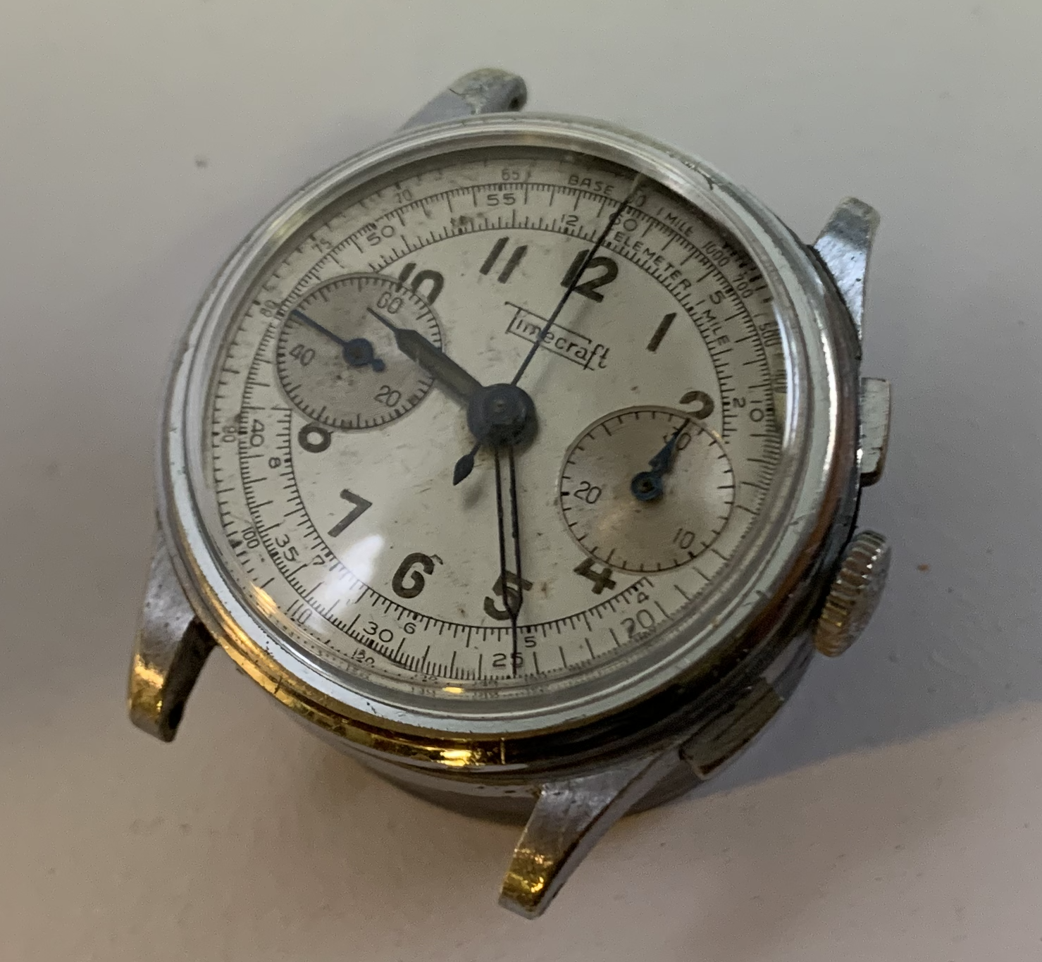 MEPA is a curious one. It was finding this case back that also lead me to finding more Elgin A11 parts, and where I truly went down the rabbit hole. Someone engraved with something like a dremel roto tool in crude scripts the words Modera Co Swiss onto the case back. This back does seem to fit one of the case cores. What is curious is someone engraved the same writing onto the chronograph bridge with the same sloppy engraving. There is no import code. I suspect this watch will get it's own thread sometime in the distant future.