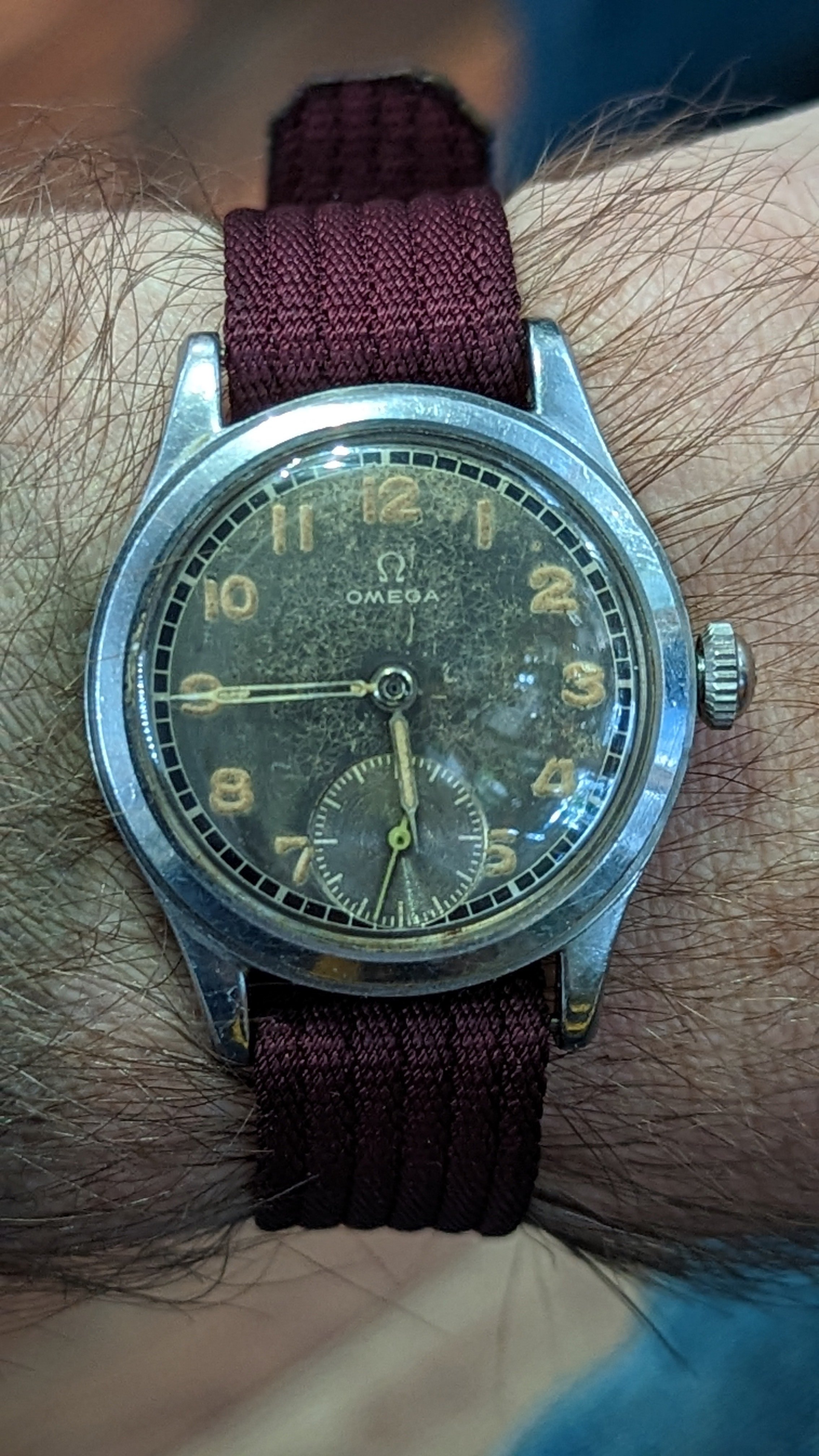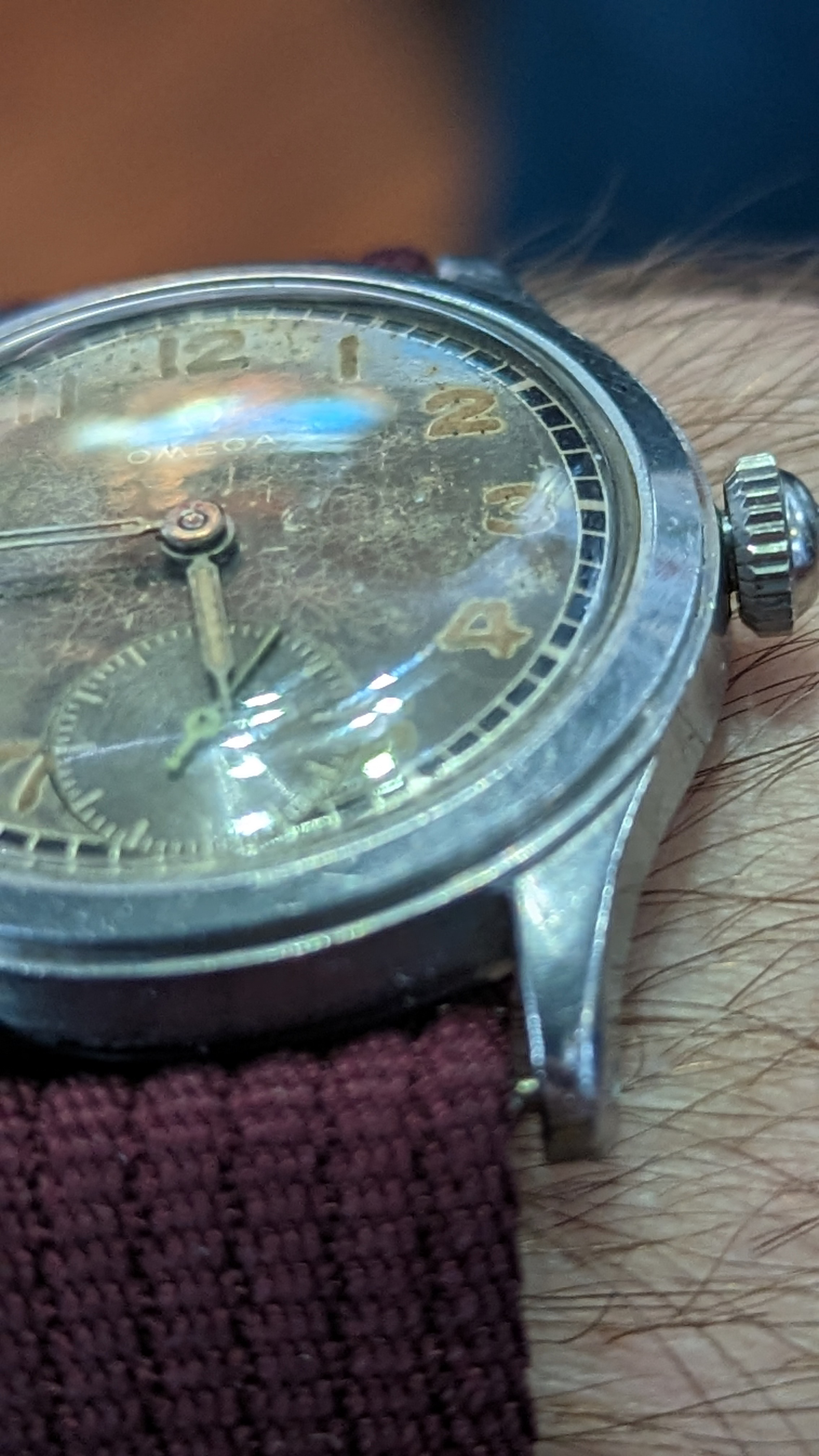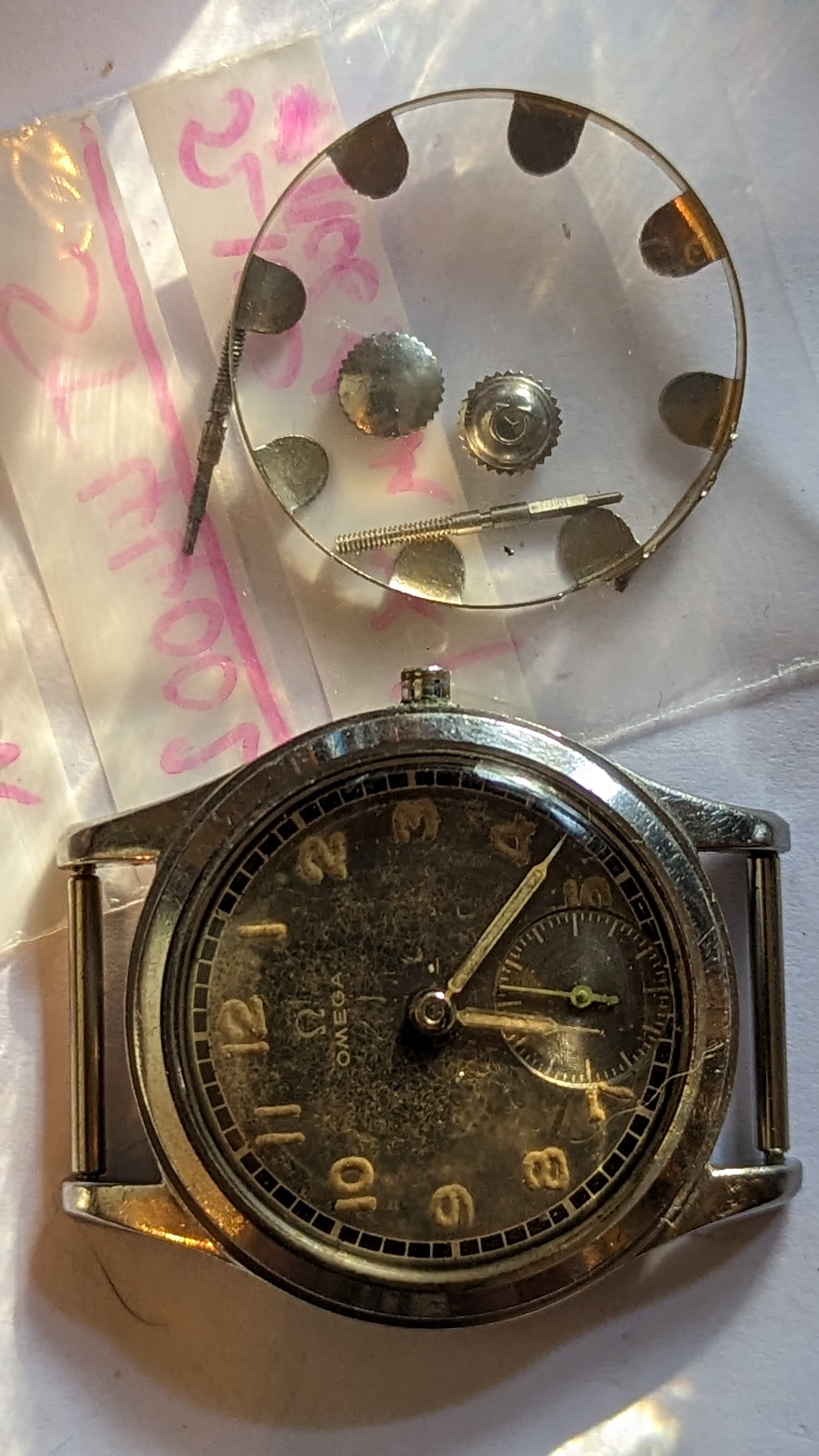 Of course it wouldn't be a project without something dumb happening to the n00b though. I flipped over the case after I took out the stem, and naturally it landed on my lap, tweaking the minute hand and crumbling some of the lume out. I cleaned it up and washed, but of course now I need to remove it all or redo this.