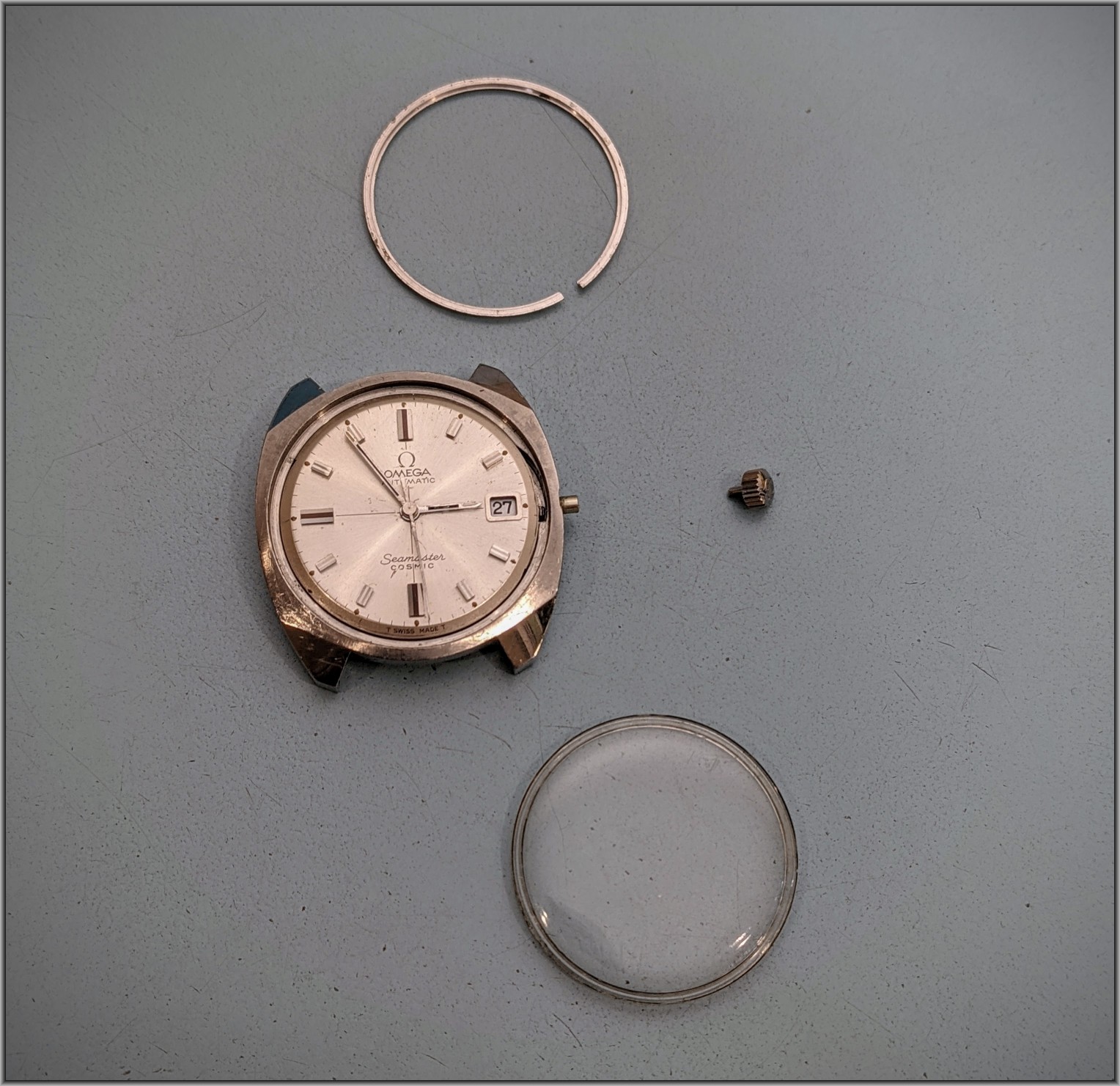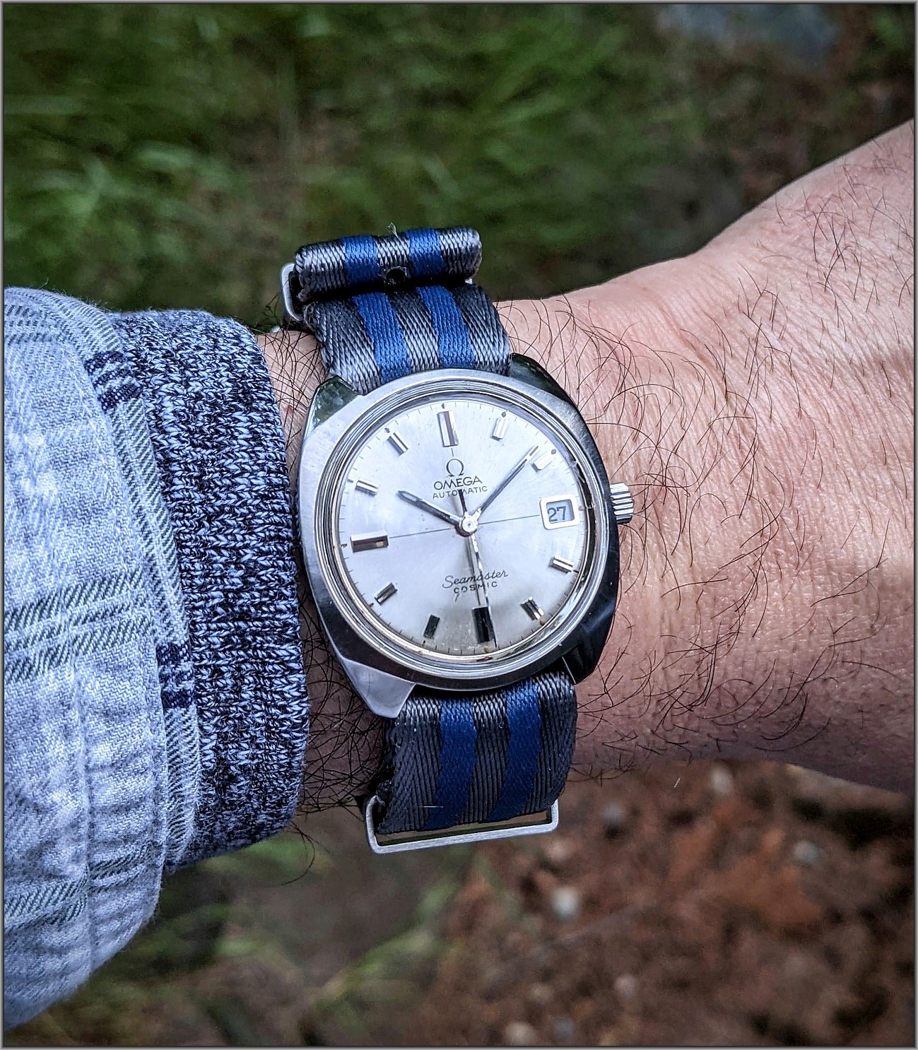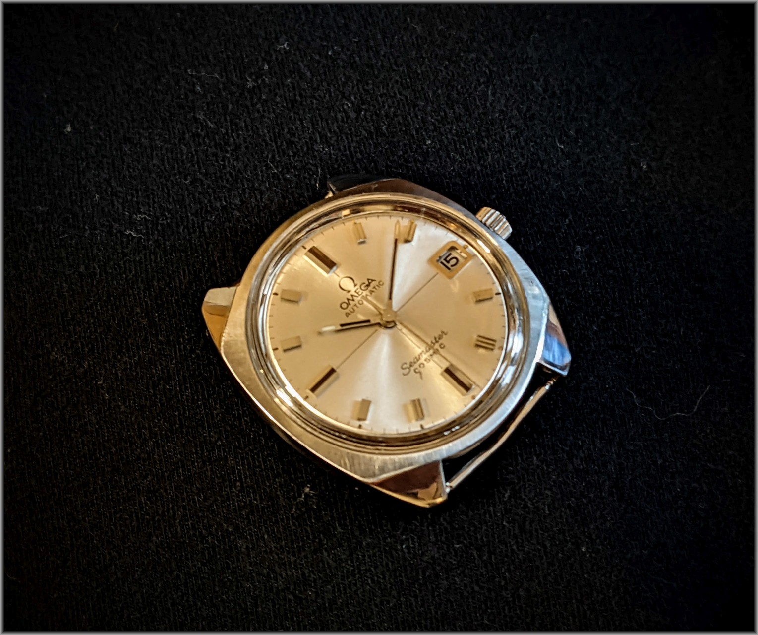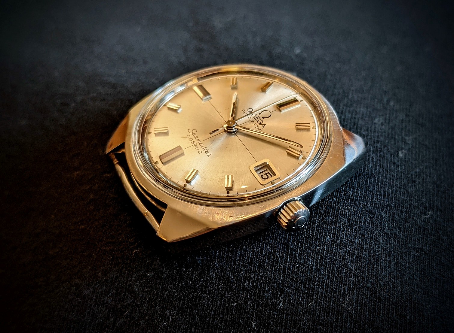 ·Seamaster Cosmic cal 565, c.1970. A "modern" 1970's vibe on the outside with a very traditional watch on the inside. I like the faceted case shape (reminds me a little bit of the modern Seiko Samurai).