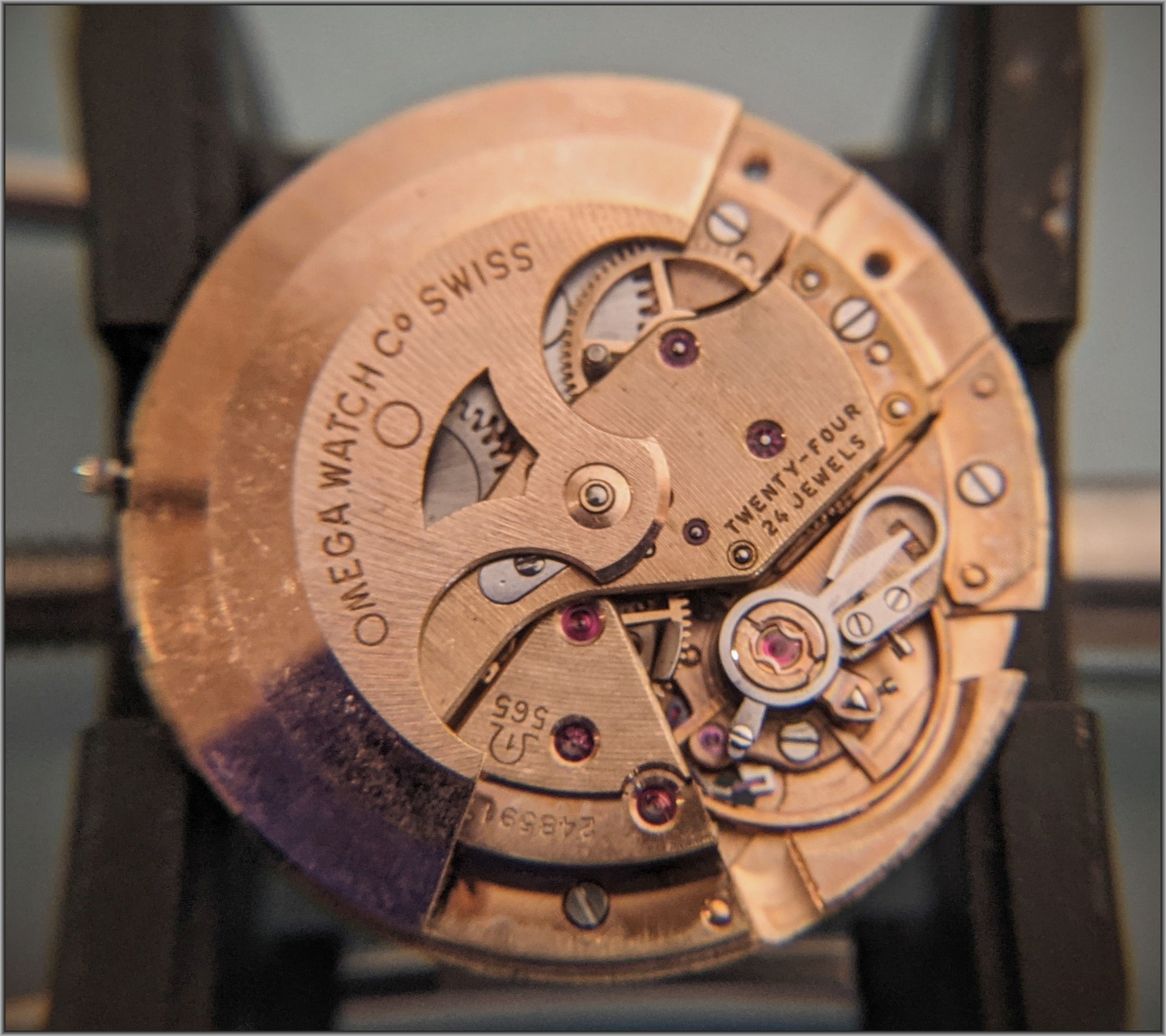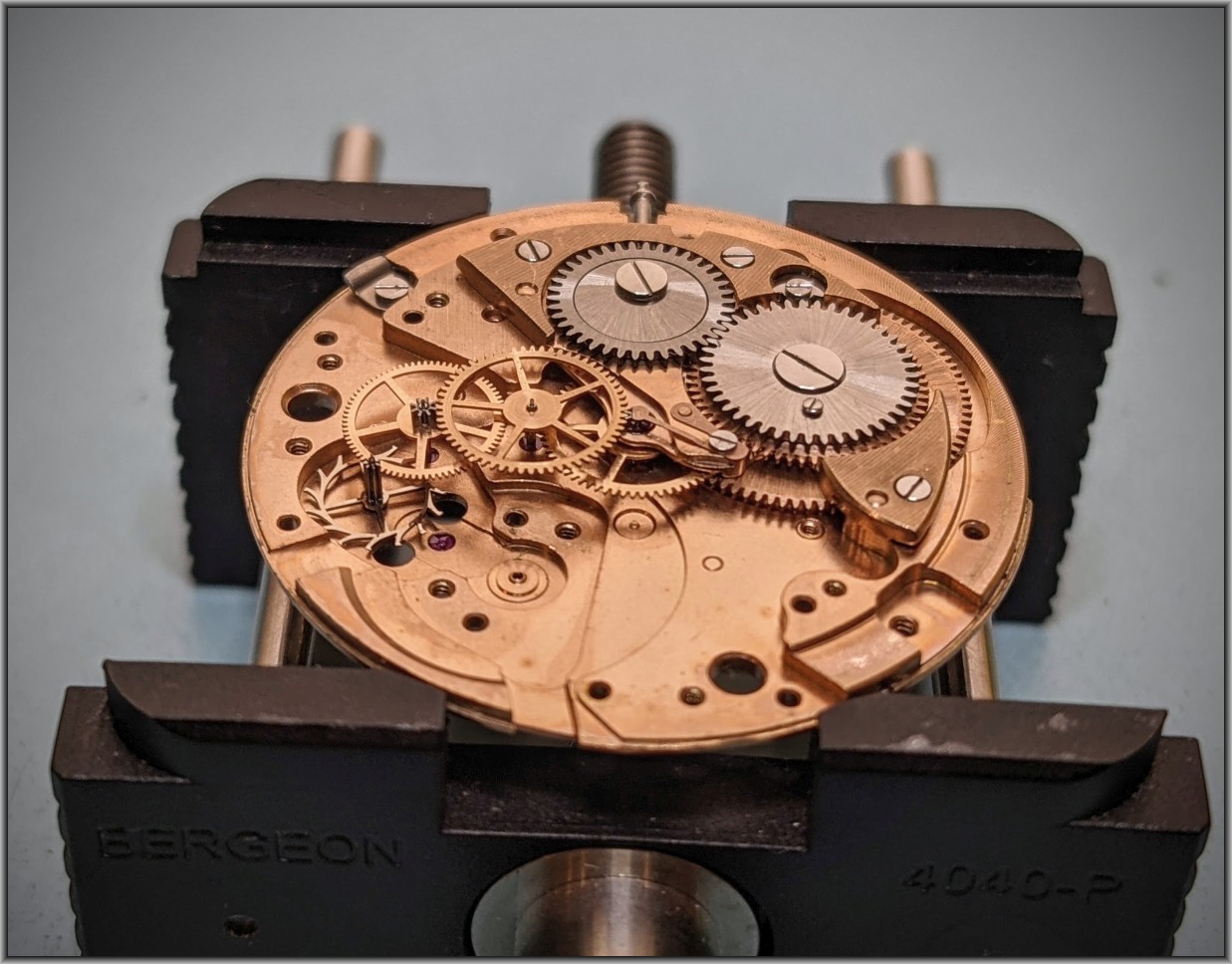 Watchmaker side of the movement (if you have sharp eyes, you can spot the beginnings of the winding / running problems…).