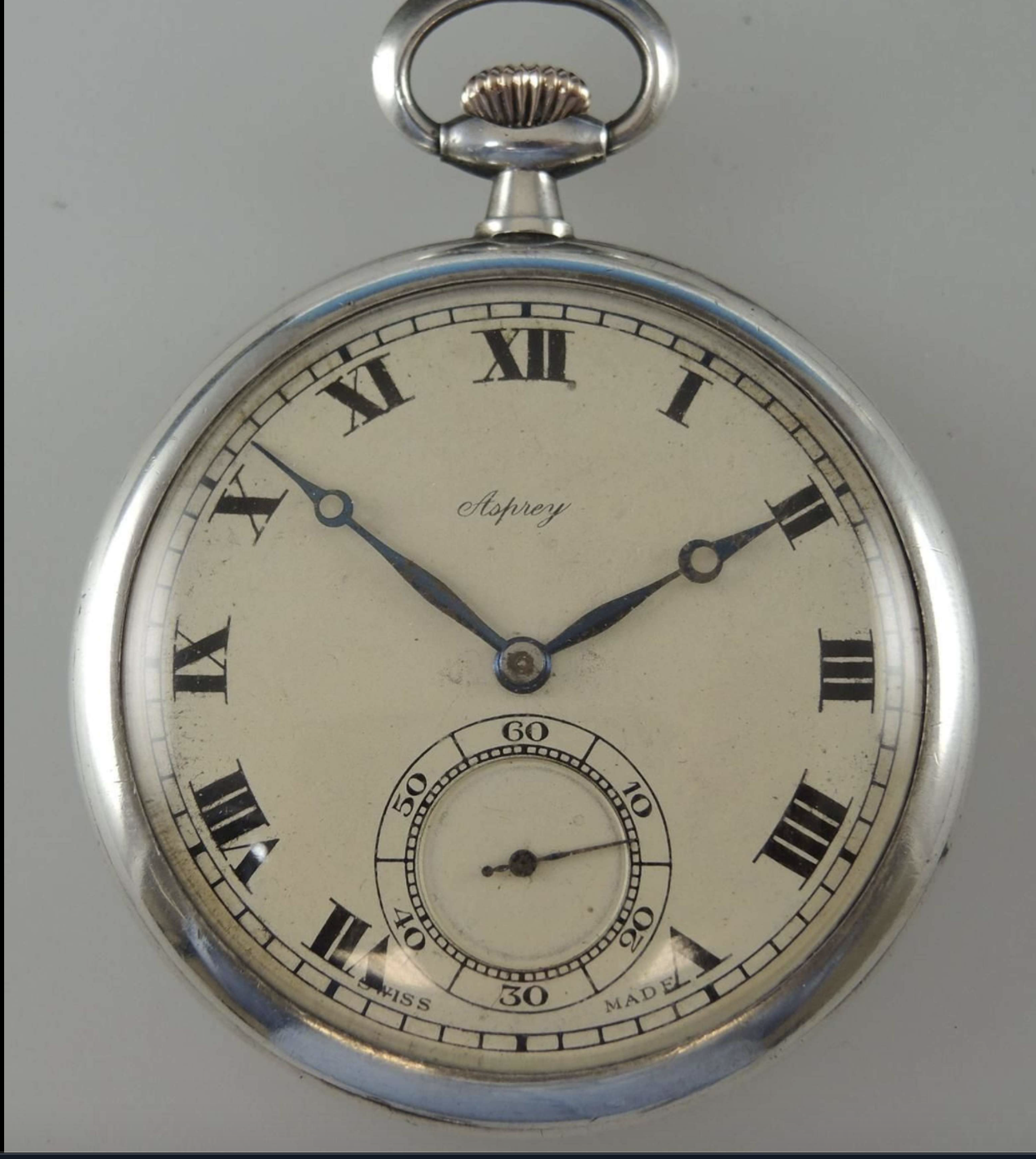 And here are two pocket watches with highly similar dials and subseconds hands, but with different cases, crowns, and hour/minute hands.