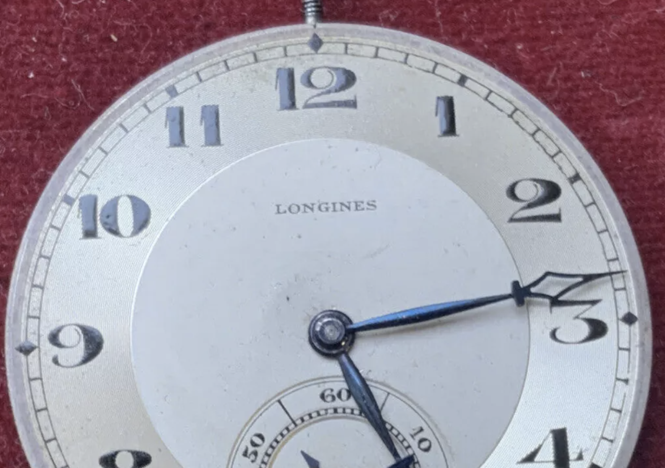 What about the strange 24 hour ring? Typically, you don't see indexes cross the through the subdial. DirtyDozen12 gave me some interesting examples of other early Longines dials with "crude" 24 hour markers that go through. This is by no means strong evidence. But it shows that Longines was willing to break through the sacred subdial.