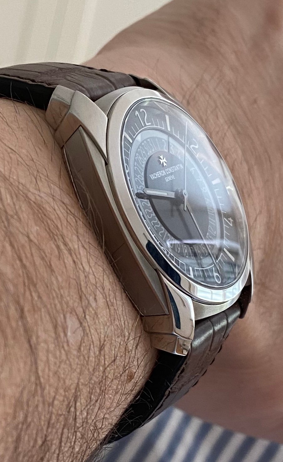 In addition to the design of the shapes, Vacheron Constantin naturally convinces with the play between the different surface treatments and the transitions. The side flanks are beautifully designed to kneel down and due to the relatively short lugs, the watch nestles amazingly elegantly on my wrist despite its 41mm. And if the advantages of stainless steel combine aesthetically with the quality of design and workmanship, then I could just celebrate it for hours.
