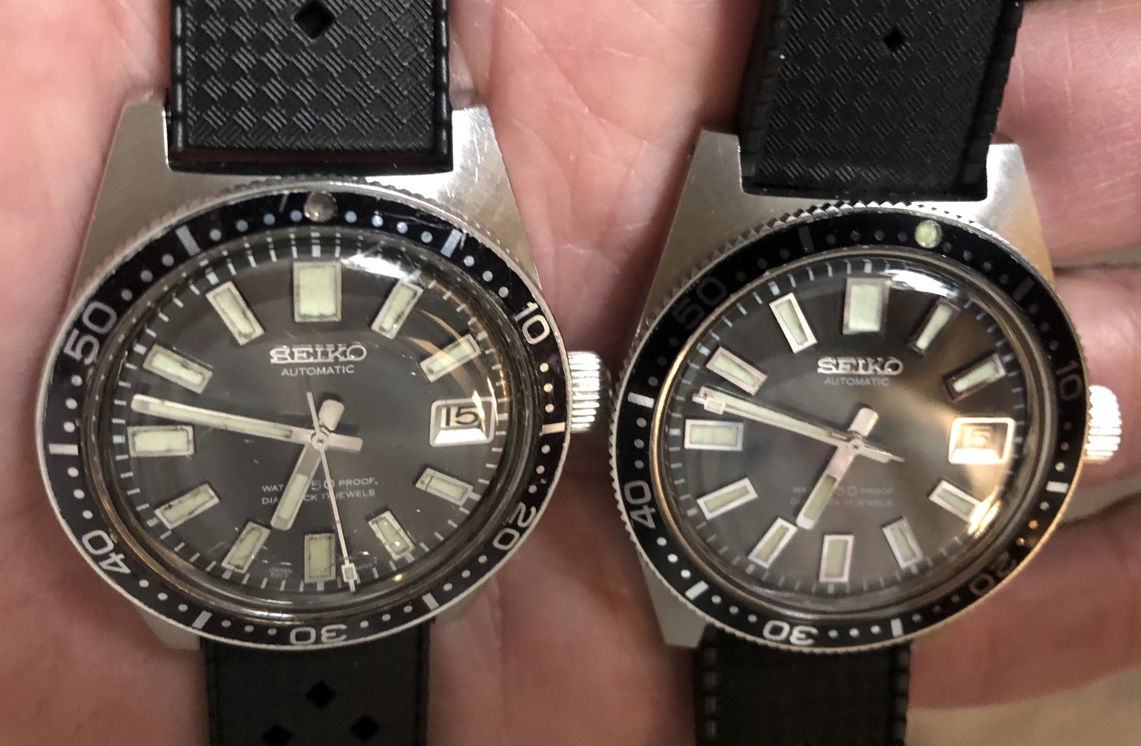 The solution was obvious in retrospect ... buy another example that is good enough to enjoy, but not too good. Mission accomplished. A few marks on the dial markers, a scratch or two on the bezel, swirls on the lugs, minor polishing. Perfect for wearing! As a little bonus, the wearer came with its original waffle strap, but I've already removed it to save for posterity. 😝