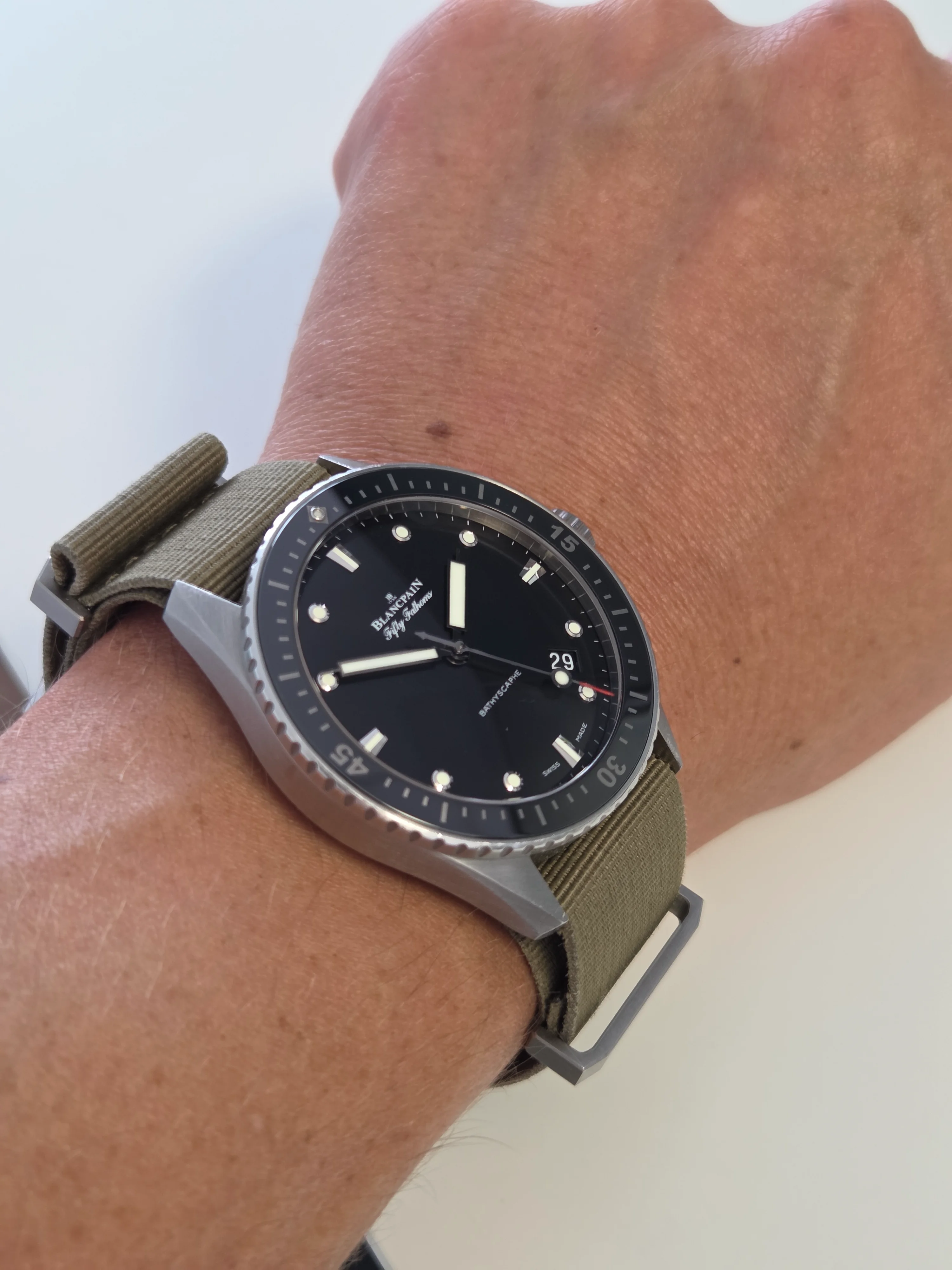 The Fifty Fathoms is the one diver I've never owned that I've always wanted, especially on the X71 bracelet which is still the most comfortable watch bracelet I've ever tried on. The blue looks particularly nice, very subtle but elegant.