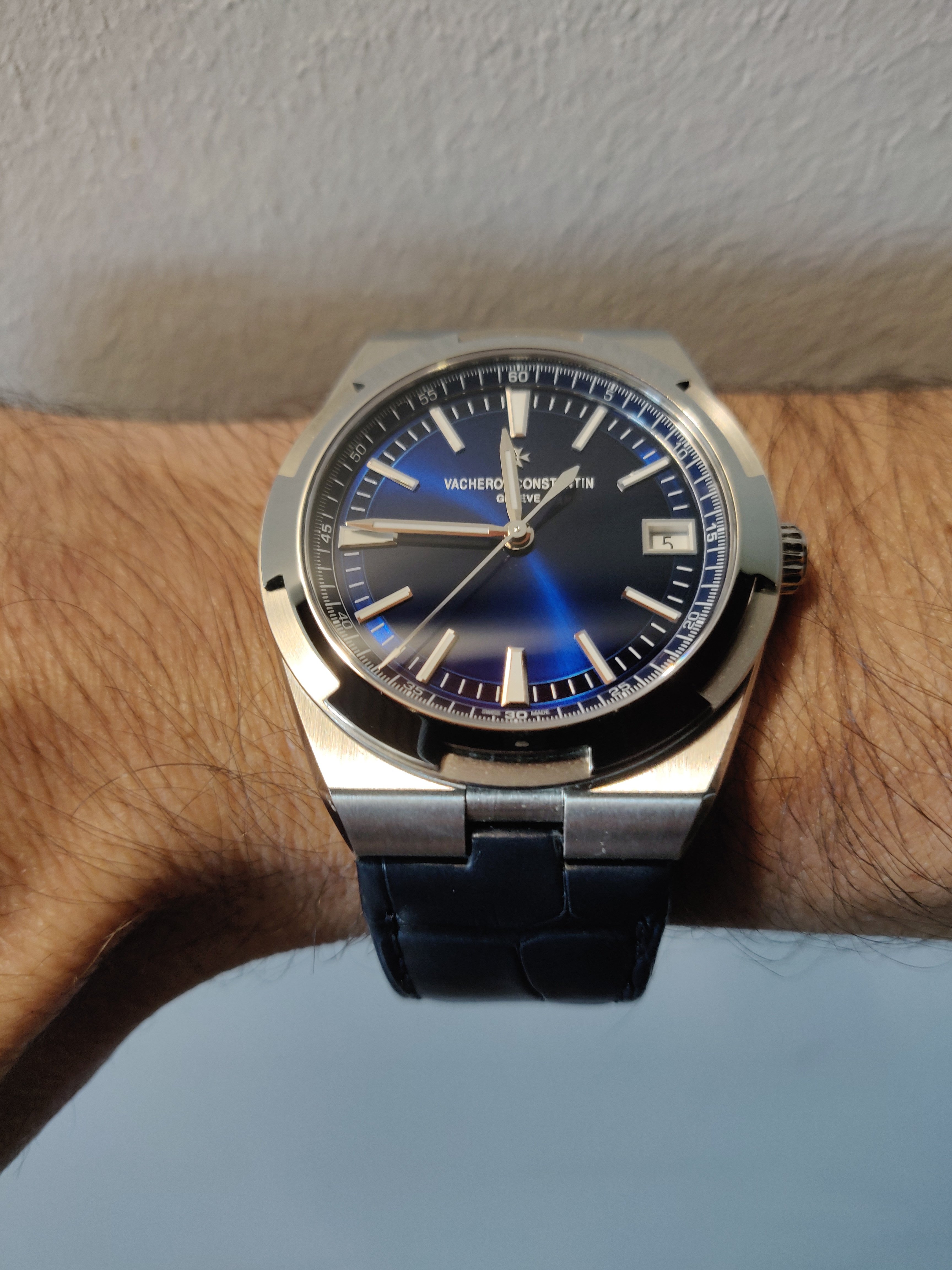 The overseas is amazing with its versatile strap swap but just as the royal oak or nautilus would be a bit goofy on a leather/crocodile the overseas is best worn on bracelet or rubber IMO.