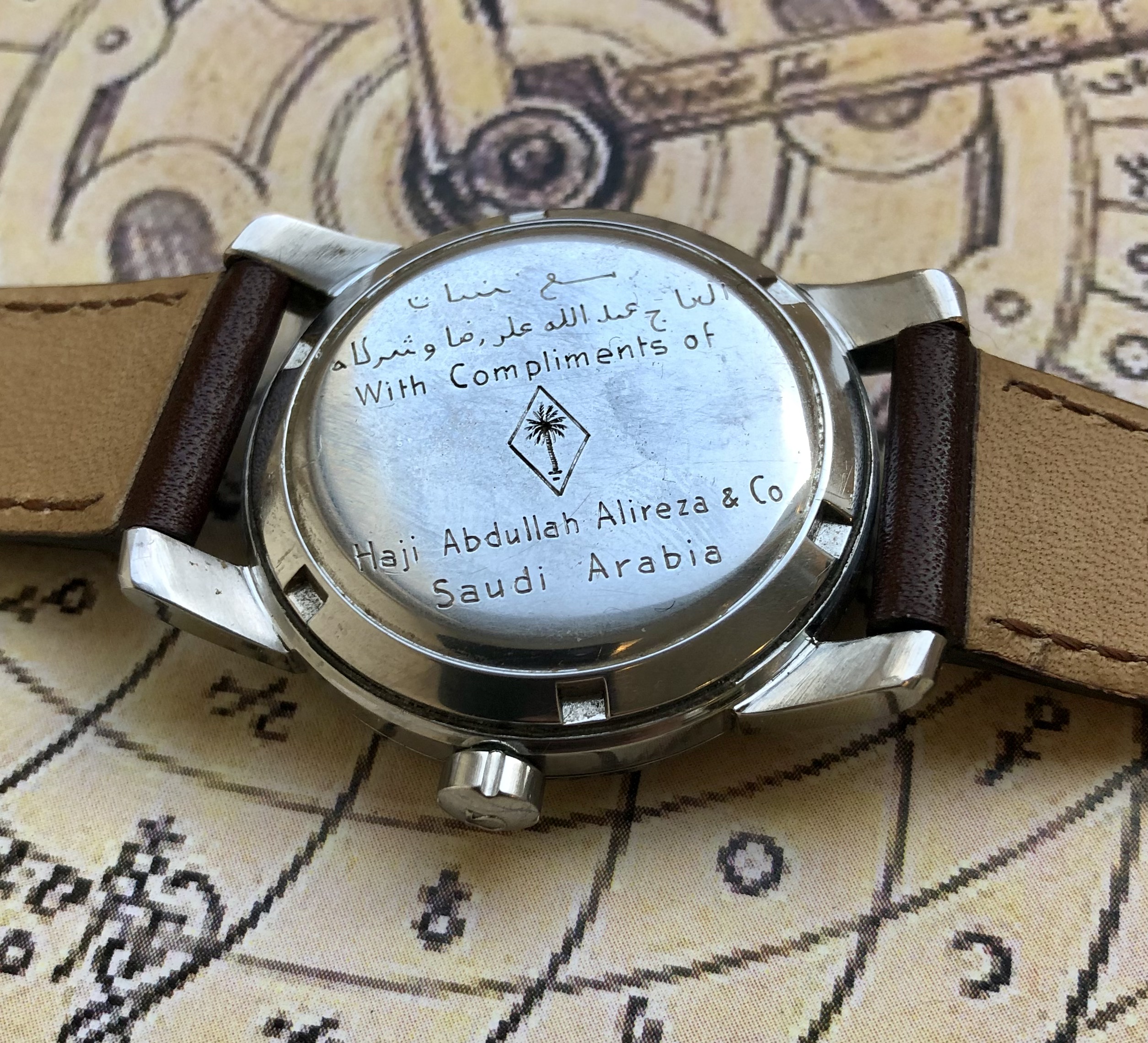 I know that many don't like personalized engravings on the caseback. However, in this case I think it's very well executed and is an integral part of the story of this watch and its original owner. According to the seller, his grandfather worked as a technician at this Saudi conglomerate for 10 years and was gifted this watch as a recognition for his service.