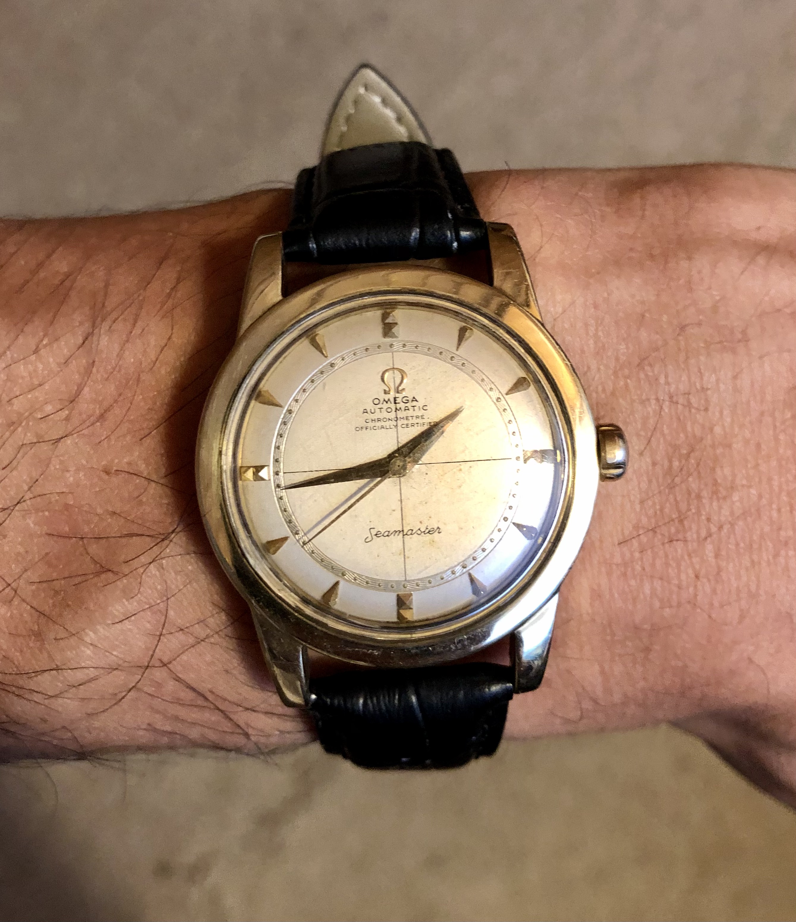 It's getting harder and harder to find these 1950s Seamaster Chronometres in such impeccable condition.