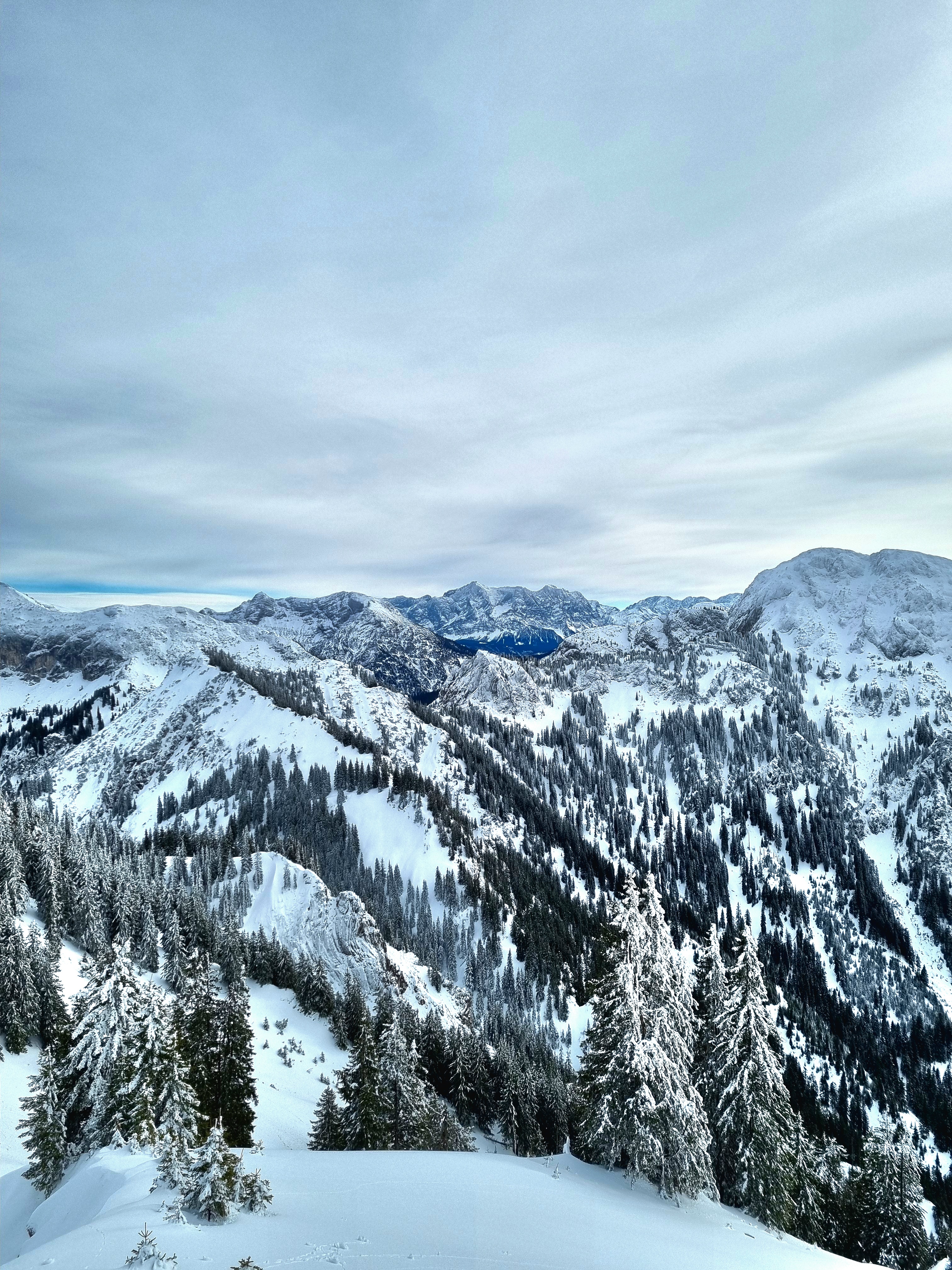 interestingly, I am having a winter holiday on the other side of the mountains... Today it was also sunny here on the bavarian part so we went to the top of Mount Tegel, near the river Lech. The peak on the middle is Zugspitze and from there and beyond it is austrian country.