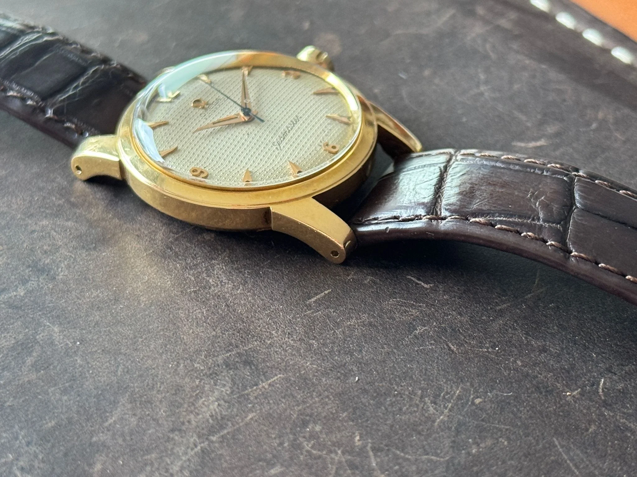 I purchased this Omega Seamaster with hobnail dial from Matthias (MtV). It is a beautiful watch, but unfortunately I rarely wear it, as I am always a bit worried about putting marks or scratches on it.