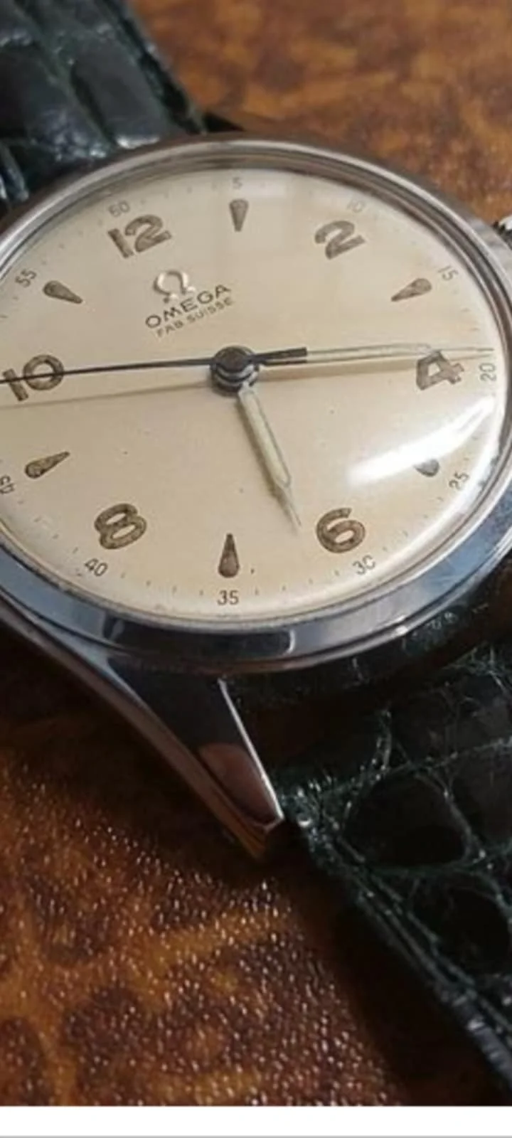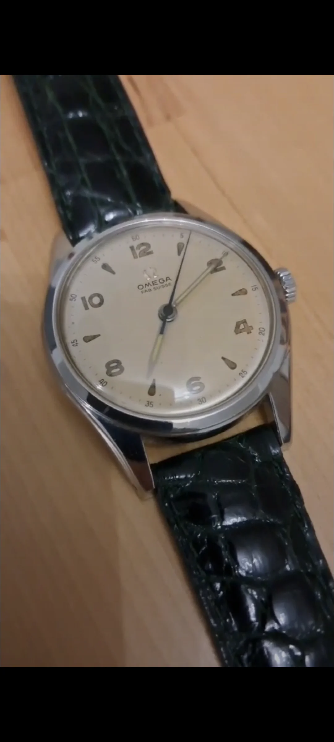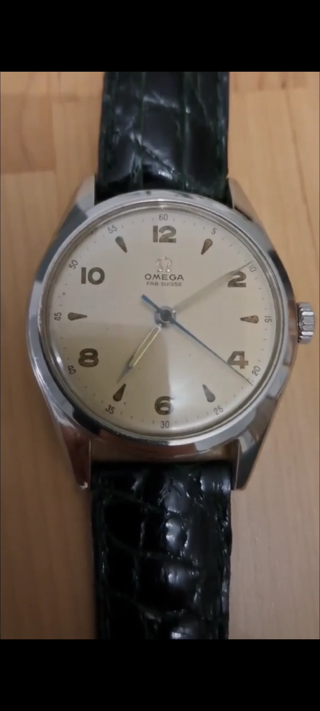 I don't know, I could be wrong. It's hard to be sure because the images are blurry, but I'm just getting a sense that it's not original. Font not looking right for the era, outer track looks funny. With the relumed hands and polished case, it looks very "prepped" and it's just setting off alarms for me. At the very least, I'd need to do more research on it.