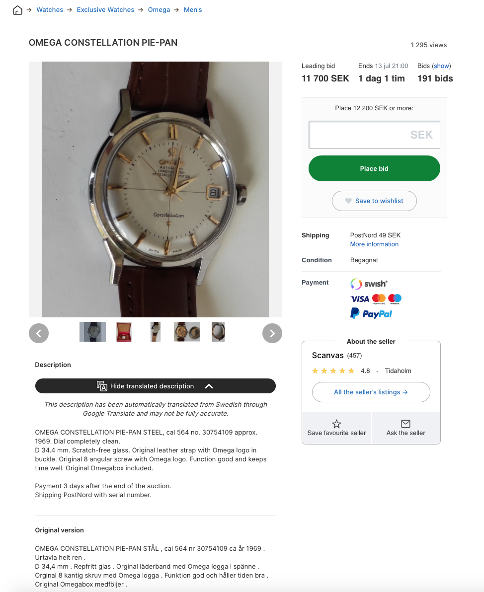 - Yes folks, it´s a redial and this watch is now for sale on Tradera. Look at "Constellation" which is faulty and the fat fonts. The seller can´t do better pictures... Here is the link to the auction on the Swedish site Tradera. Look at the bidding, already 11.700SEK (almost US$ 1.300).