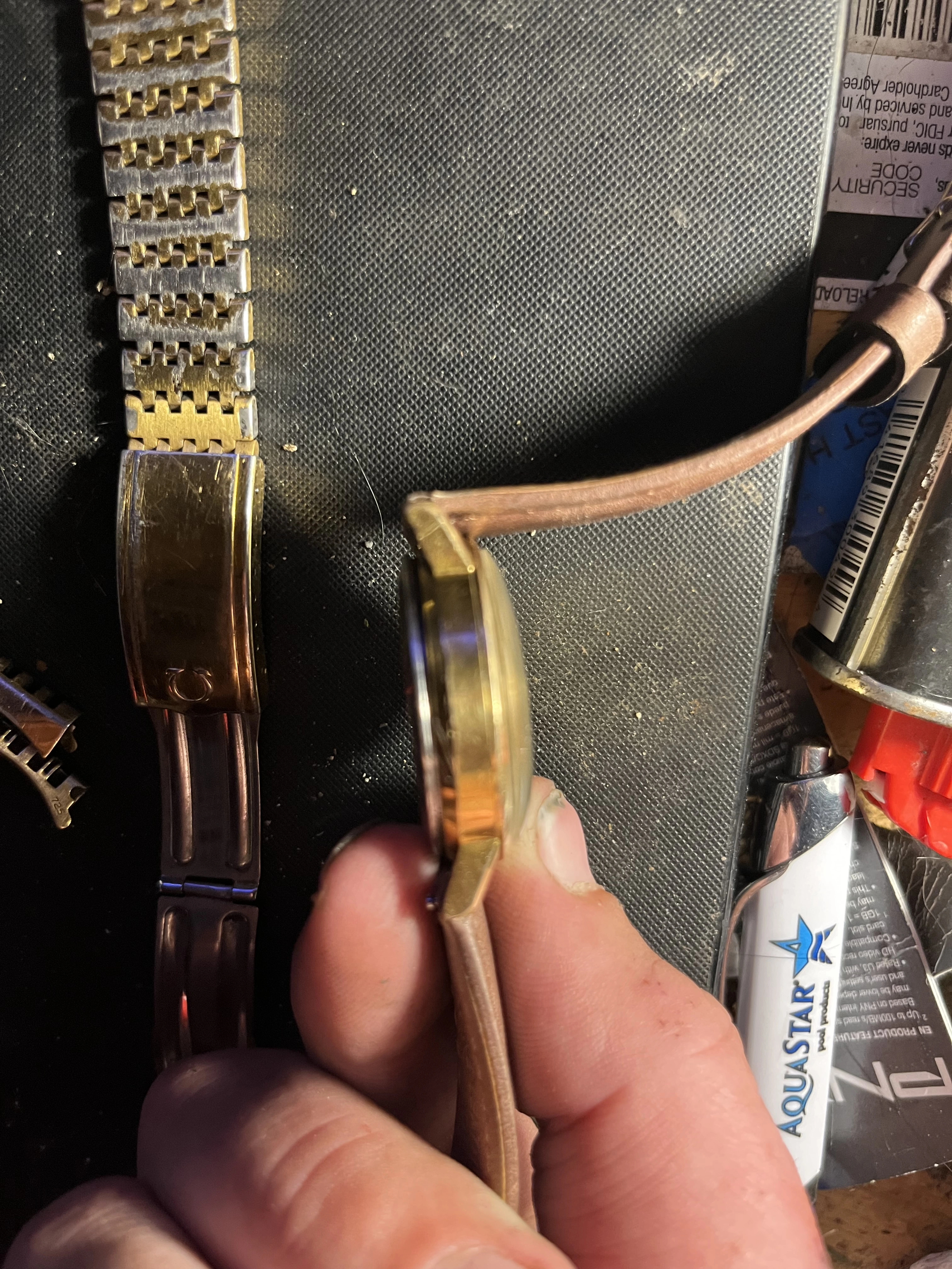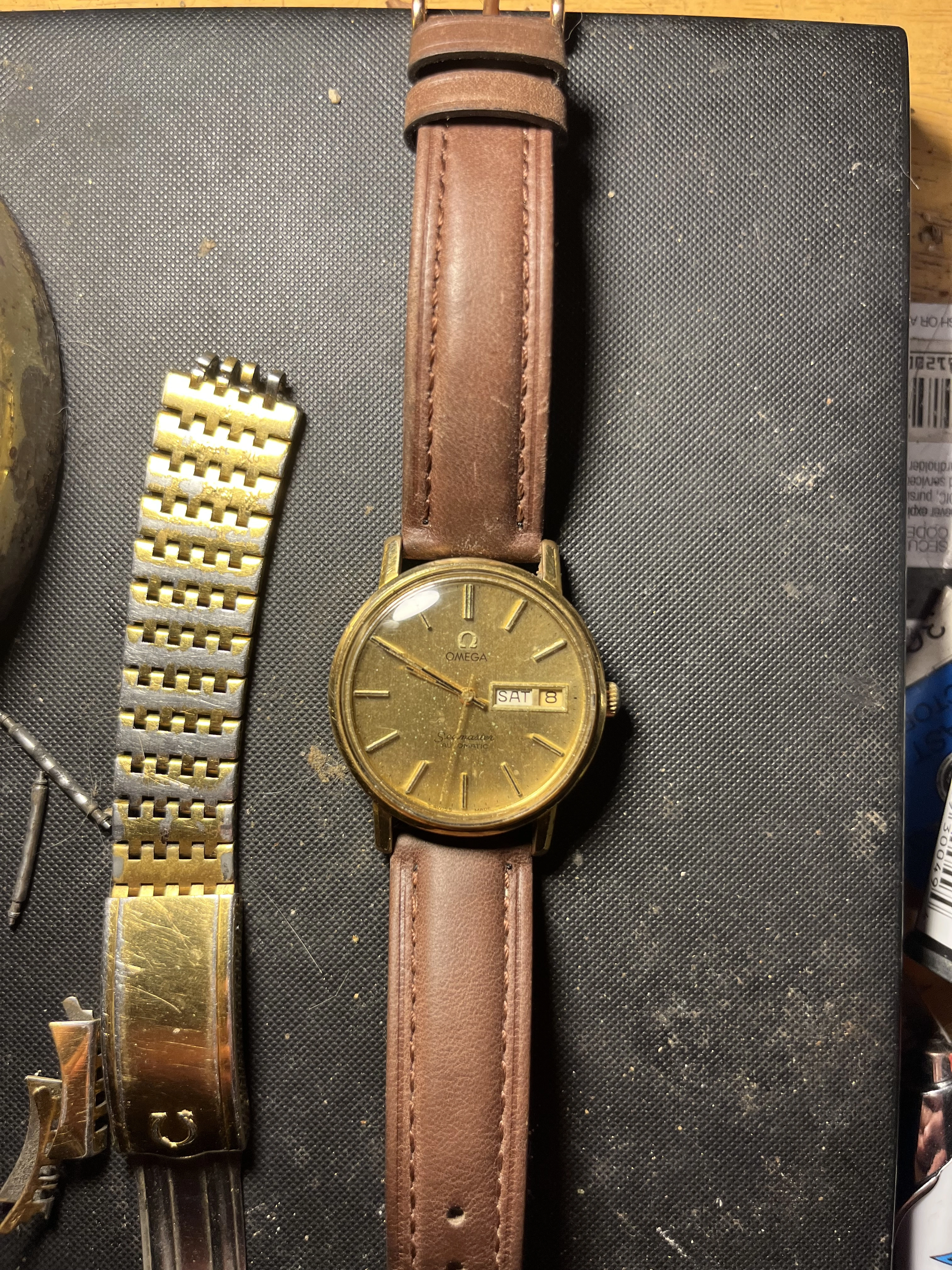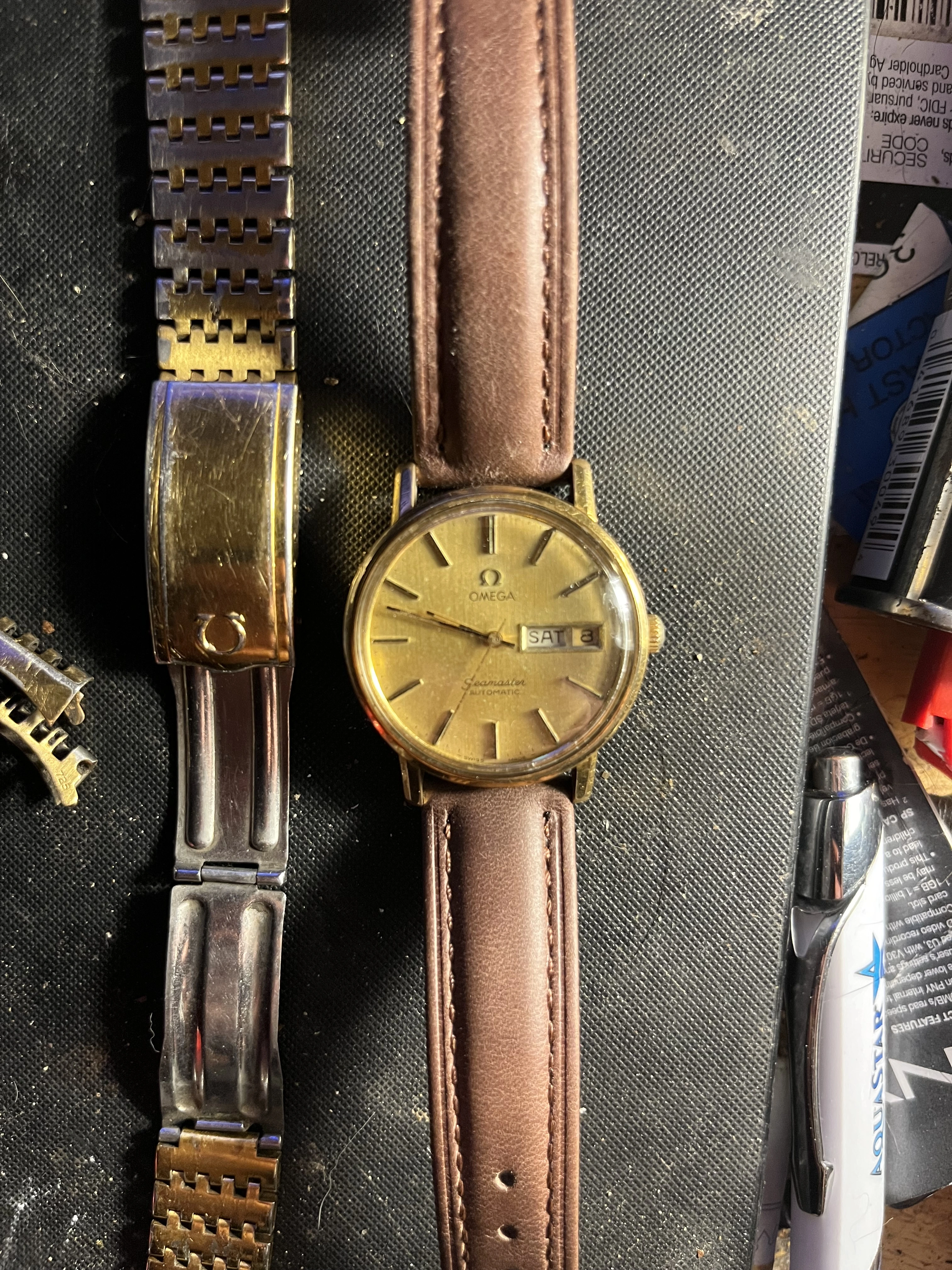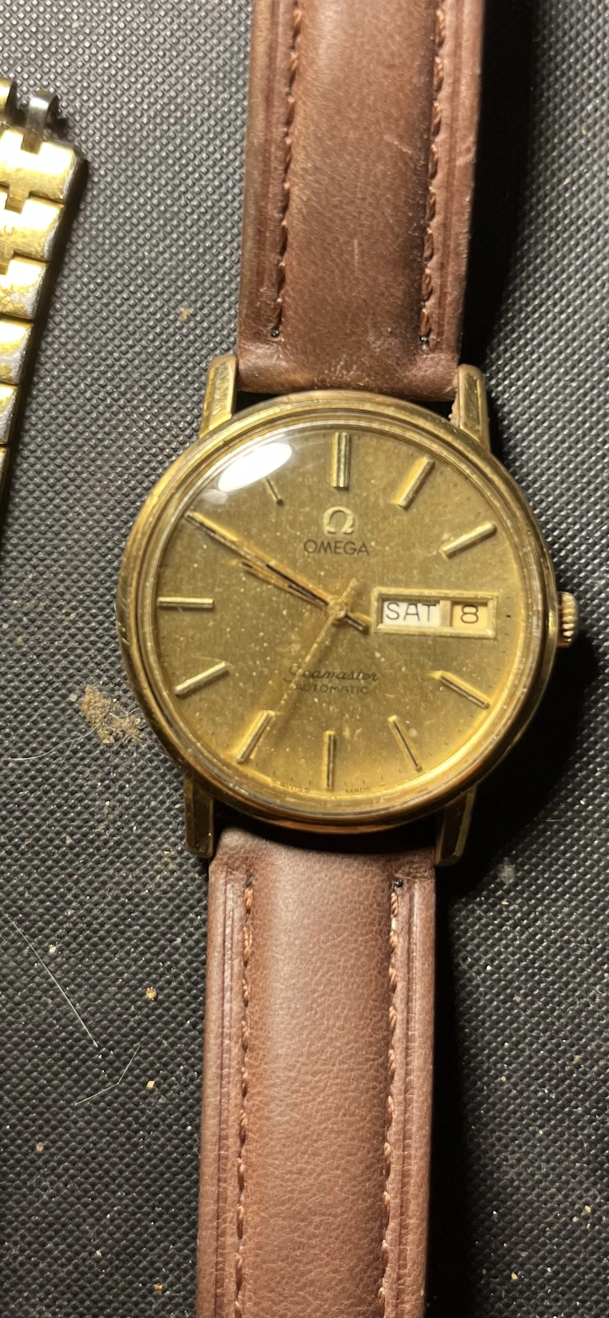 ·Hello I hope everyone is well. I would like to see what you guys think about this watch. I got it for 250 usd. The bracelet is pretty shot but it’s original omega bracelet. The case has some nicks here and there but I’ve seen worse. The dial isn’t too bad but depending on the light there’s definitely some spots. It runs good and keeps great time, honestly I can’t believe how good it is. So my questions are is it worth getting it replated. Replateit will replate the watch and case for around 200 according to their site. It’s only 5 microns which kinda sucks but it would still be a lot better than what it is. Or should I just keep it on the leather strap and wear it and just keep the omega bracelet with it for if I ever want to sell it. Do you guys think it’s worth 450 to 500 after it’s been replated or should I just keep it like it is. It does look nice on the leather strap so if I have to just wear it like that I’m fine with that too. I don’t think 250 was too bad of a deal for a working automatic seamaster of this vintage. Even if it is a cal 1020. Thanks for your thoughts and help. Sorry about the photos, I hope they are ok I did the best I could.