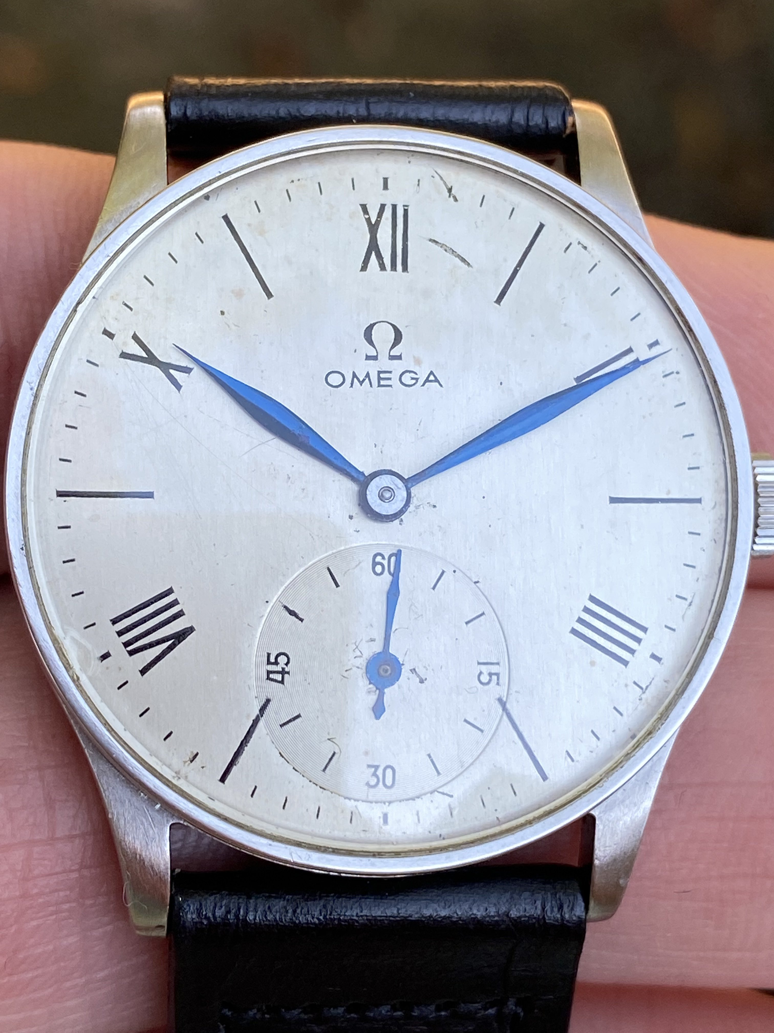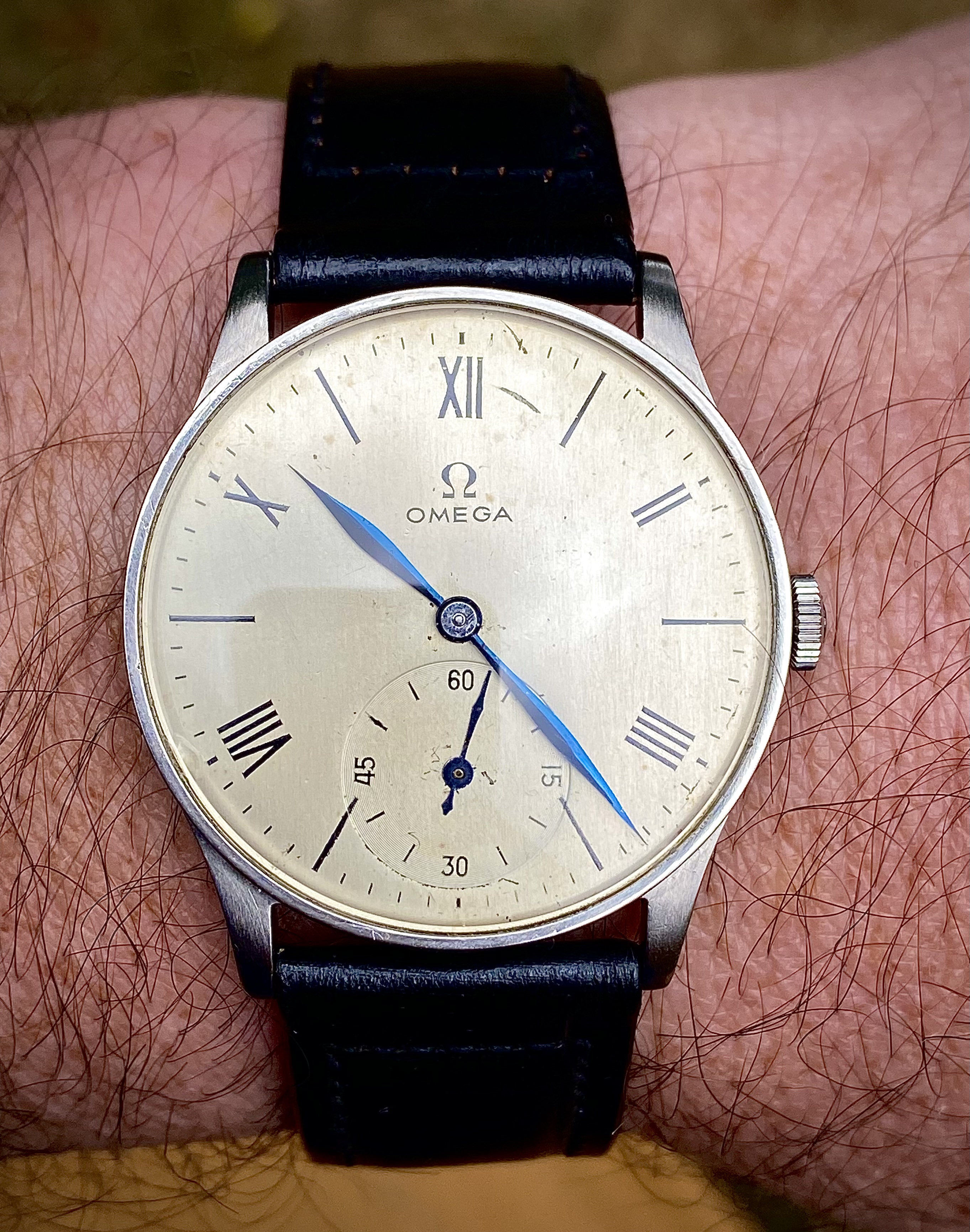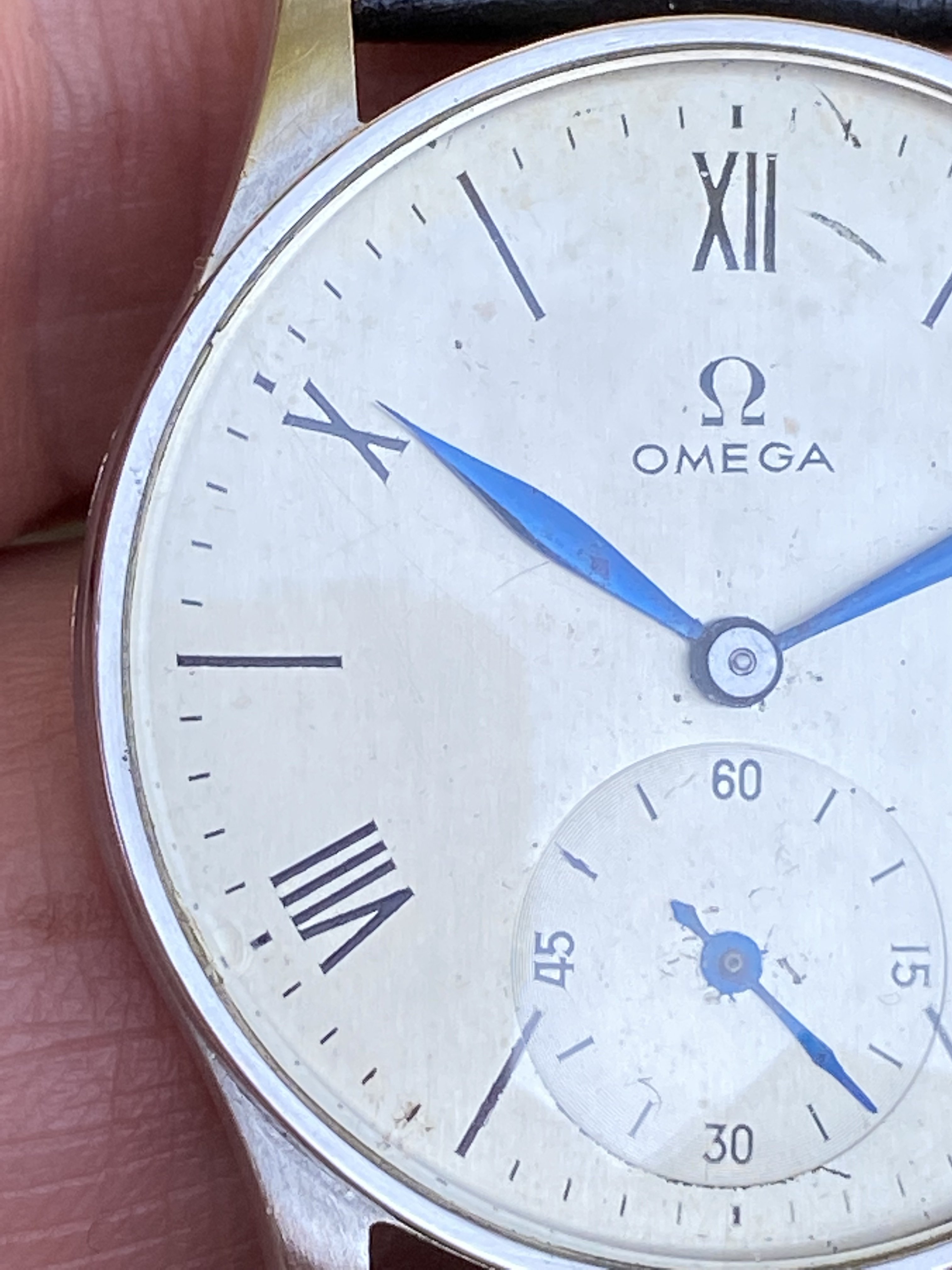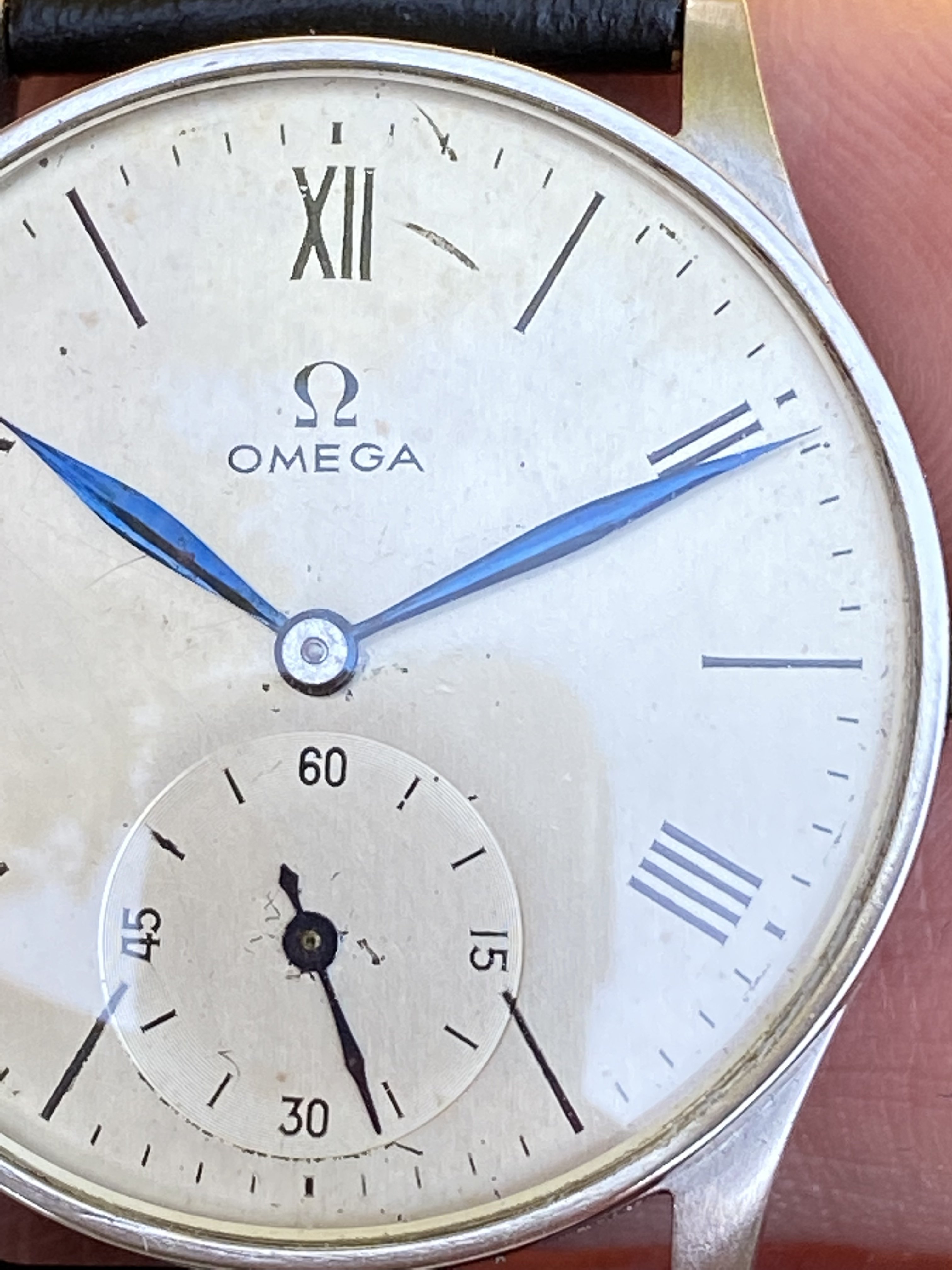 I go back and forth on selling it, but am wondering what you all think of the dial. I want to make sure I represent it accurately if I do decide to let it go. I am usually pretty good at detecting refinished dials, but I am just not familiar enough with this era of Omega. The dial has its fair share of damage done by clumsy hands. Anyway, I’d appreciate any thoughts or insights on this watch.